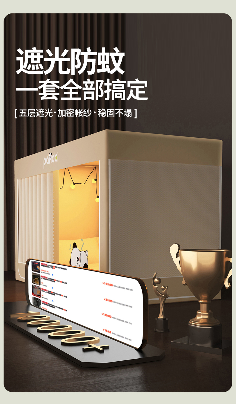 90*190*90cm(下铺单门)帐纱+升级自连支架(无帘遮光) | ¥55.00 |