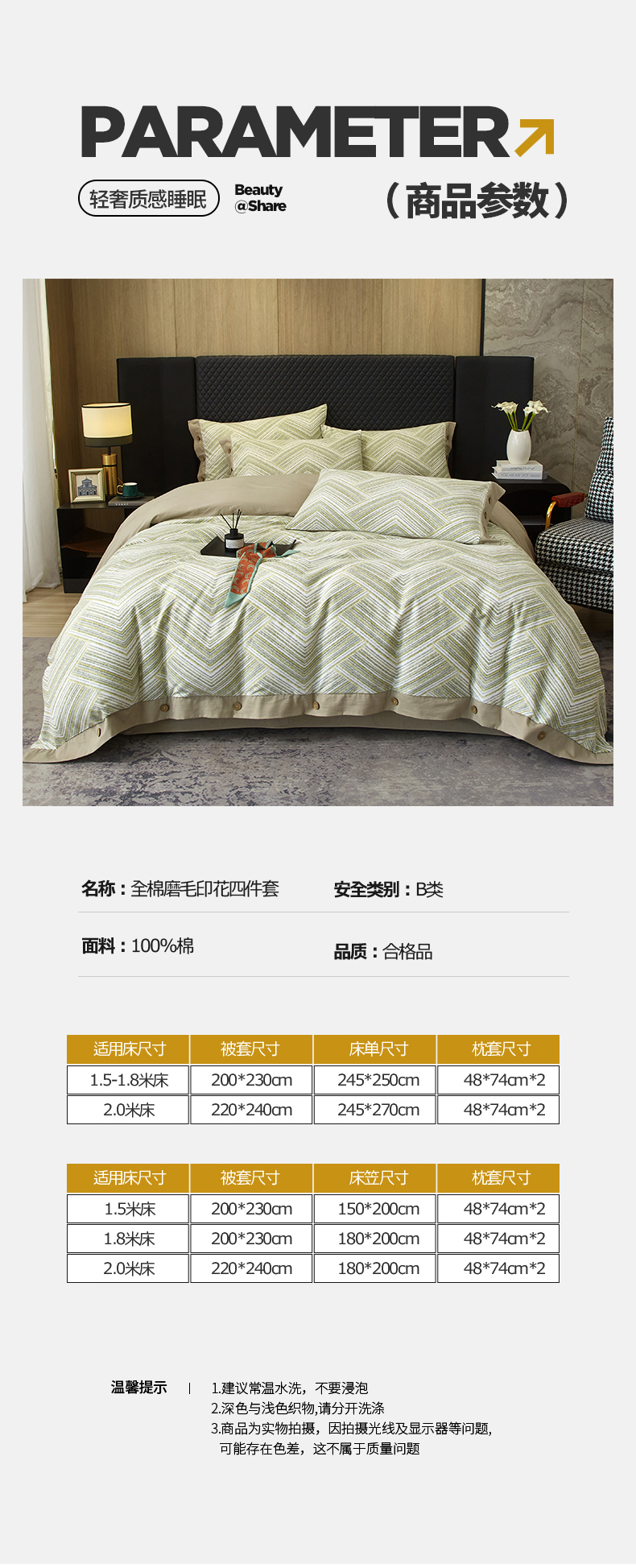 商品名称:沐白家居 2025新款全棉生态磨毛印花四件套-纽扣工艺款 艾文-绿
