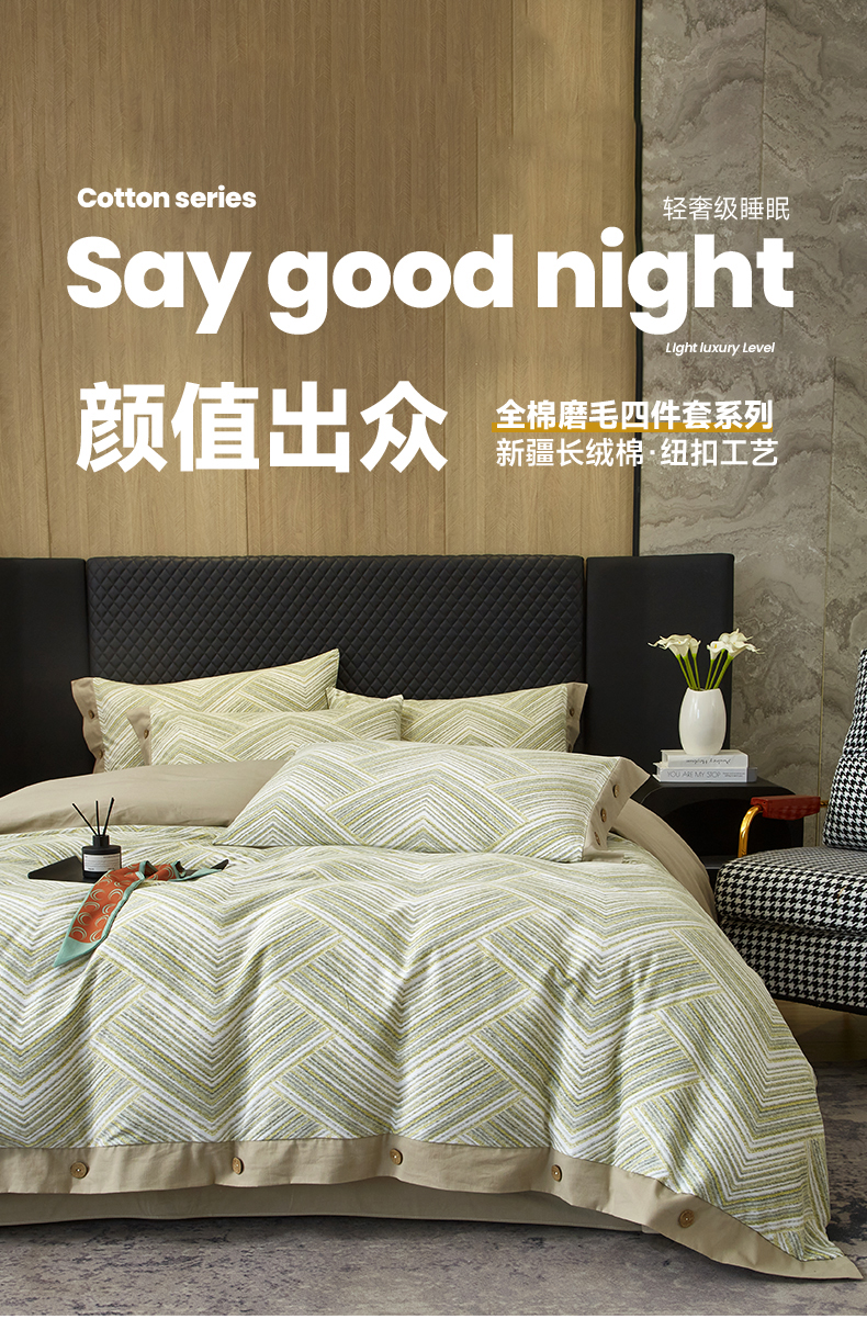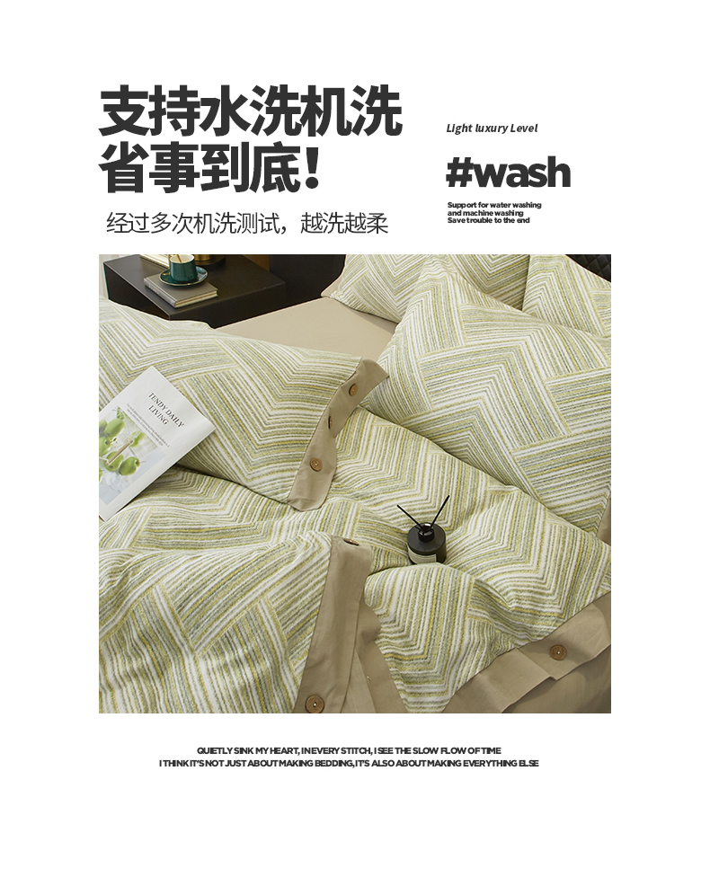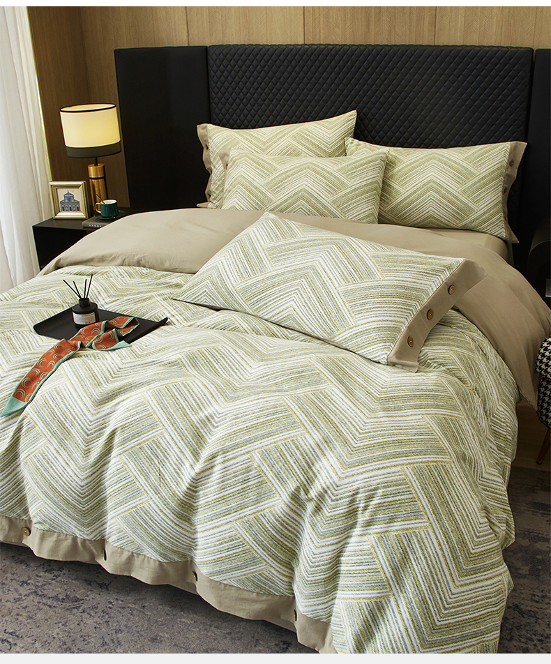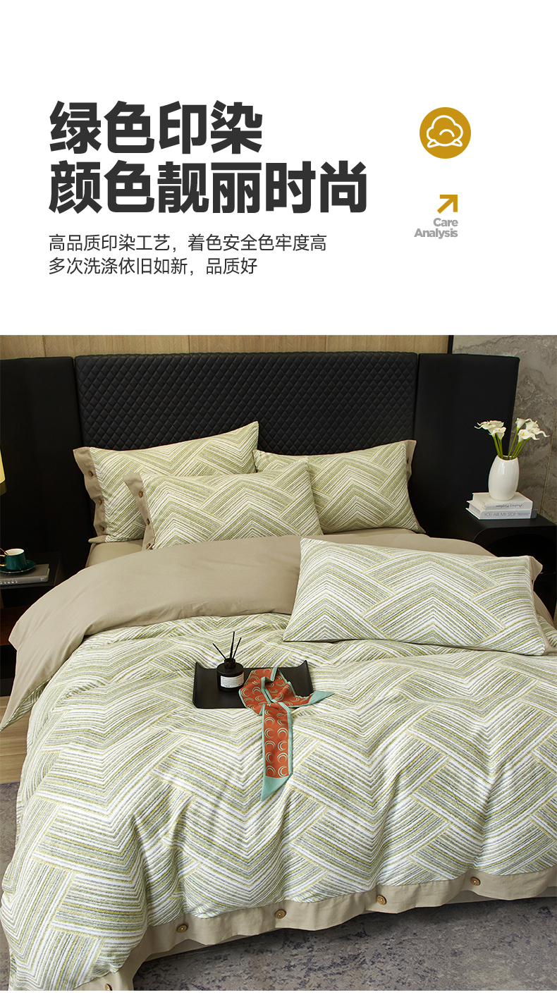 沐白家居 2025新款全棉生态磨毛印花四件套-纽扣工艺款 艾文-绿