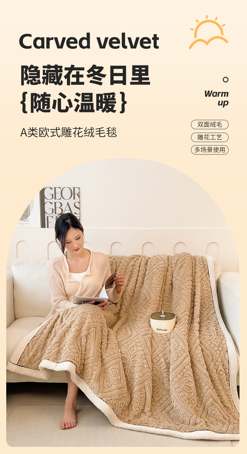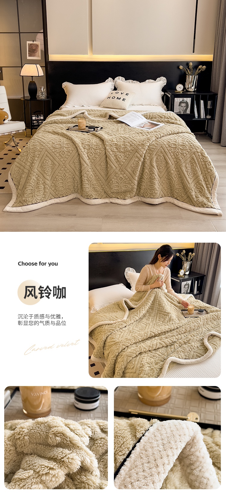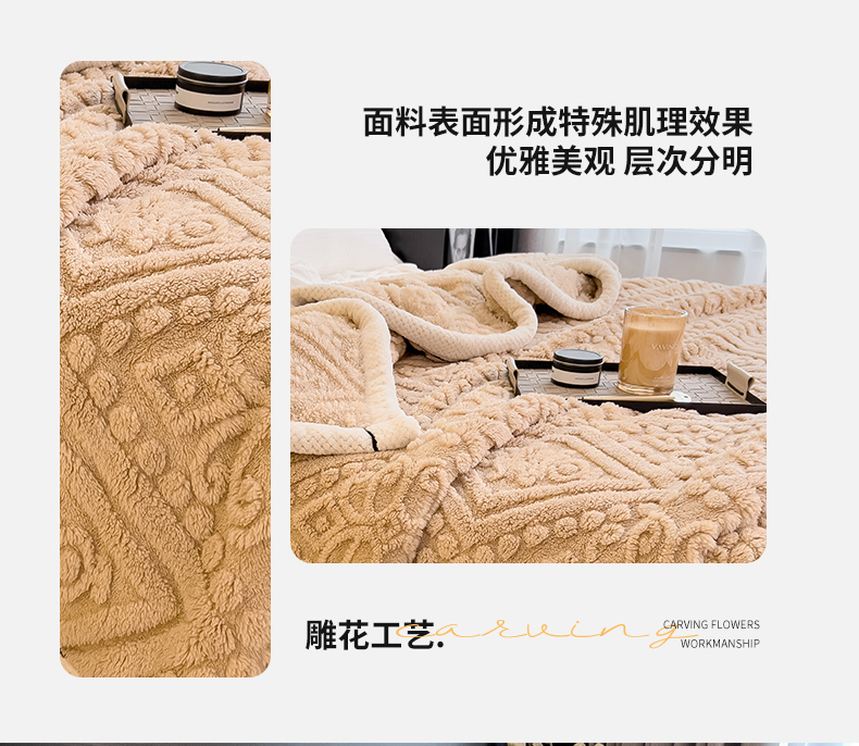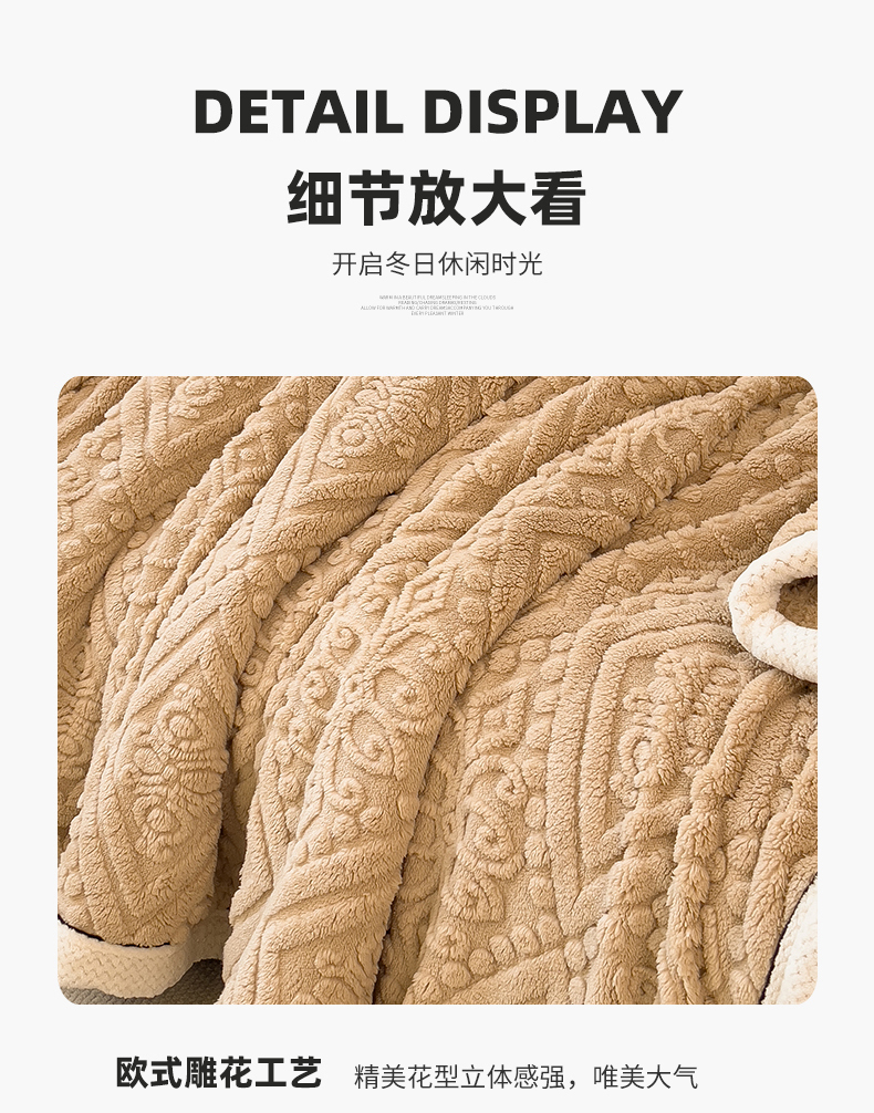 商品名称:世纪绒品 2025新款A类欧式350克雕花绒毛毯毯子 风铃咖