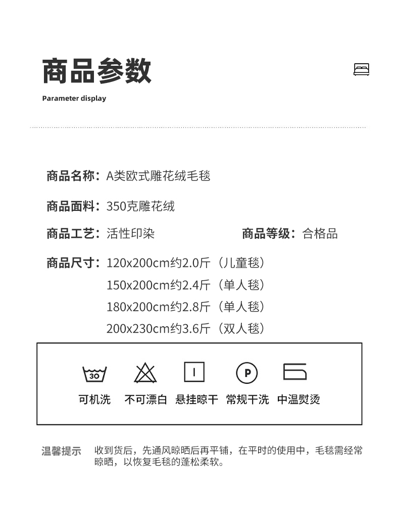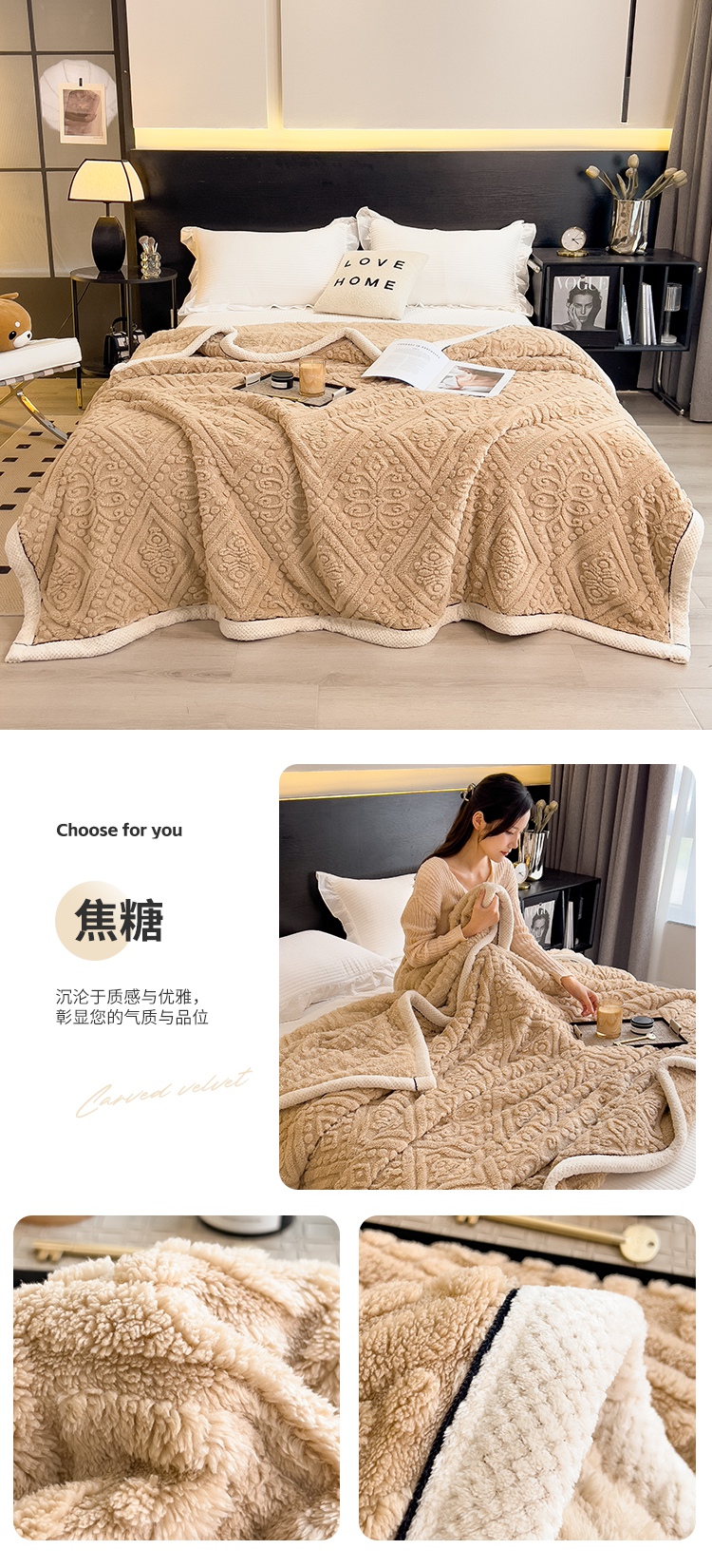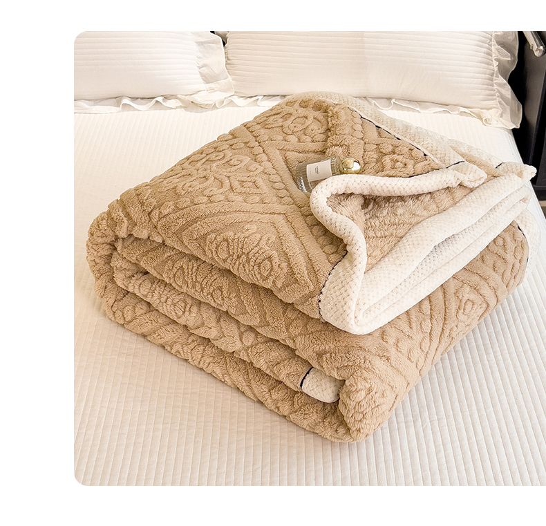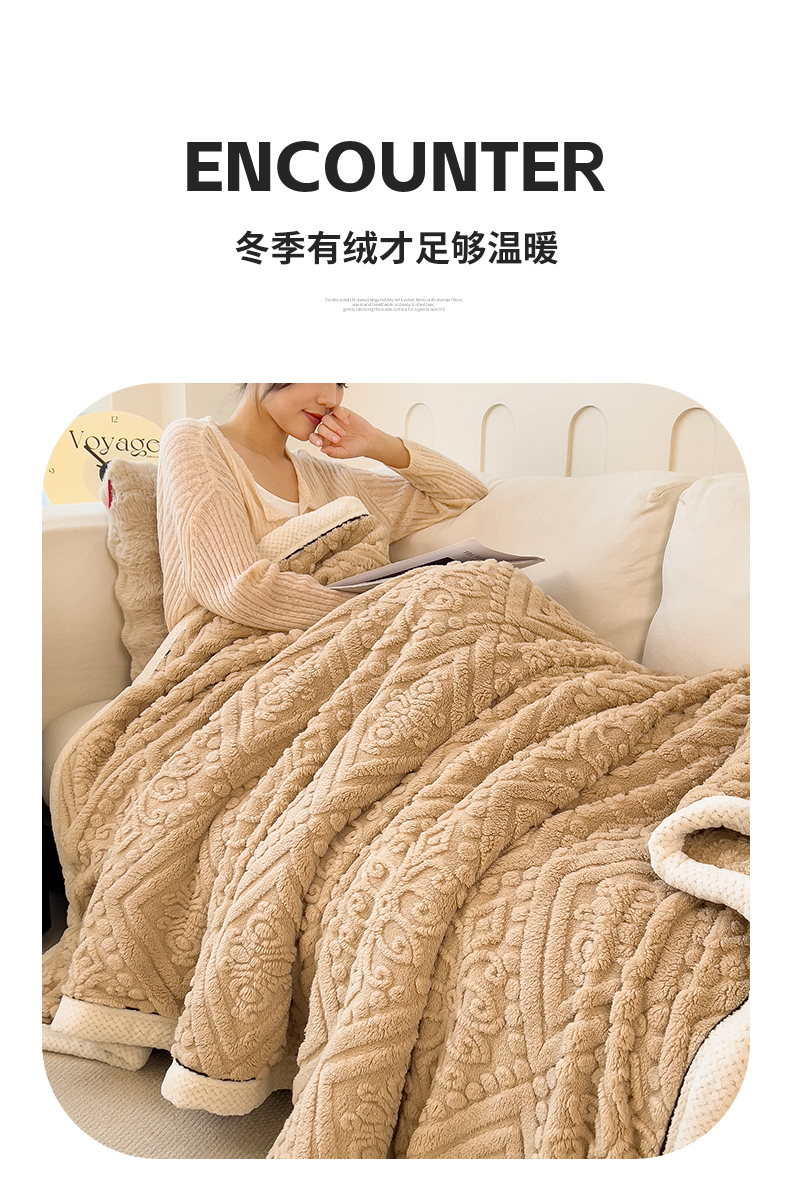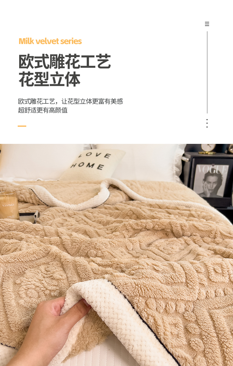 商品名称:世纪绒品 2025新款A类欧式350克雕花绒毛毯毯子 风铃咖