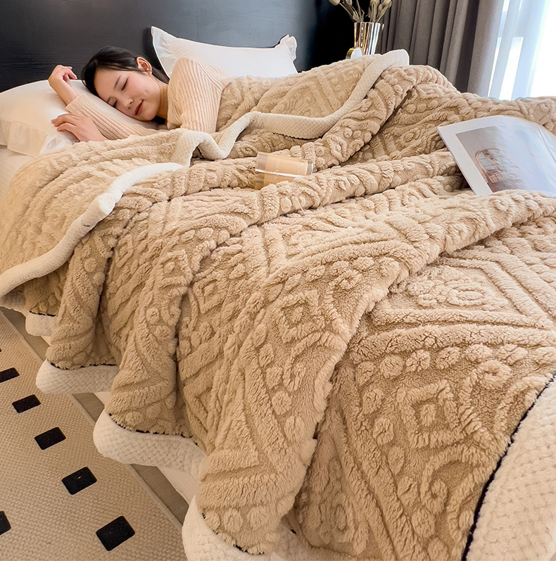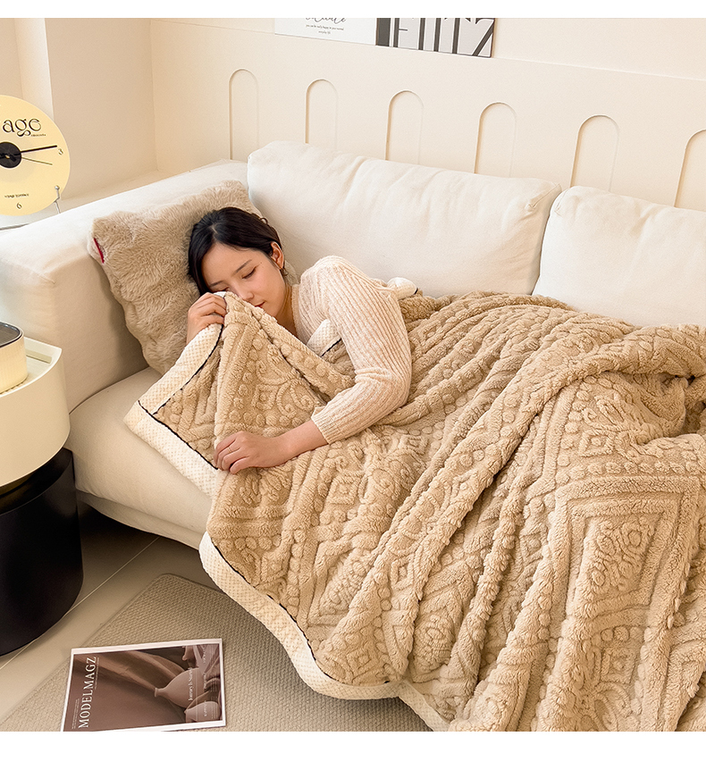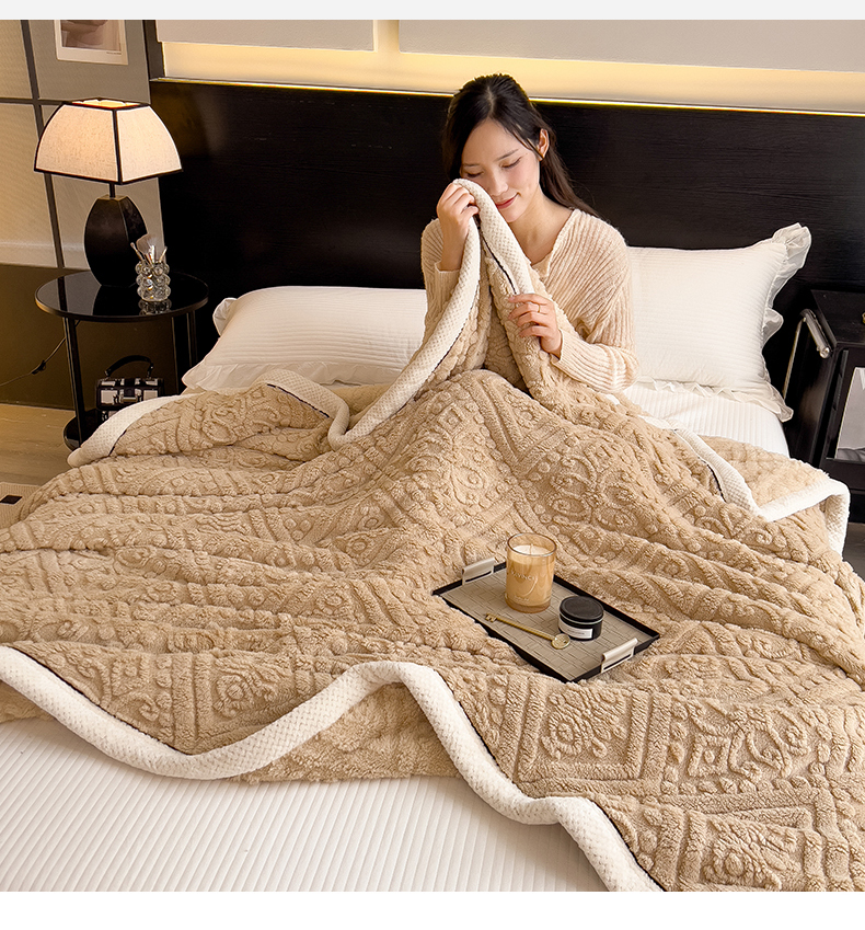 世纪绒品 2025新款A类欧式350克雕花绒毛毯毯子 风铃咖