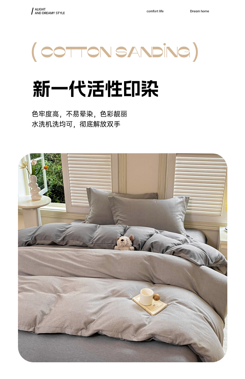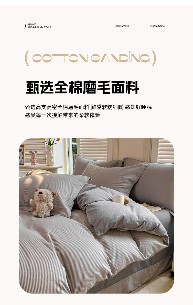 当前位置: 91家纺网 > 商品网购 > 床品套件 > 四件套 > 全棉普通四件套 > 优品阁 2024新款亲肤舒适全棉磨毛四件套学生三件套系列 邦尼-灰