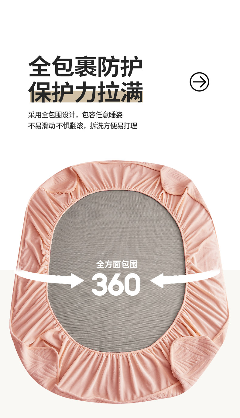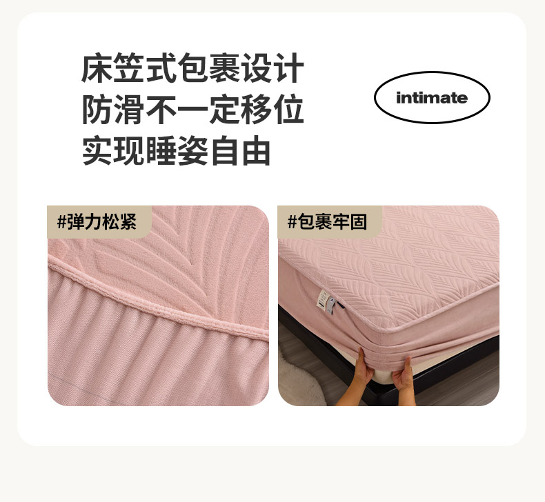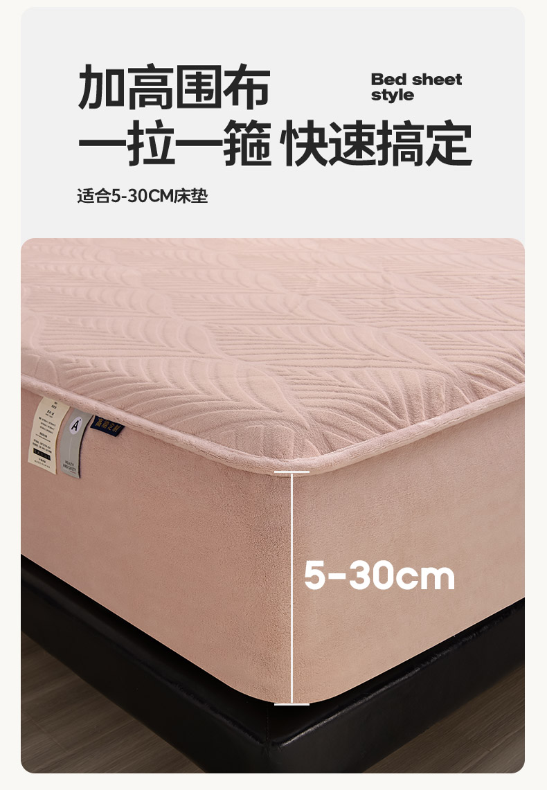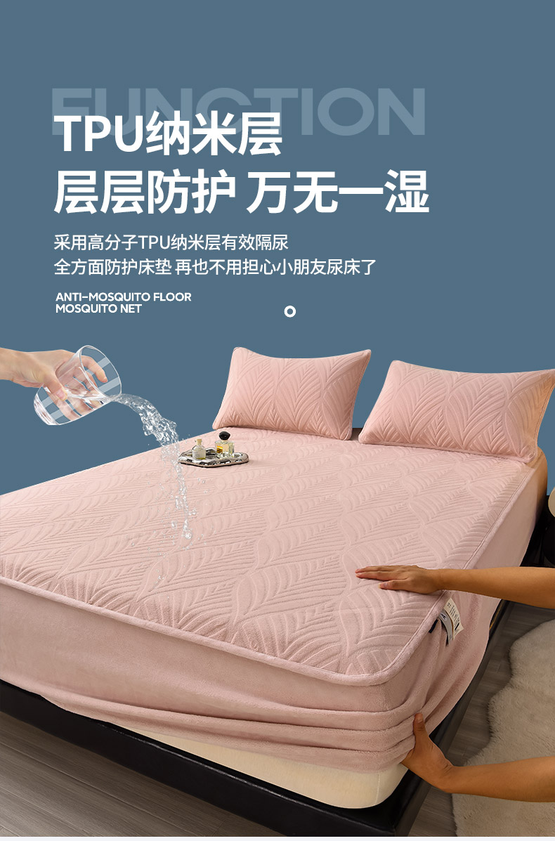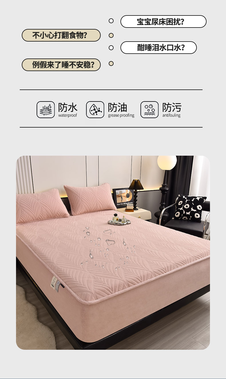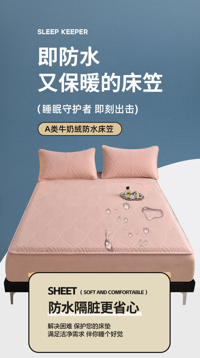 好眠好梦 2024新款相思叶牛奶绒防水床笠 粉豆沙