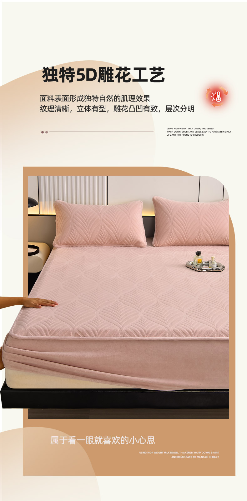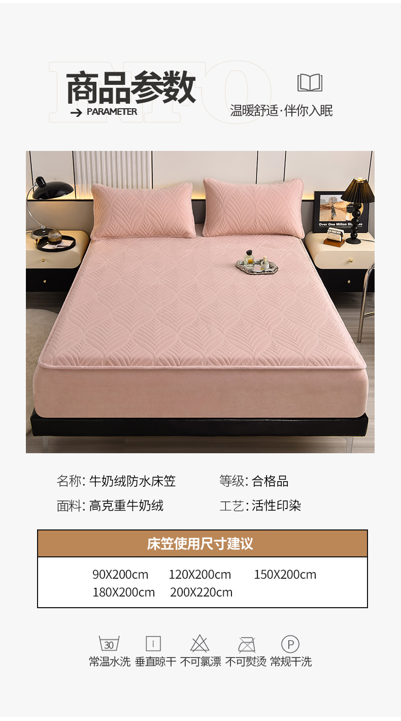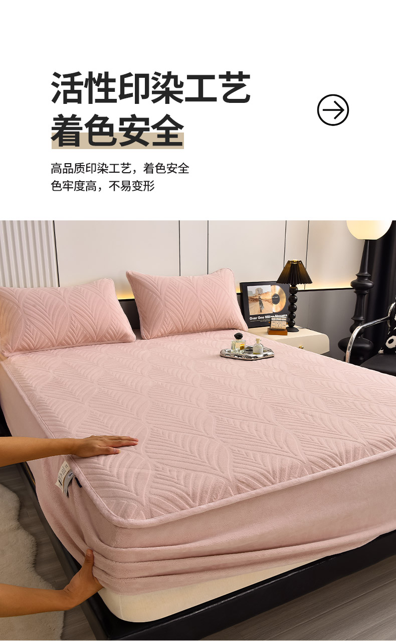 • 91家纺网 家纺一手货源 找家纺 好眠好梦 2024新款相思叶牛奶绒防水床笠 粉豆沙