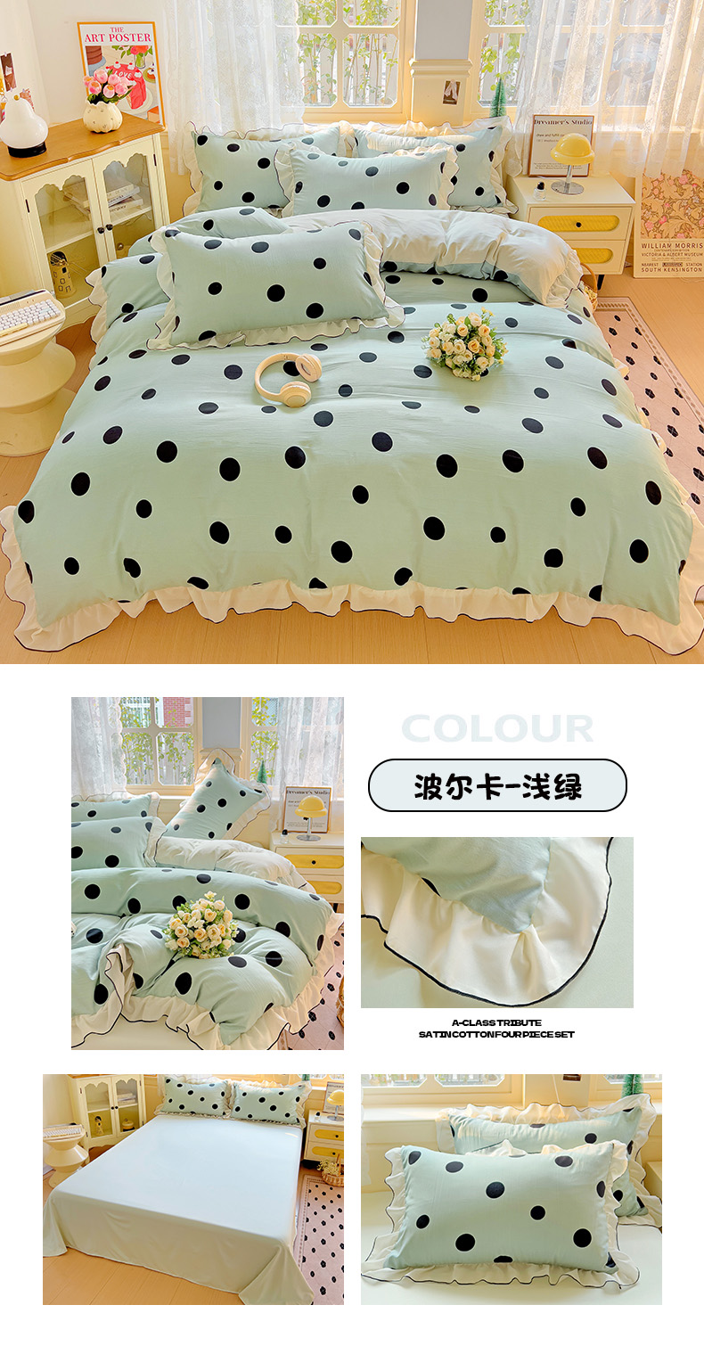 商品名称:2025新款高克重立体臻棉法式韩版毛巾绣四件套-波尔卡 波尔卡-浅绿