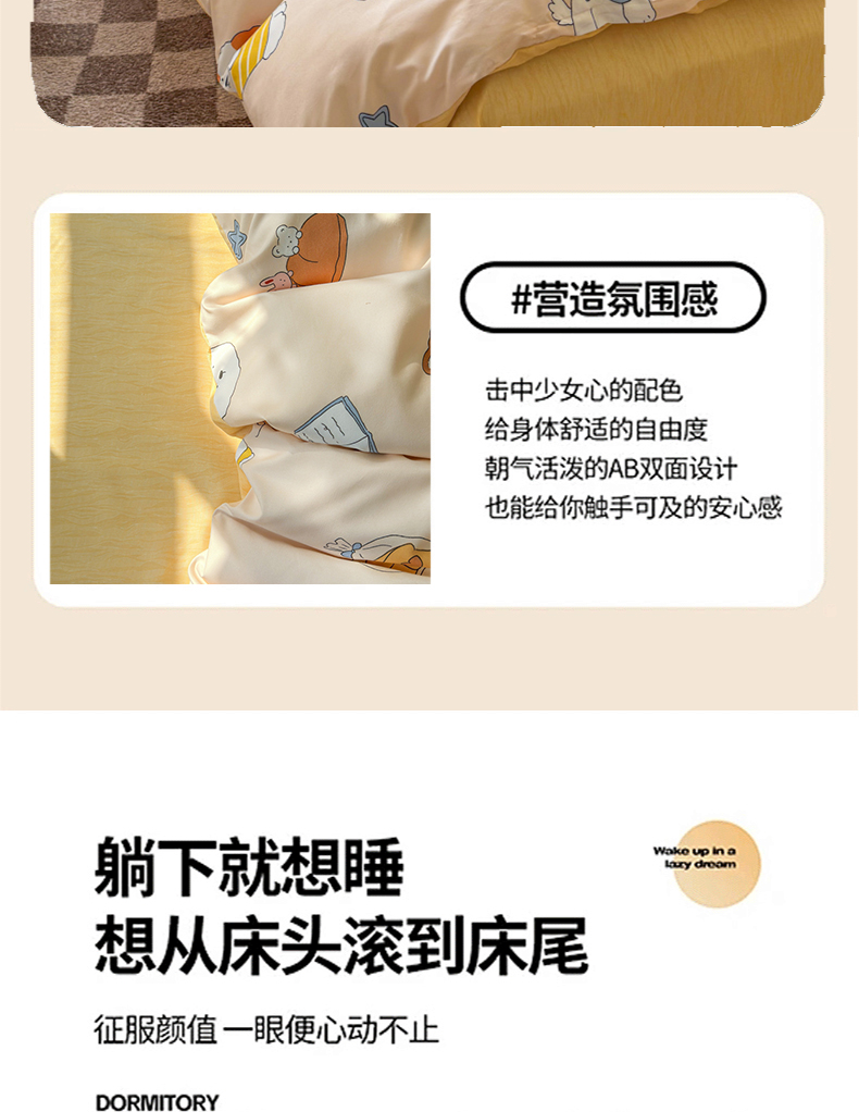 当前位置: 91家纺网 > 商品网购 > 床品套件 > 四件套 > 佑佳家纺 2025年新款铂金棉芦荟棉学生三件套四件套 单被套 单枕套「支持定做各种尺寸」 波波家族