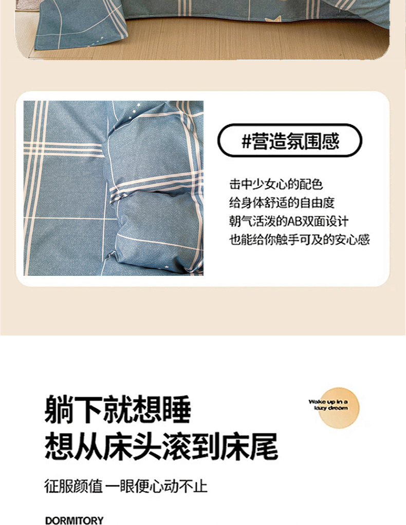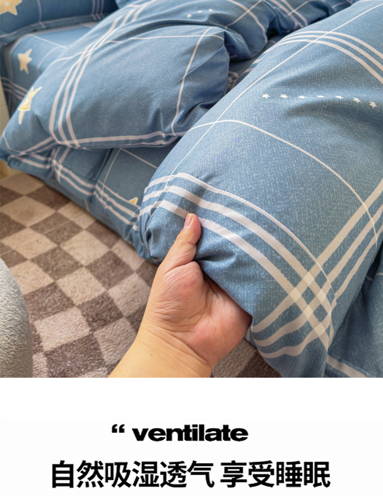 当前位置: 91家纺网 > 商品网购 > 床品套件 > 四件套 > 佑佳家纺 2025年新款铂金棉芦荟棉学生三件套四件套 单被套 单枕套「支持定做各种尺寸」 万星如一