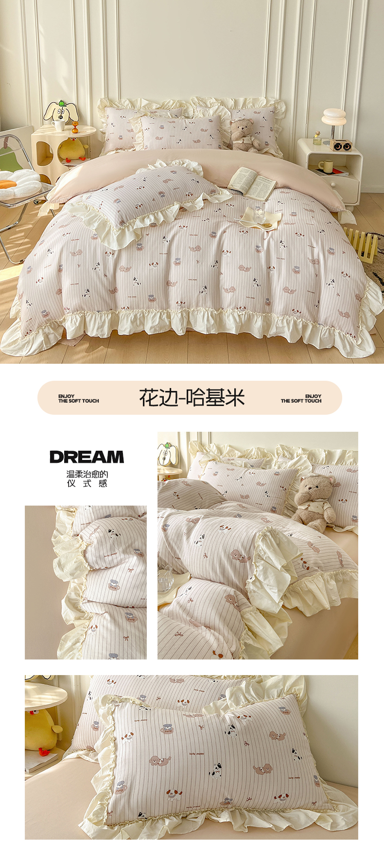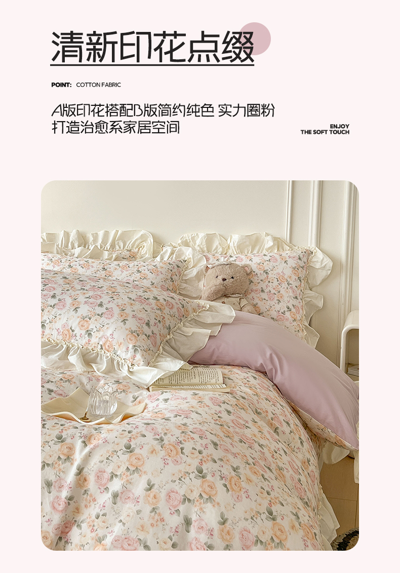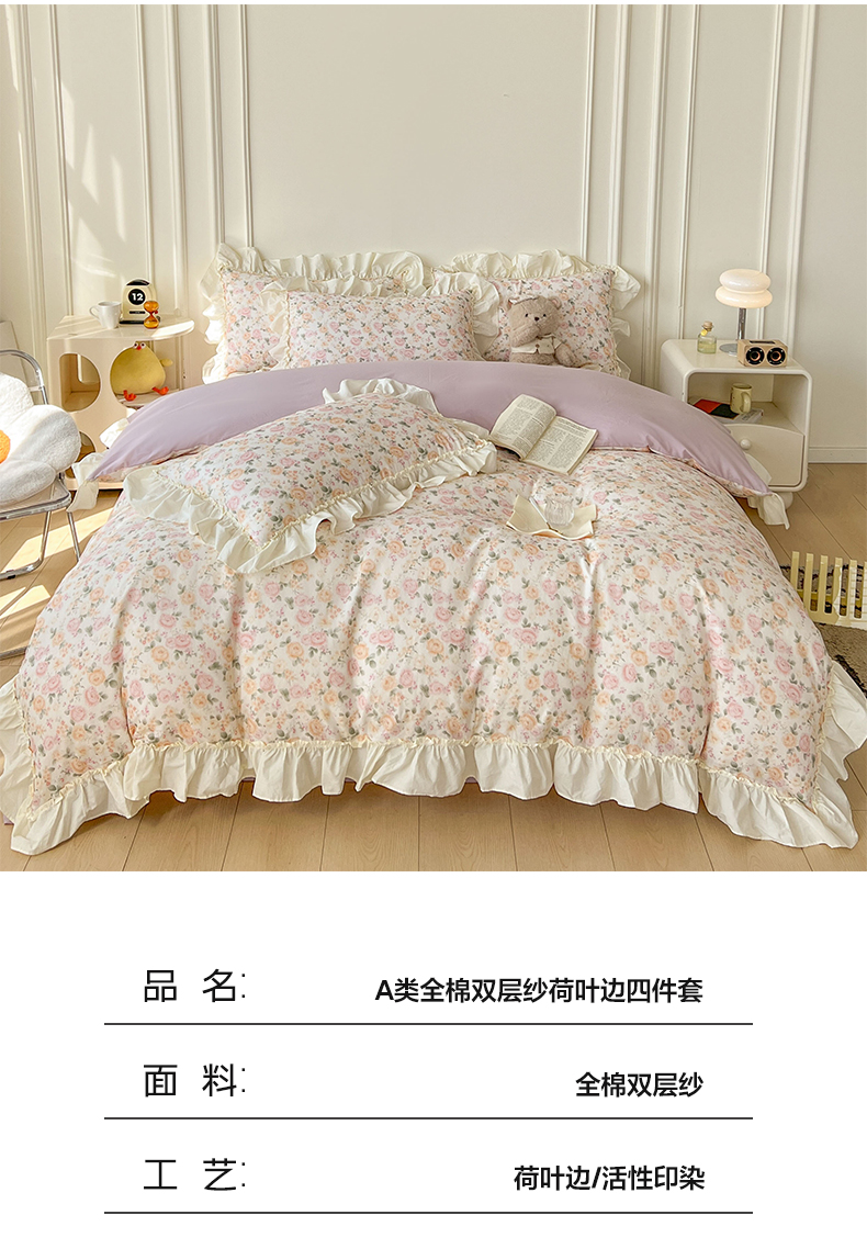 当前位置: 91家纺网 > 商品网购 > 床品套件 > 四件套 > 双层纱四件套 > 涵宸家纺 2025新款A类全棉双层纱荷叶花边四件套 花边-白薇