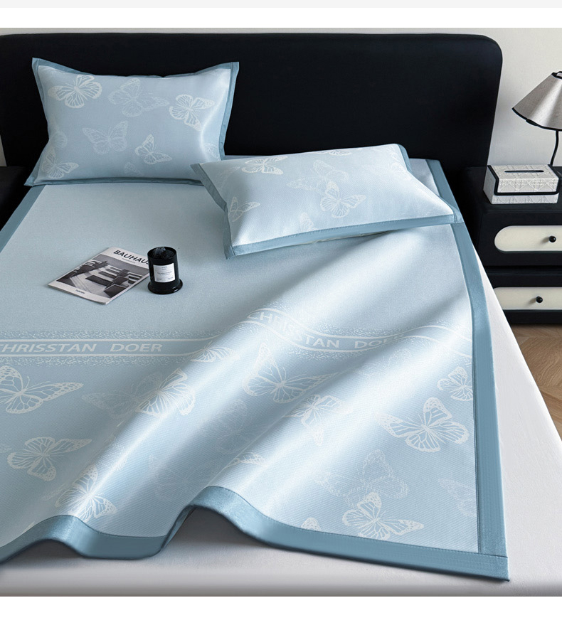 商品名称:九花鹿 2025新款A类PE凉感提花冰丝凉席软凉席可水洗可机洗 速写(天空蓝)
