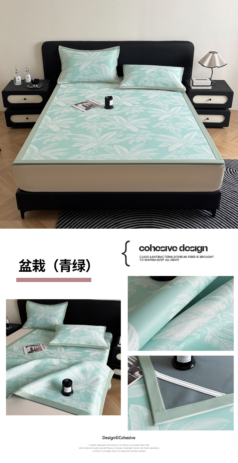 九花鹿2024新款A类大版碳光冰丝凉席床笠款三件套四件套,大版床笠款-熊宝贝