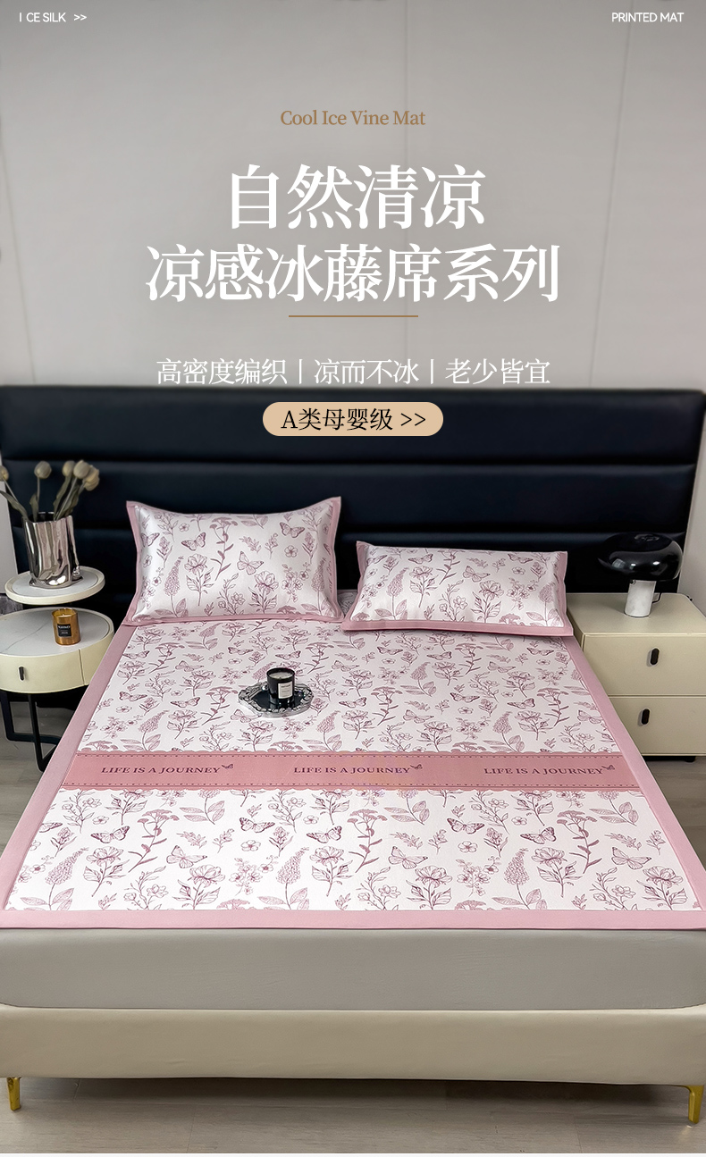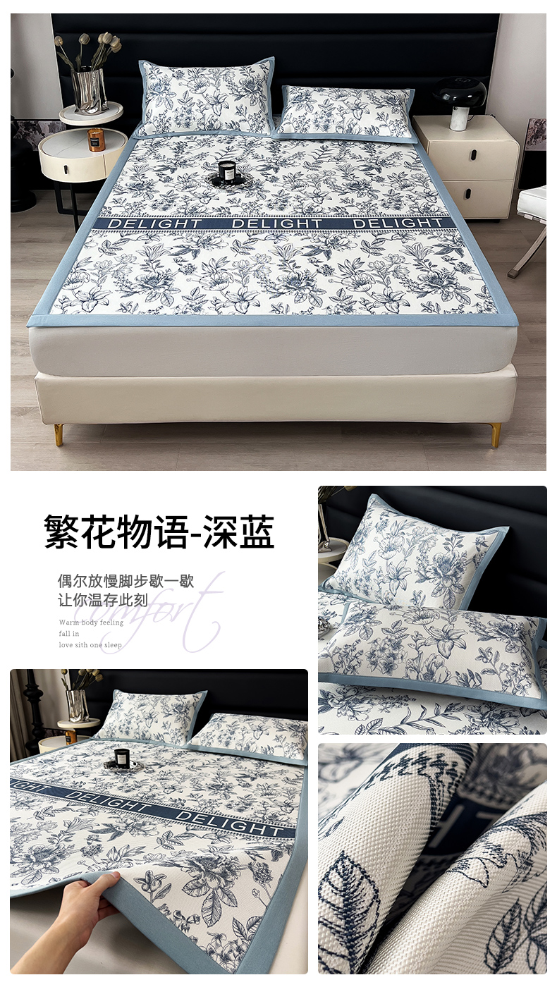 当前位置: 91家纺网 > 商品网购 > 床上用品 > 凉席 > 藤席 > 全季家居 2025新款A类花卉系列数码印花冰藤席凉席席子 繁花物语-天蓝 床席