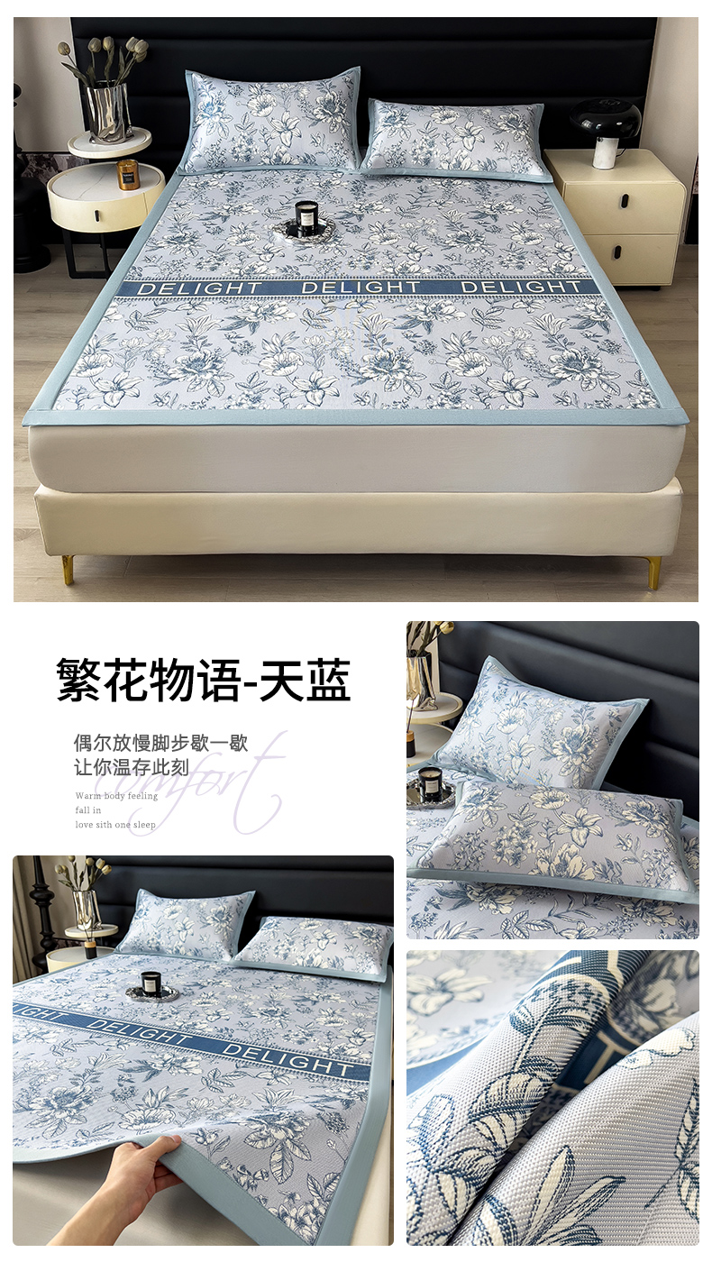 当前位置: 91家纺网 > 商品网购 > 床上用品 > 凉席 > 藤席 > 全季家居 2025新款A类花卉系列数码印花冰藤席凉席席子 繁花物语-深蓝 床笠