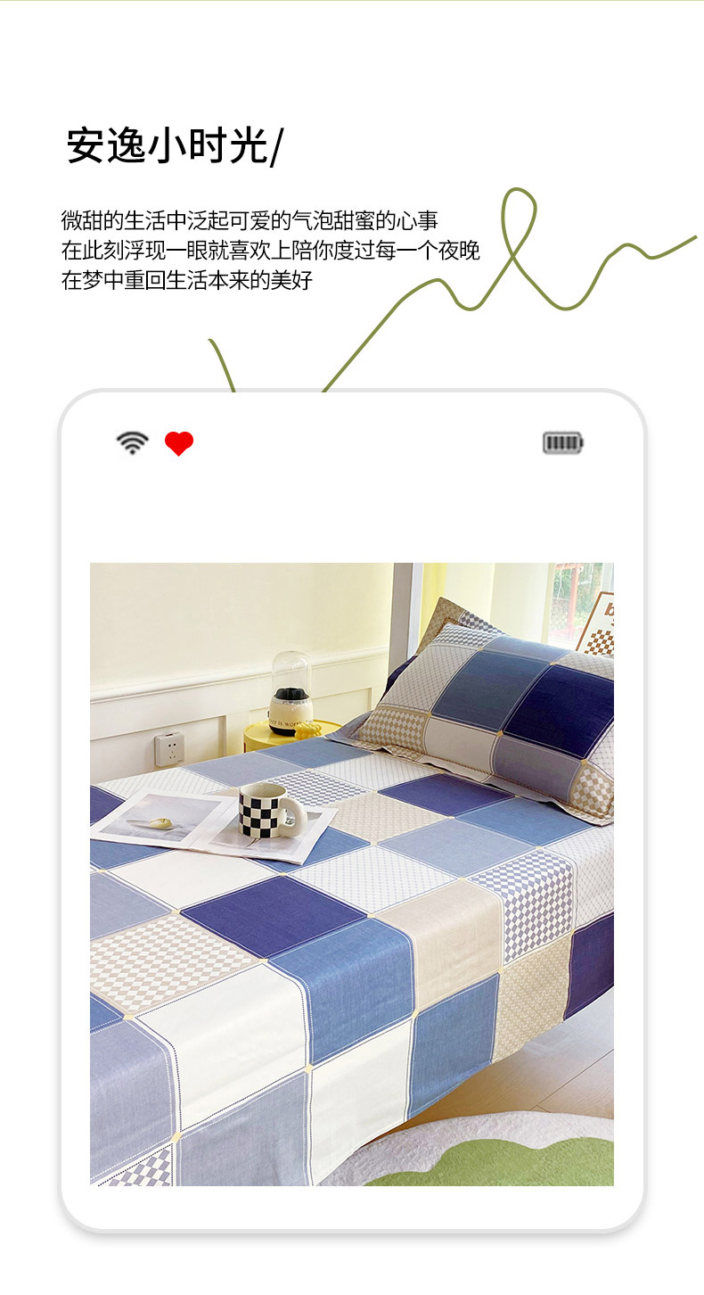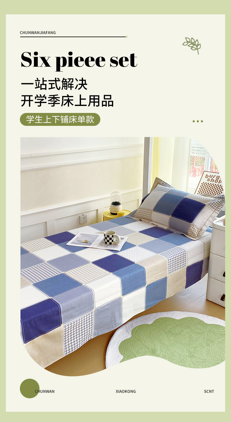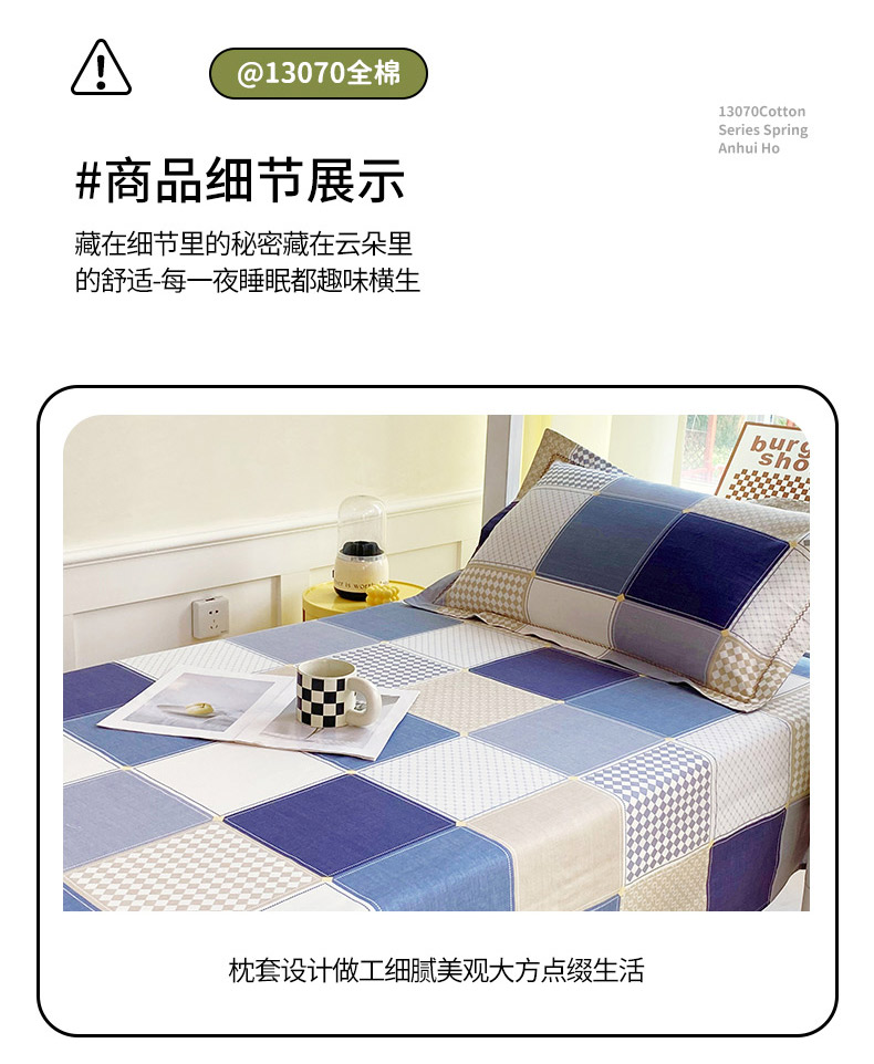 商品名称:春皖家纺 2025新款学生季全棉纯棉13070印花单床单 床单单件 纳吉蓝格