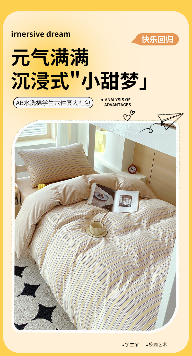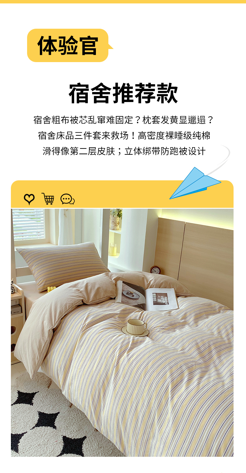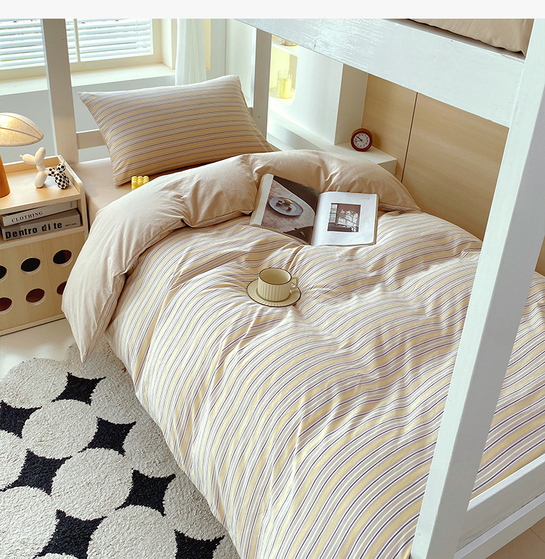 当前位置: 91家纺网 > 商品网购 > 床品套件 > 四件套 > 春皖家纺 2025新款AB棉全棉亲肤水洗棉学生三件套四件套 素雅-杏黄纹