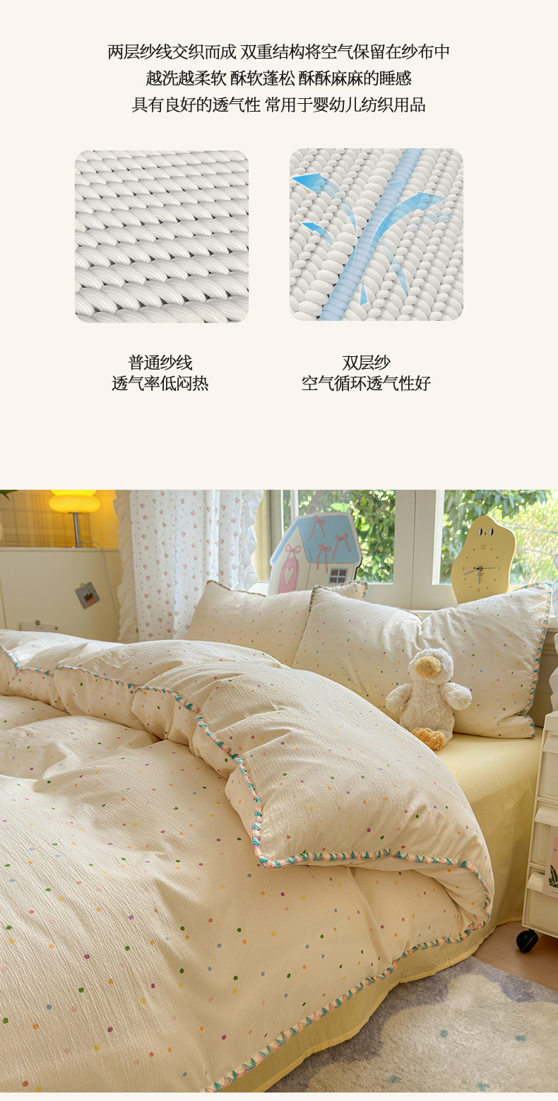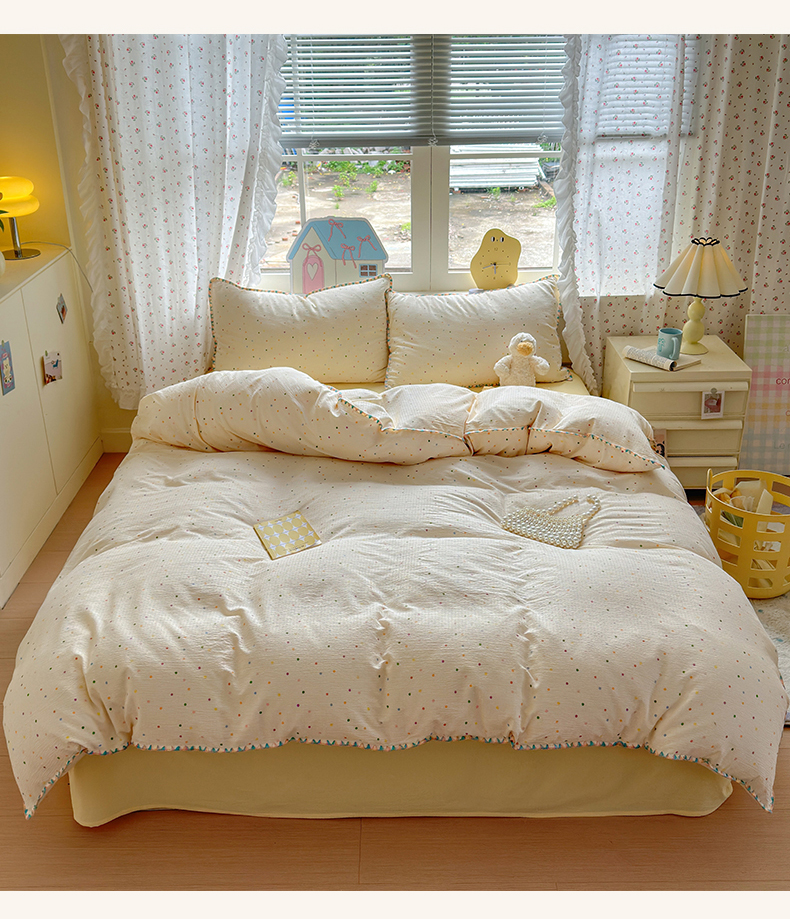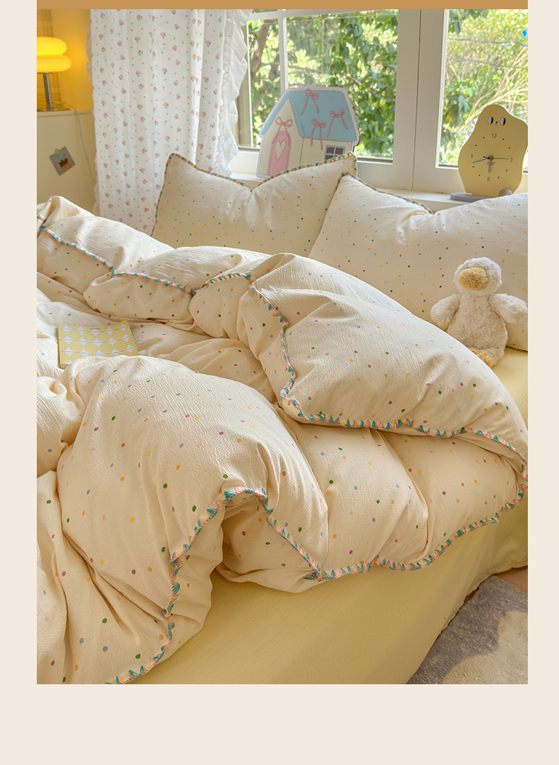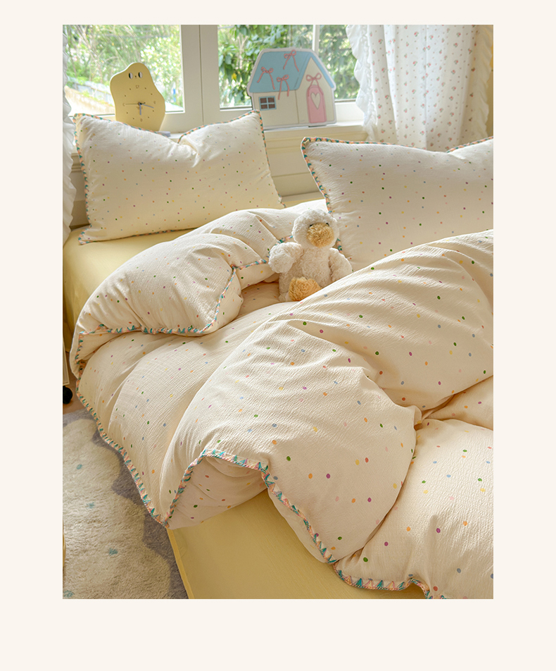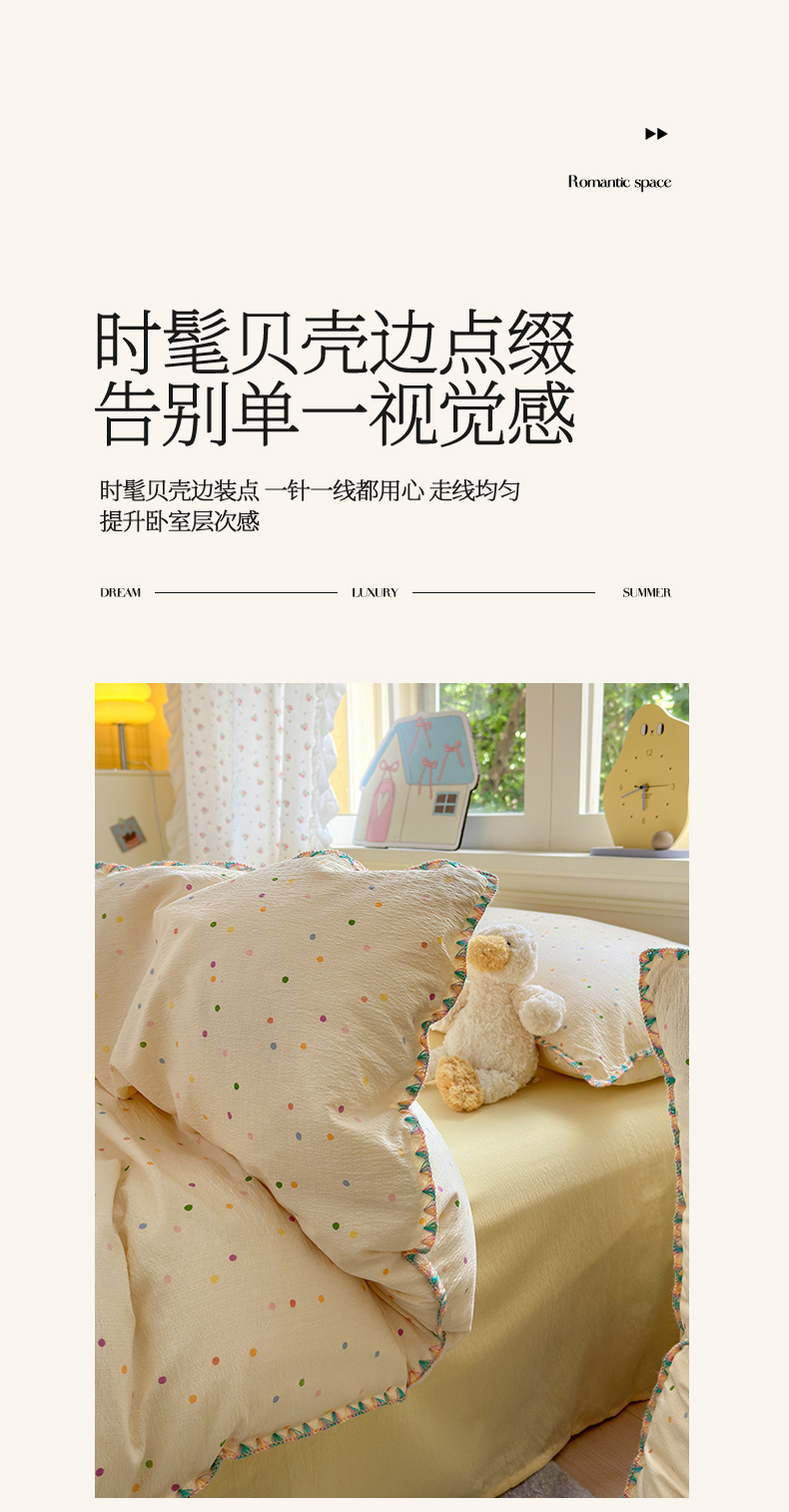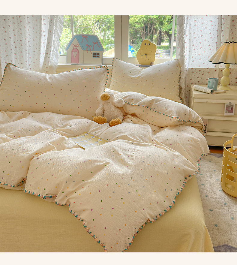 当前位置: 91家纺网 > 商品网购 > 床品套件 > 四件套 > 双层纱四件套 > 喜颜 2025新款云感提花双层纱爆款贝壳边四件套 贝壳边-波点炫彩
