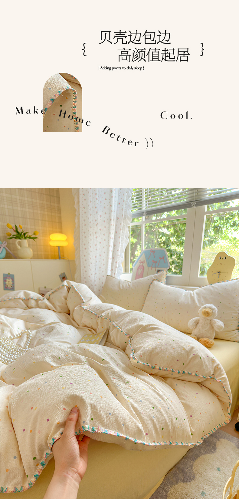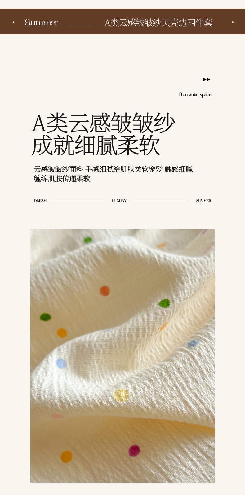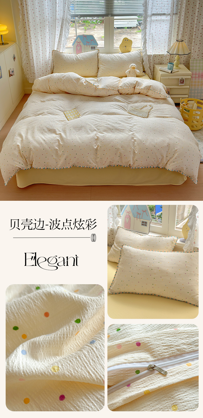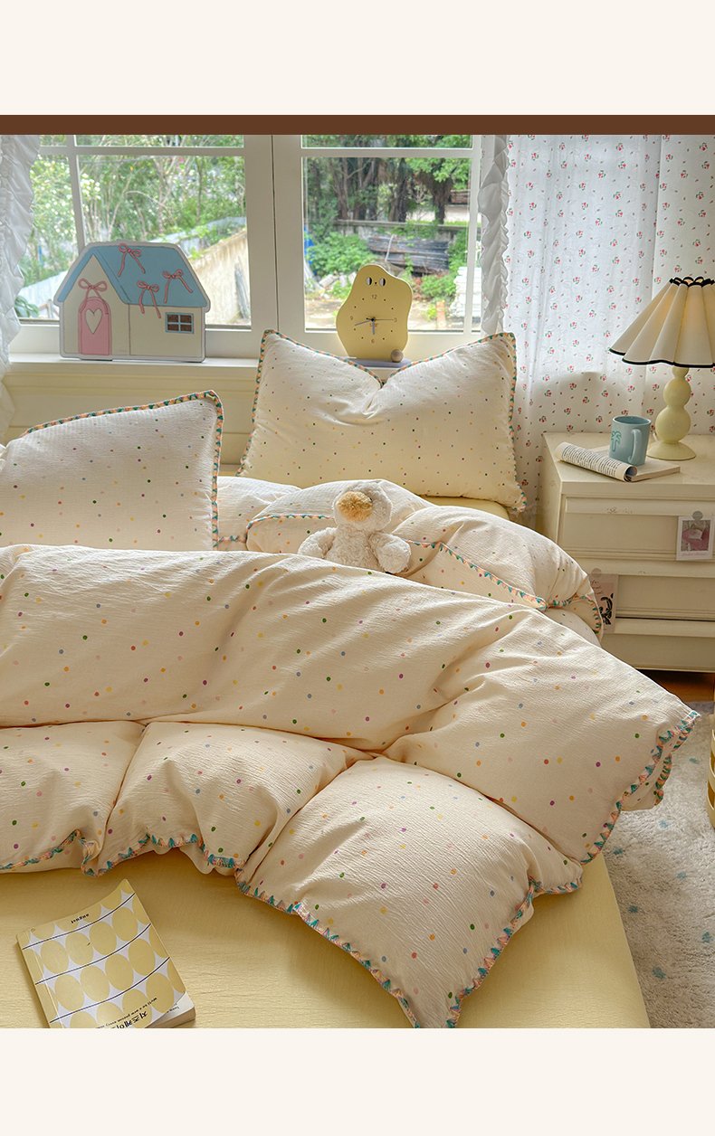 当前位置: 91家纺网 > 商品网购 > 床品套件 > 四件套 > 双层纱四件套 > 喜颜 2025新款云感提花双层纱爆款贝壳边四件套 贝壳边-波点炫彩