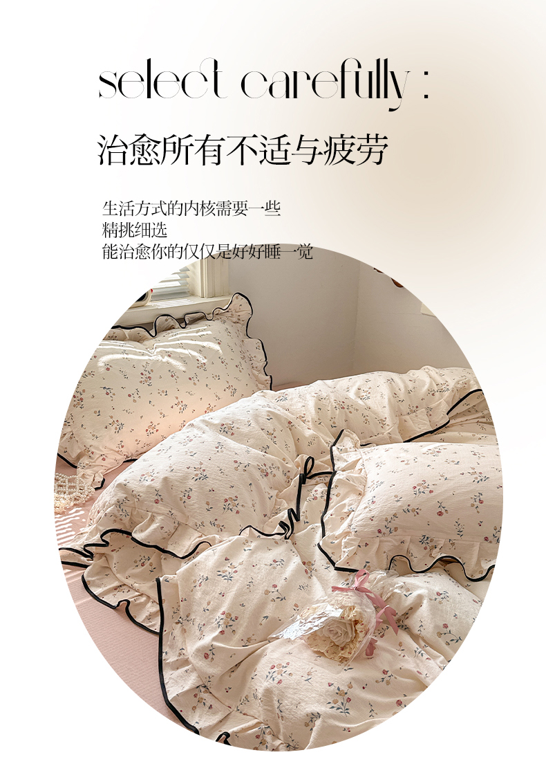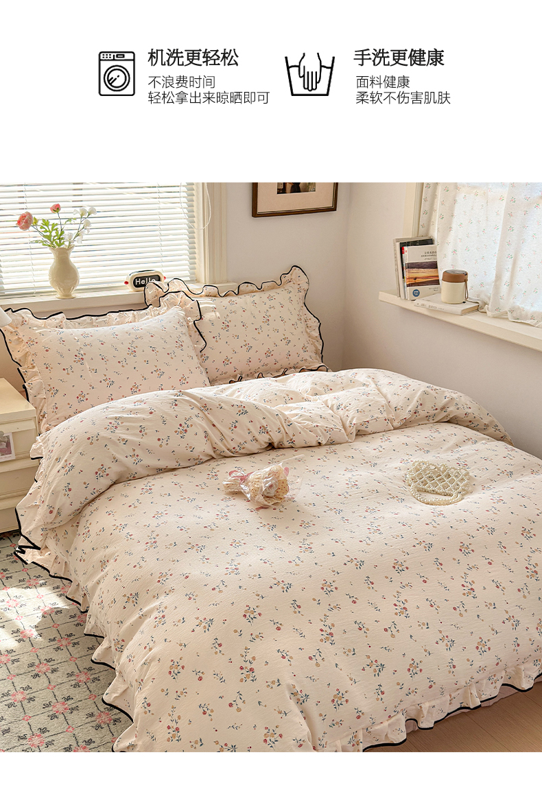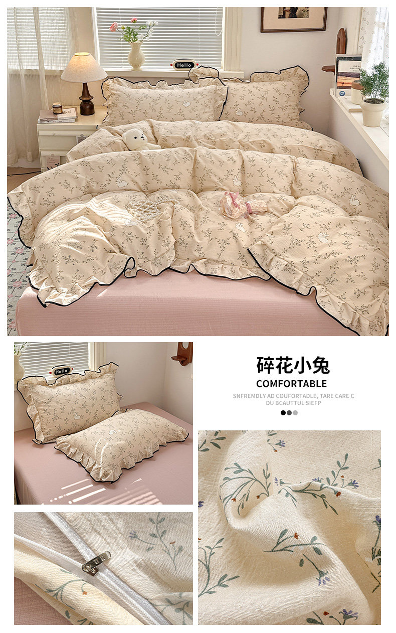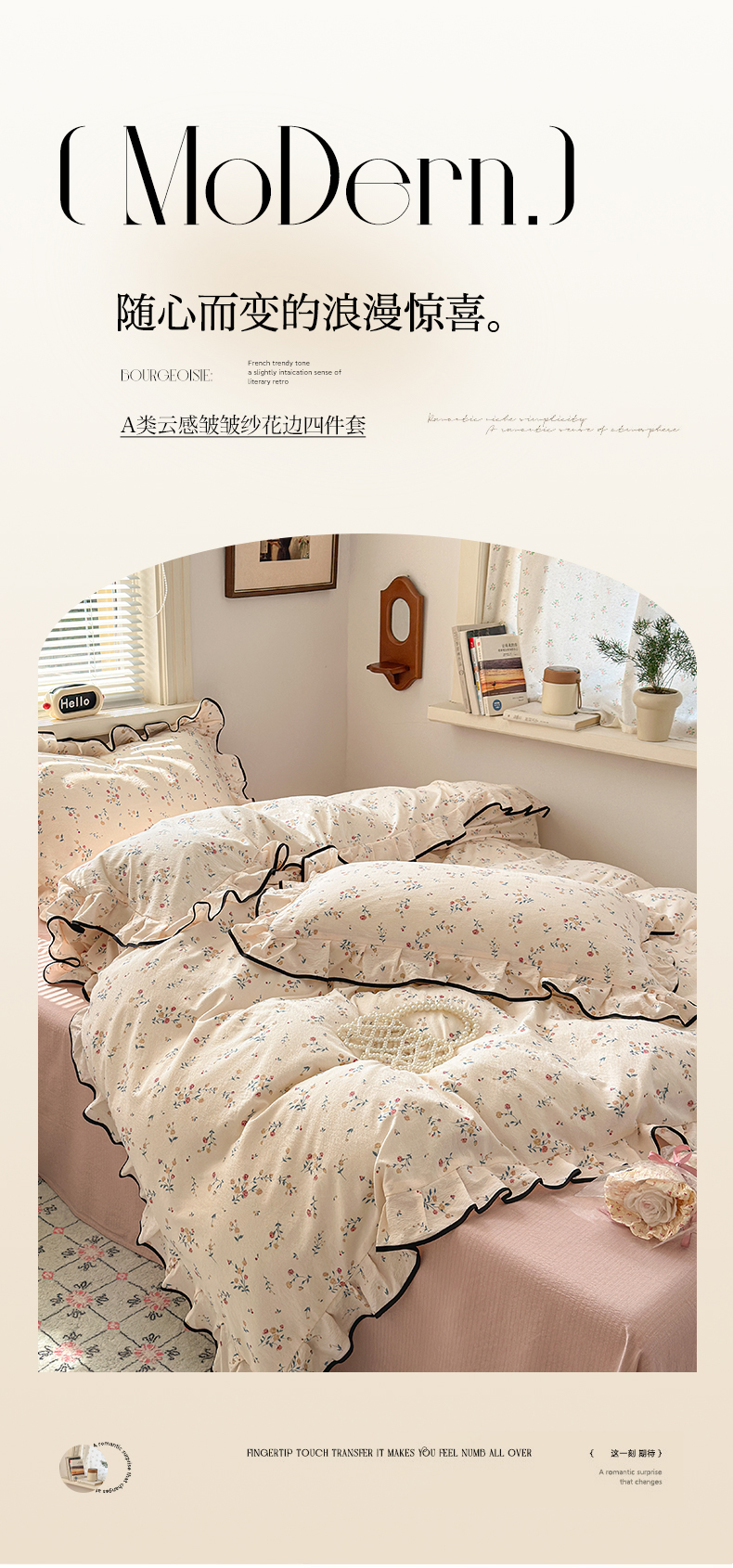 当前位置: 91家纺网 > 商品网购 > 床品套件 > 四件套 > 双层纱四件套 > 喜颜 2025新款爆款云感提花双层纱木棉花边四件套 浅夏