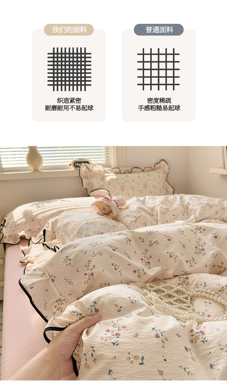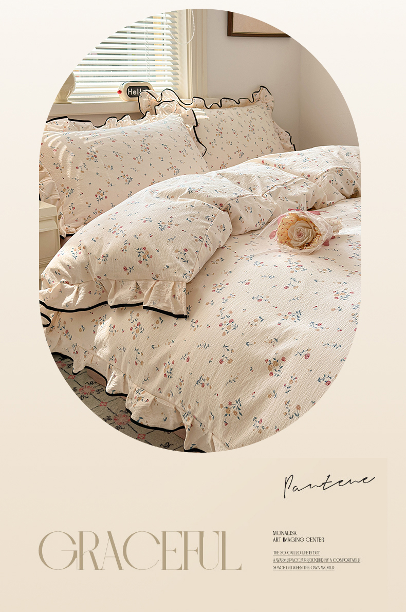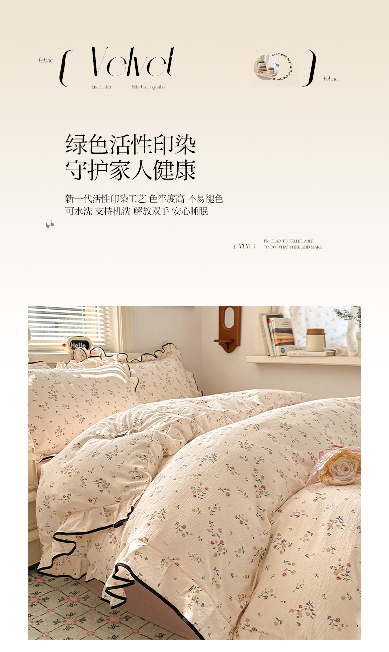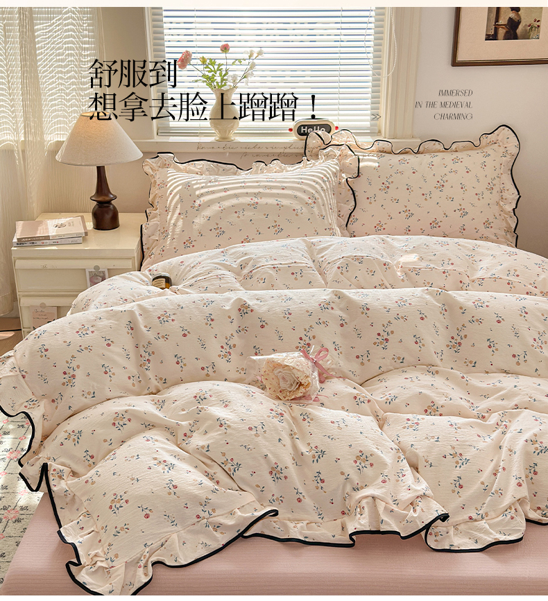 当前位置: 91家纺网 > 商品网购 > 床品套件 > 四件套 > 双层纱四件套 > 喜颜 2025新款爆款云感提花双层纱木棉花边四件套 浅夏