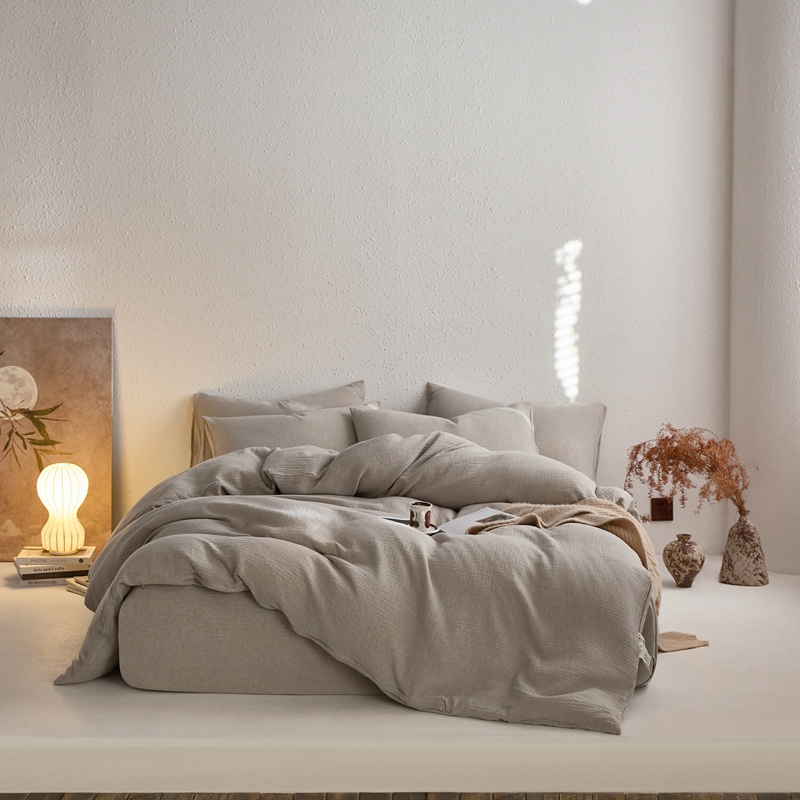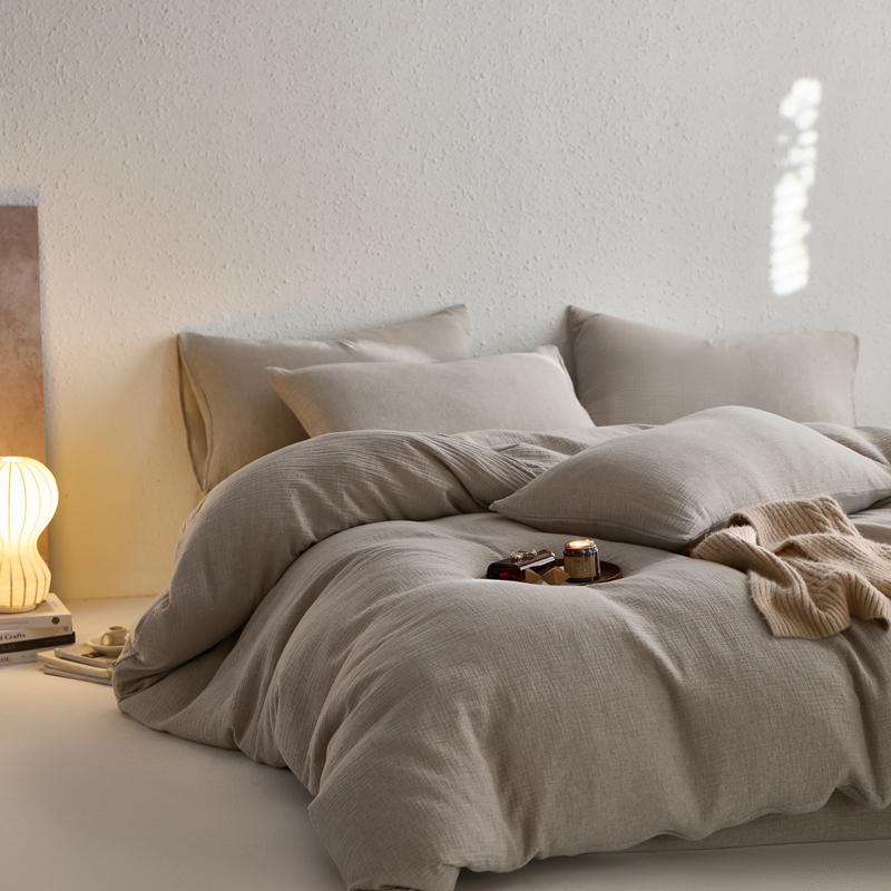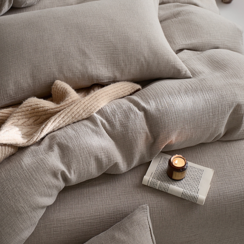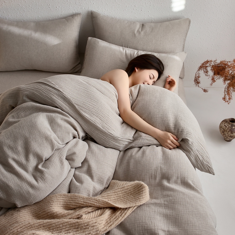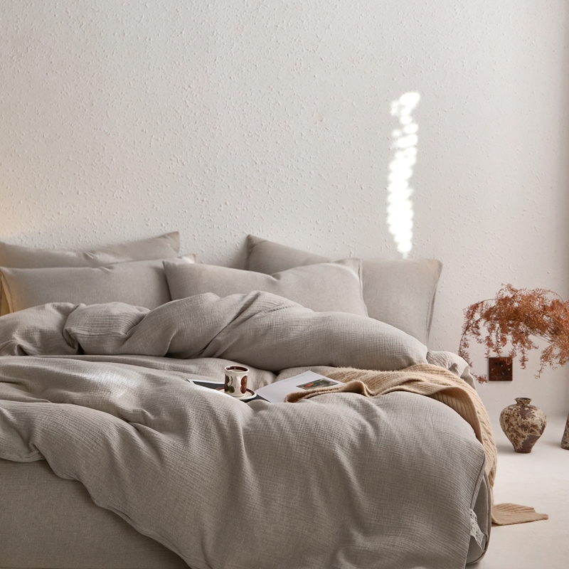 清雅福2025秋冬新品棉麻双层皱皱纱四件套系列 时空灰