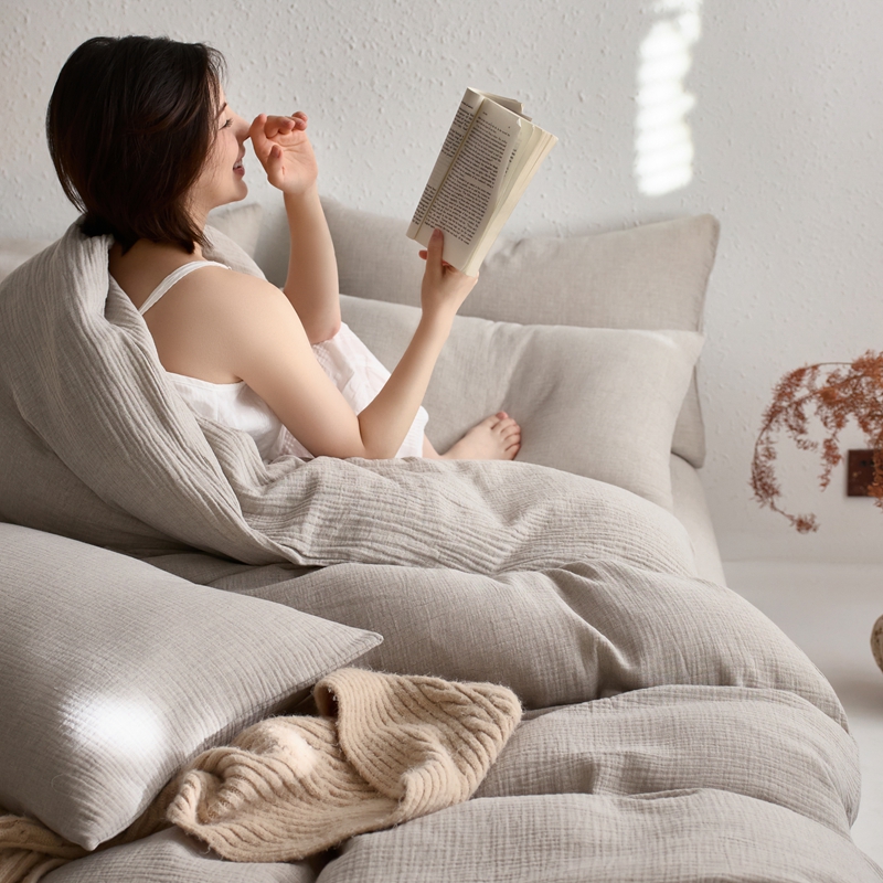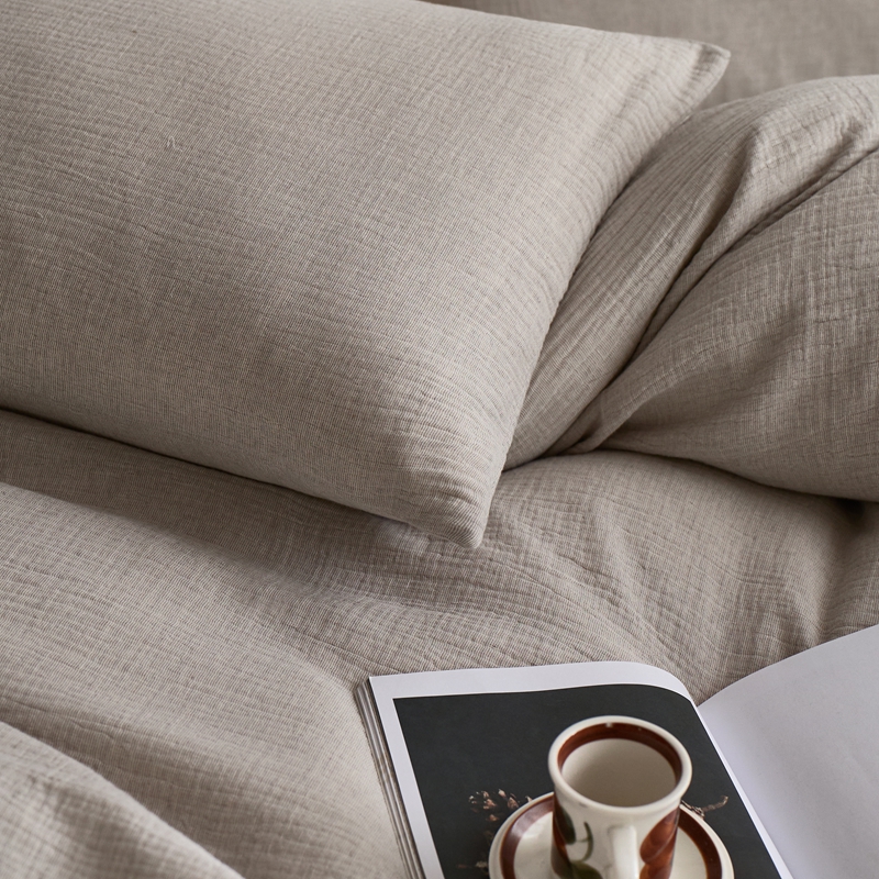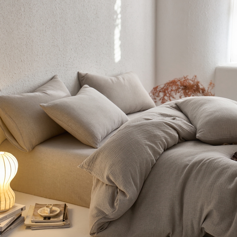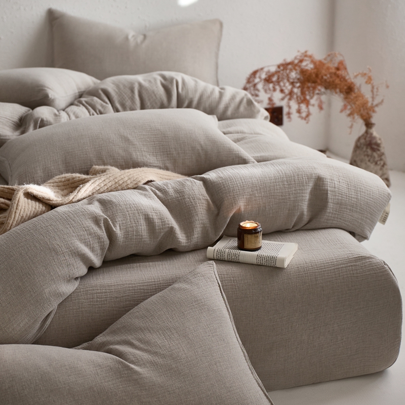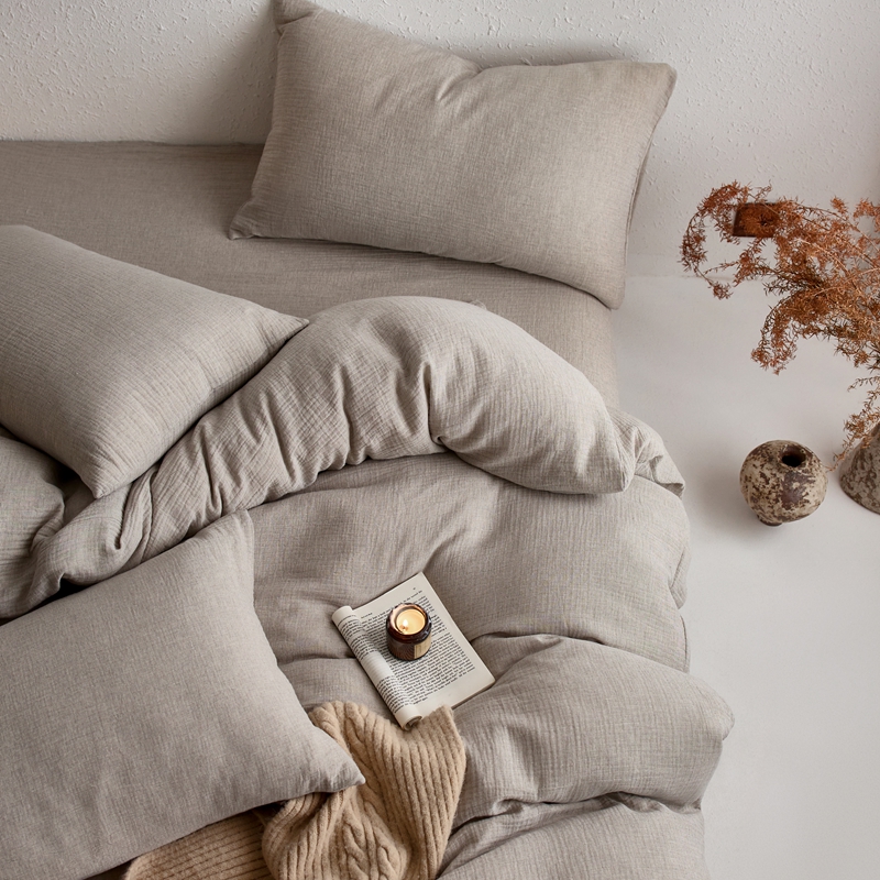 清雅福2025秋冬新品棉麻双层皱皱纱四件套系列 时空灰