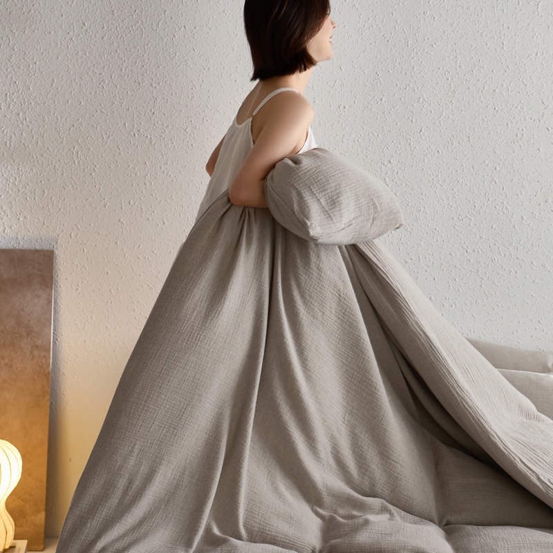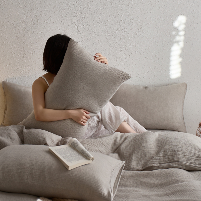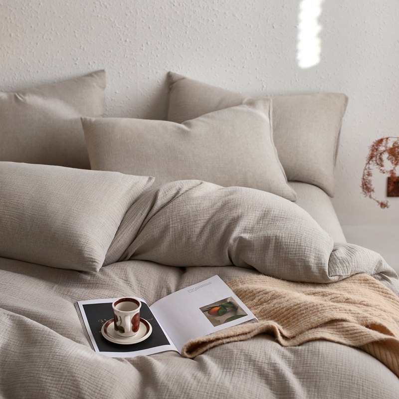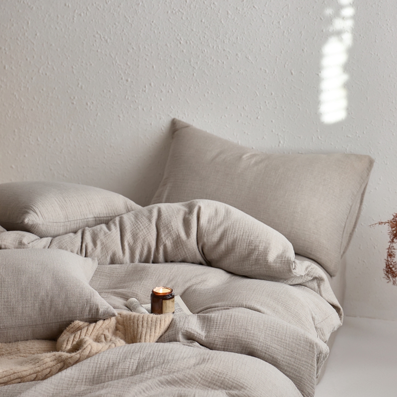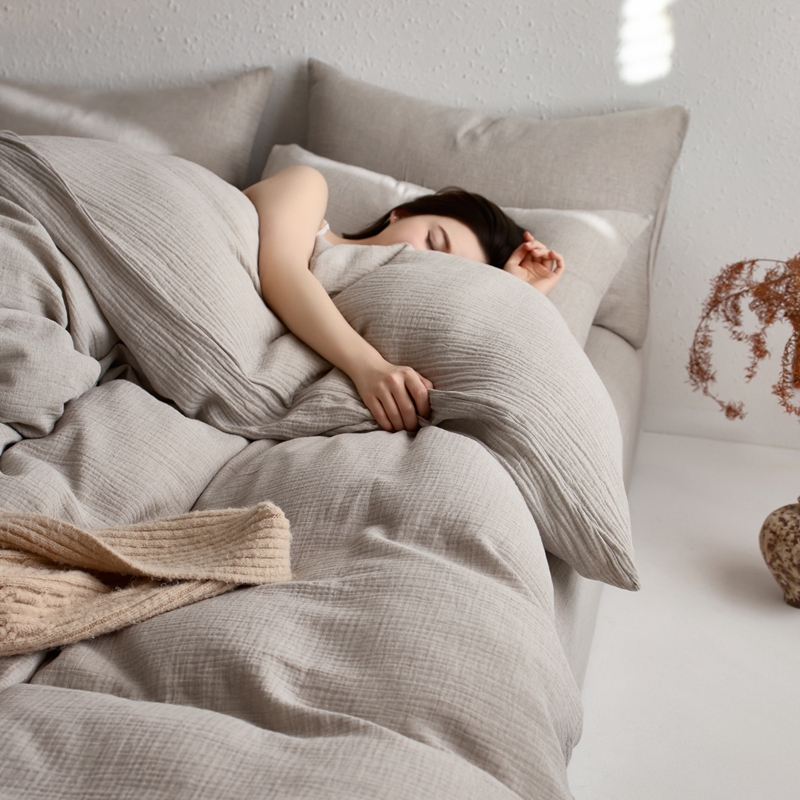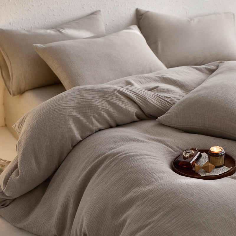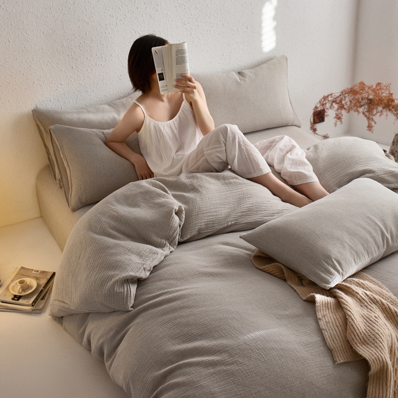 商品名称:清雅福2025秋冬新品棉麻双层皱皱纱四件套系列 时空灰