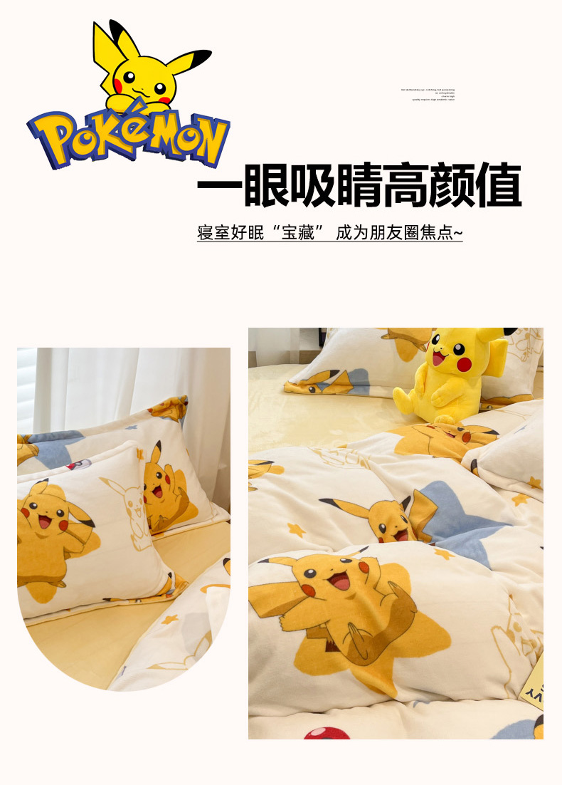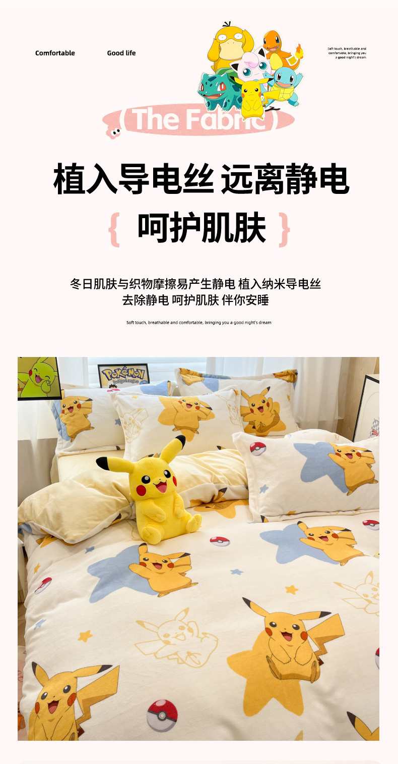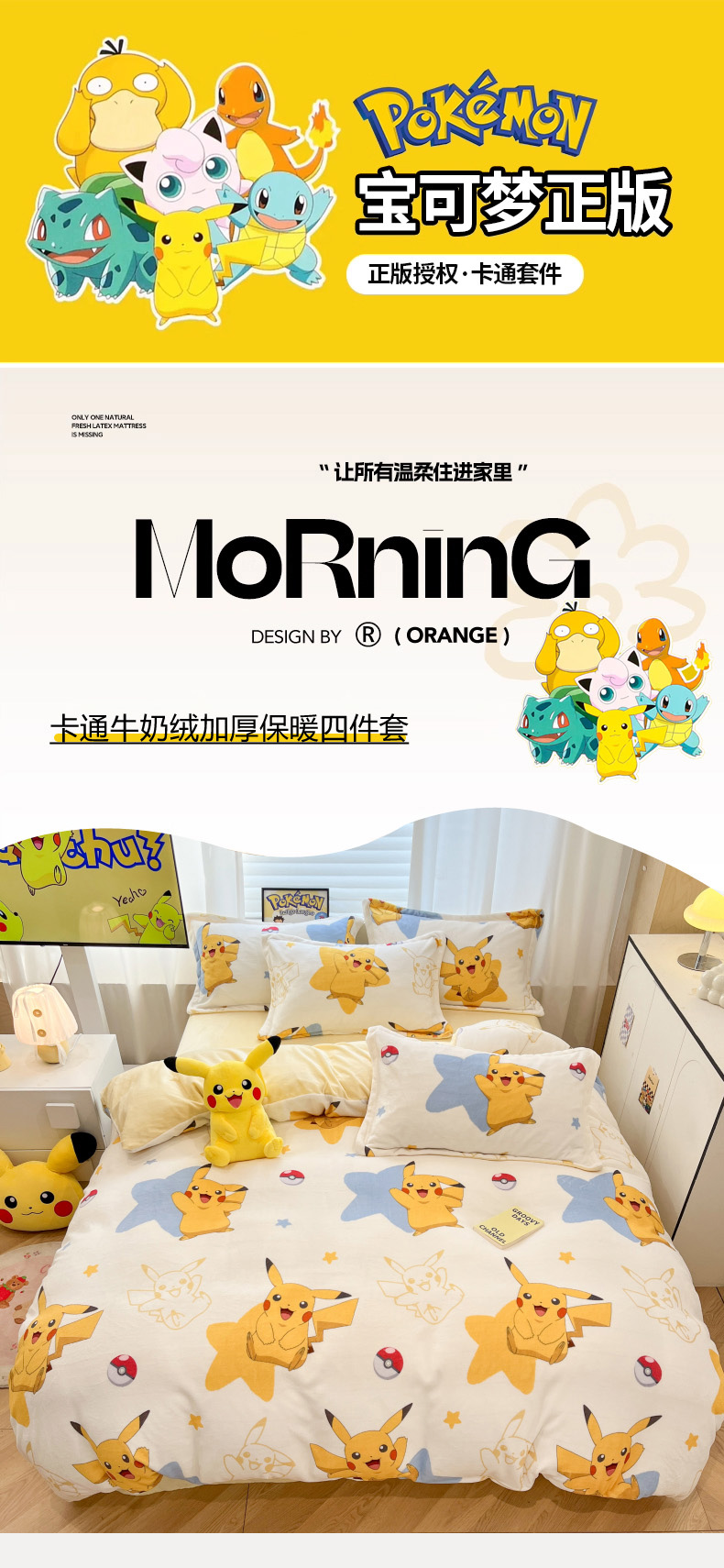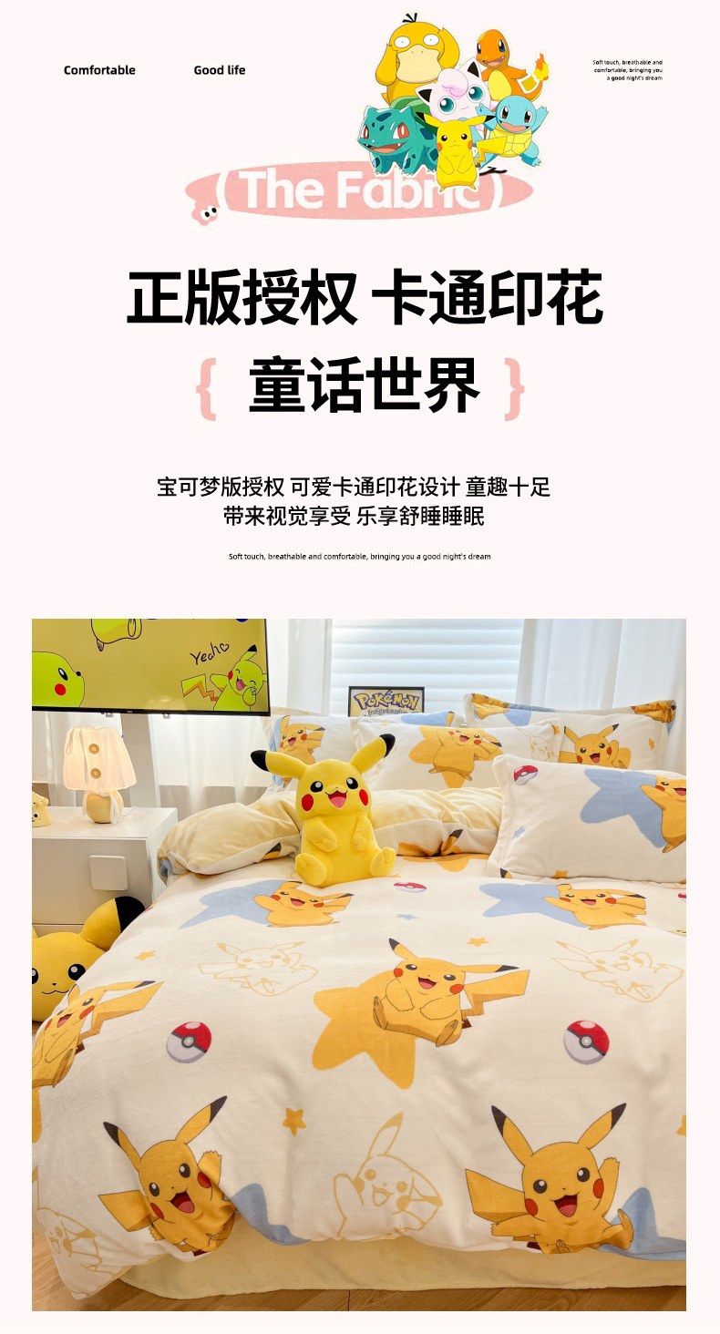 当前位置: 91家纺网 > 商品网购 > 床品套件 > 四件套 > 牛奶绒四件套 > 暮思家居 2025新款正版授权宝可梦数码印花高克重加厚保暖牛奶绒四件套 绒小版-星星皮卡丘
