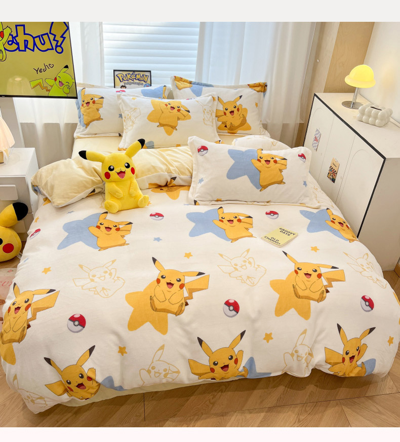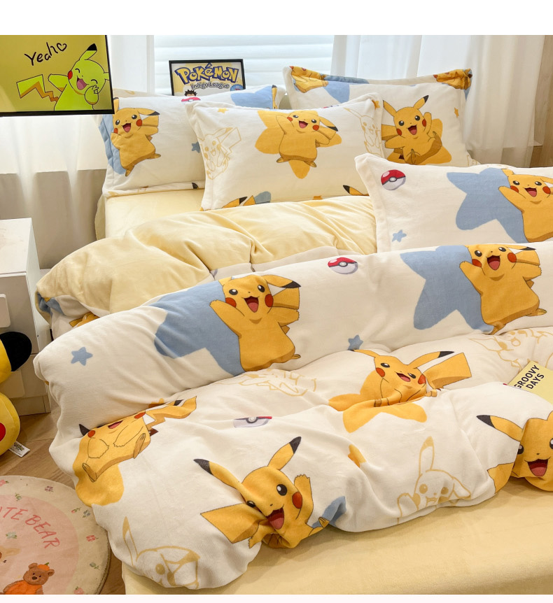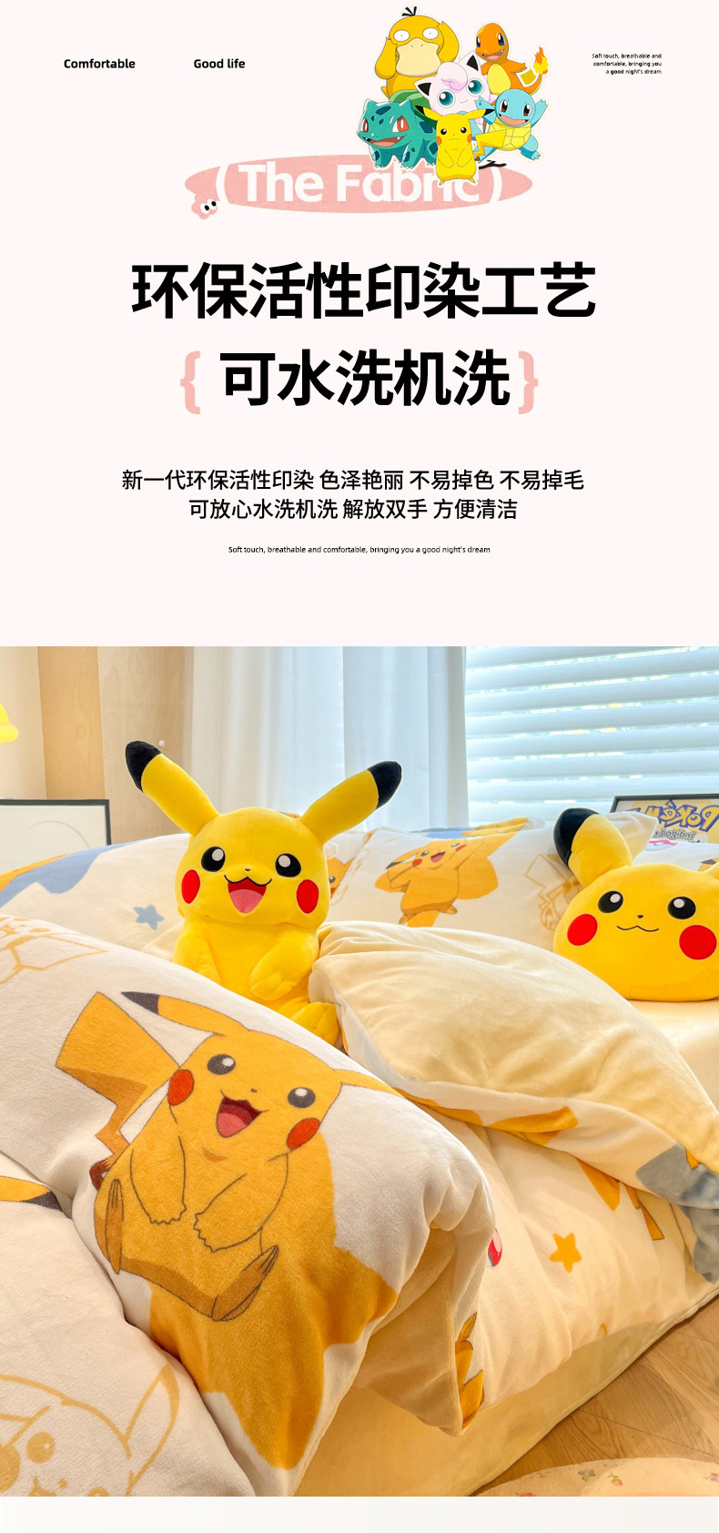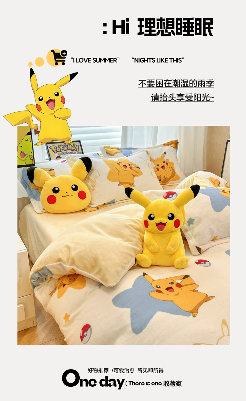 当前位置: 91家纺网 > 商品网购 > 床品套件 > 四件套 > 牛奶绒四件套 > 暮思家居 2025新款正版授权宝可梦数码印花高克重加厚保暖牛奶绒四件套 绒小版-星星皮卡丘