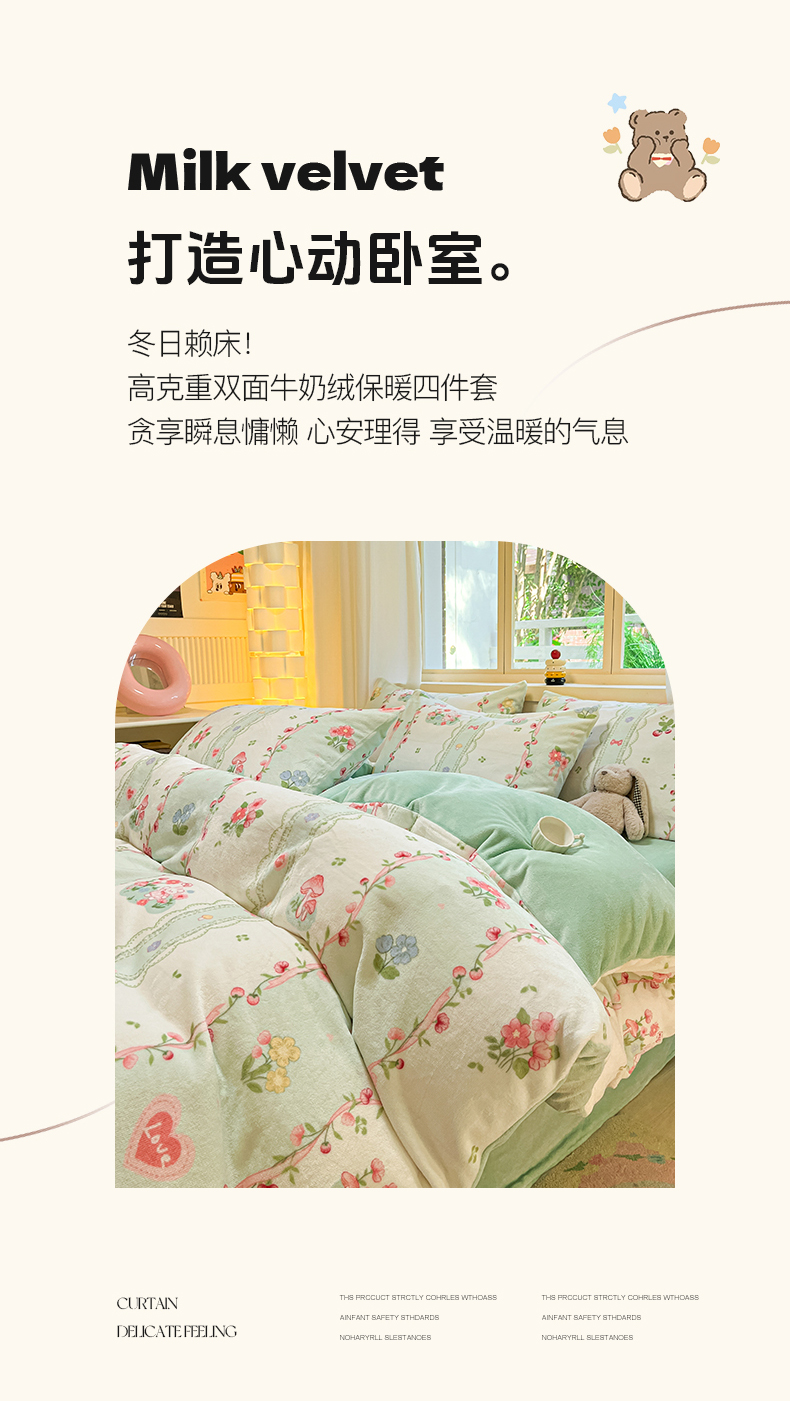 当前位置: 91家纺网 > 商品网购 > 床品套件 > 四件套 > 牛奶绒四件套 > 铭宣 2025新款高克重牛奶绒印花保暖四件套床单床笠单被套款 爱丽丝花园