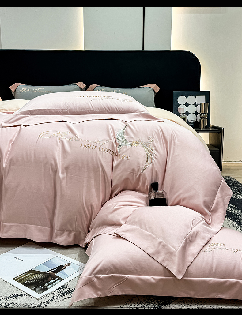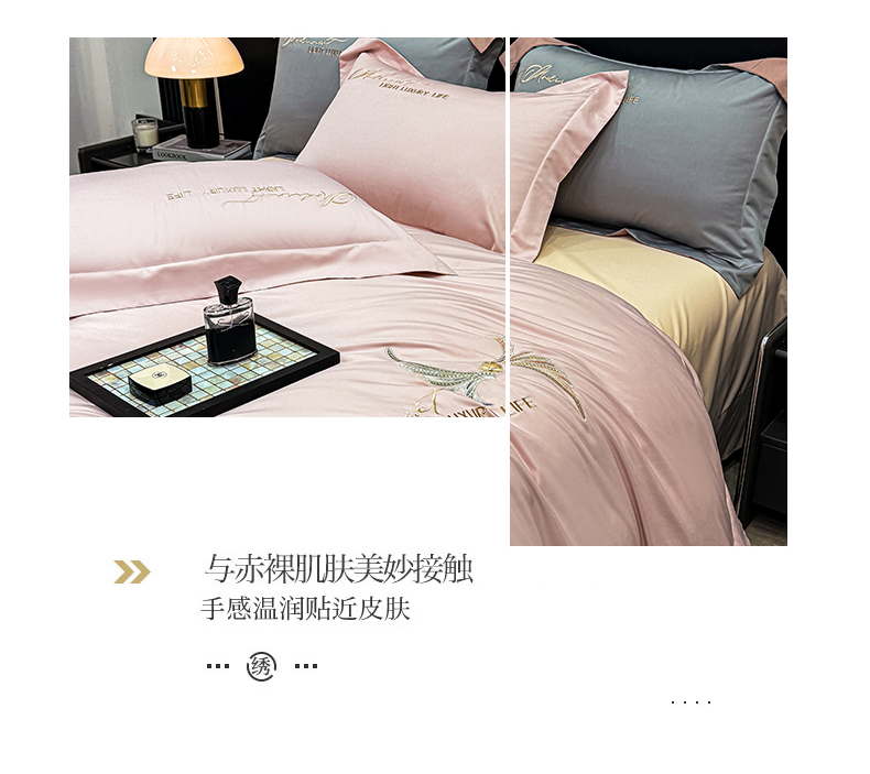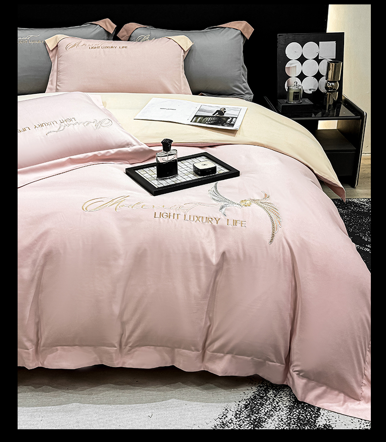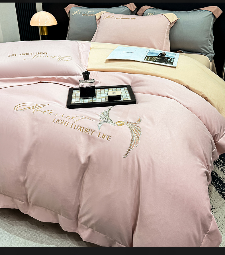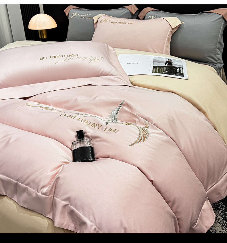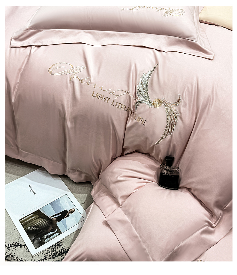 商品名称:悦织湾家纺 亲肤120克水洗棉磨毛刺绣纯色四件套2025新款轻奢韩版公主风精致床上用品绣花4件套 宽境粉玉