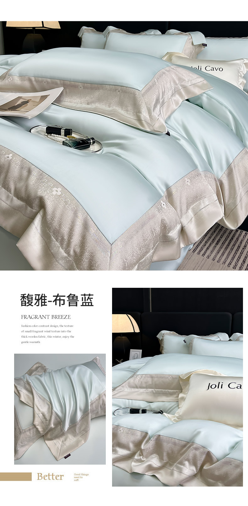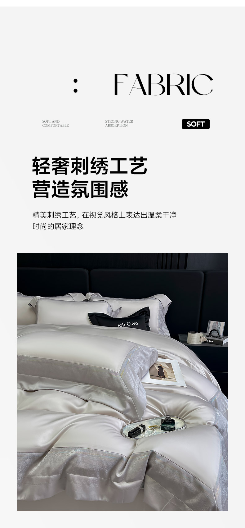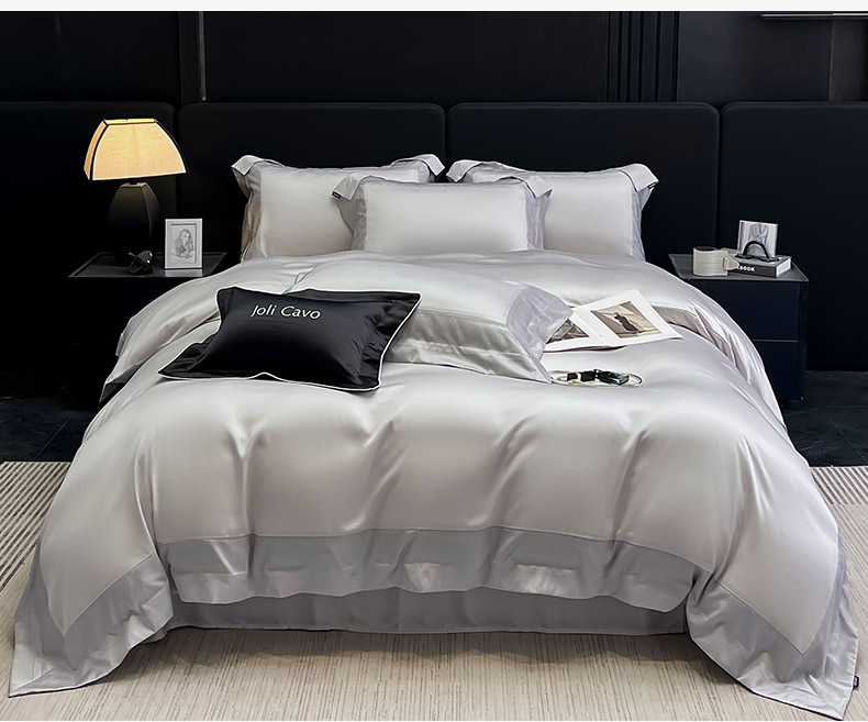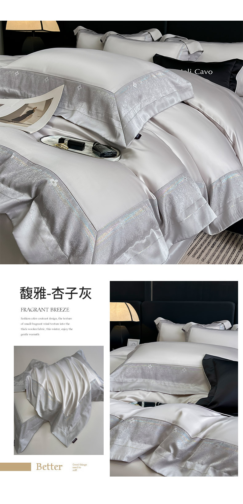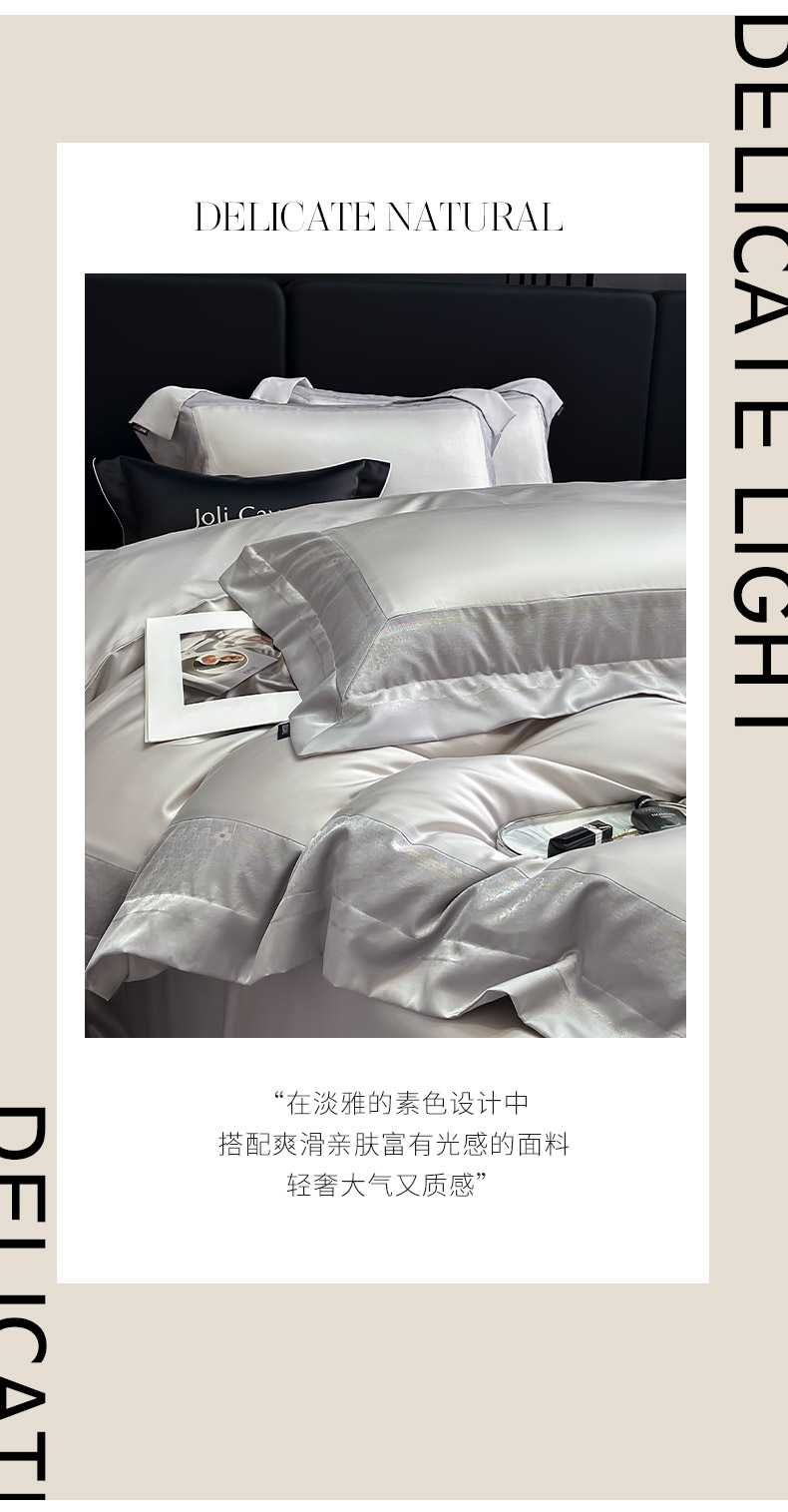 商品名称:2025轻奢风A类贡缎长绒棉四件套纯棉全棉重工刺绣被套床单高端拼接床上用品 馥雅-杏子灰