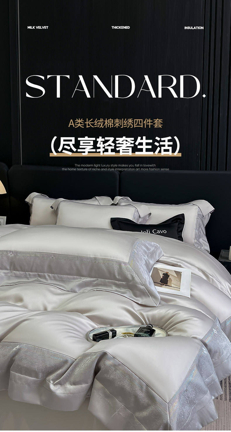 (总)2025新款轻奢风A类100支长绒棉四件套全棉纯棉重工刺绣床单床笠夹棉床笠床盖款高端床上用品-星慕,白粉,白蓝,茶绿,黛紫,慕蓝,奶玉,颜粉