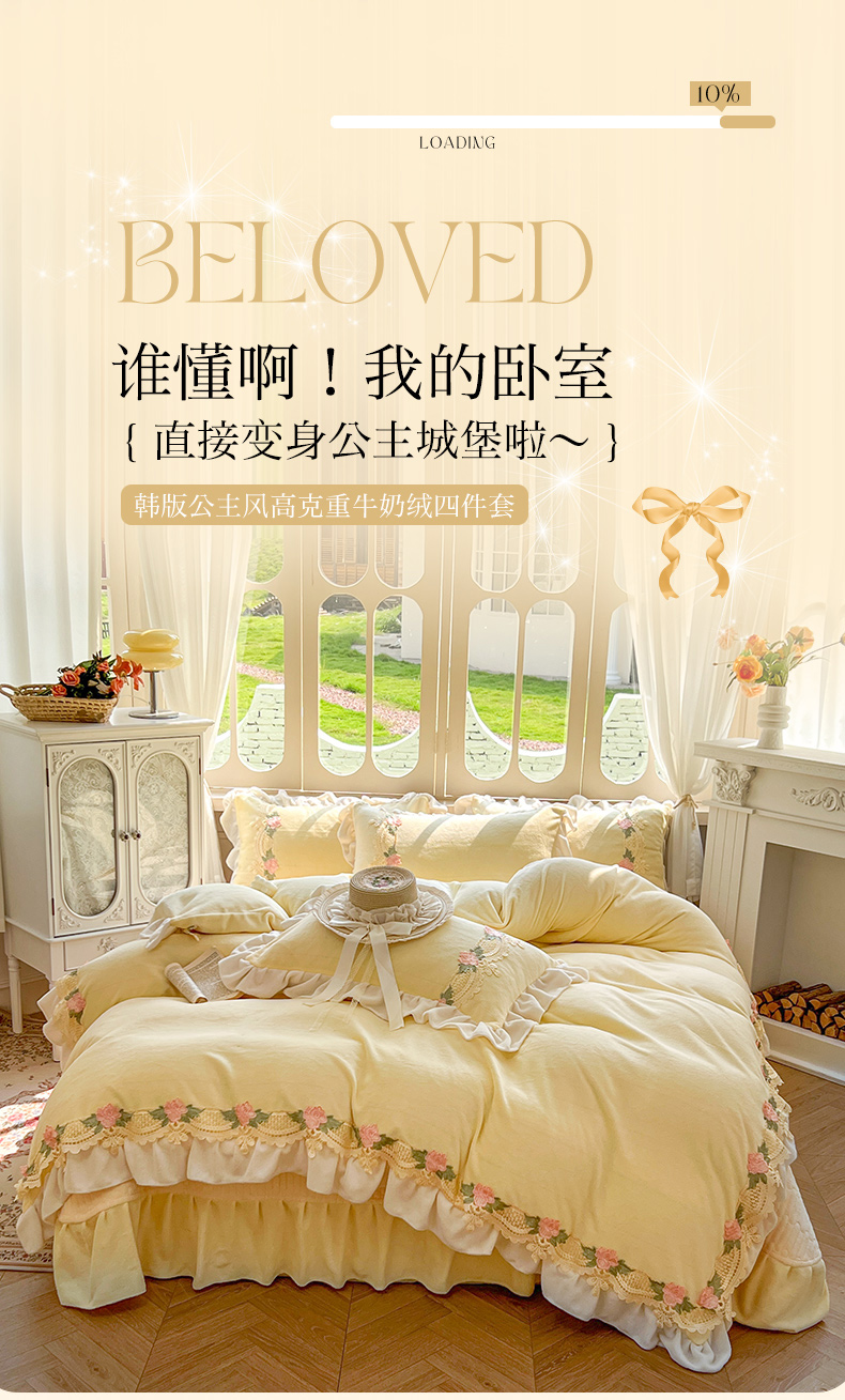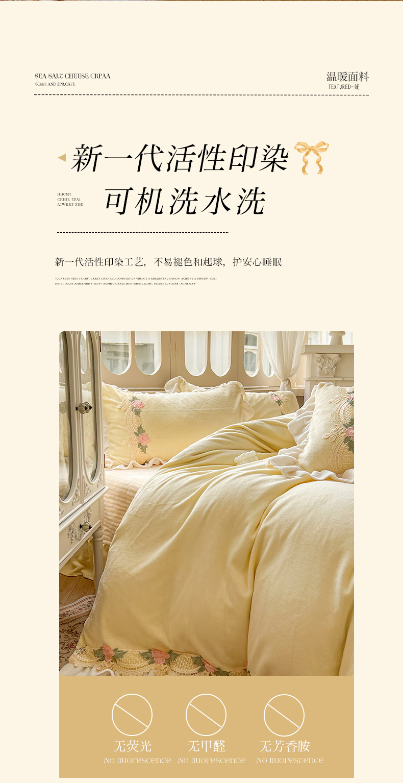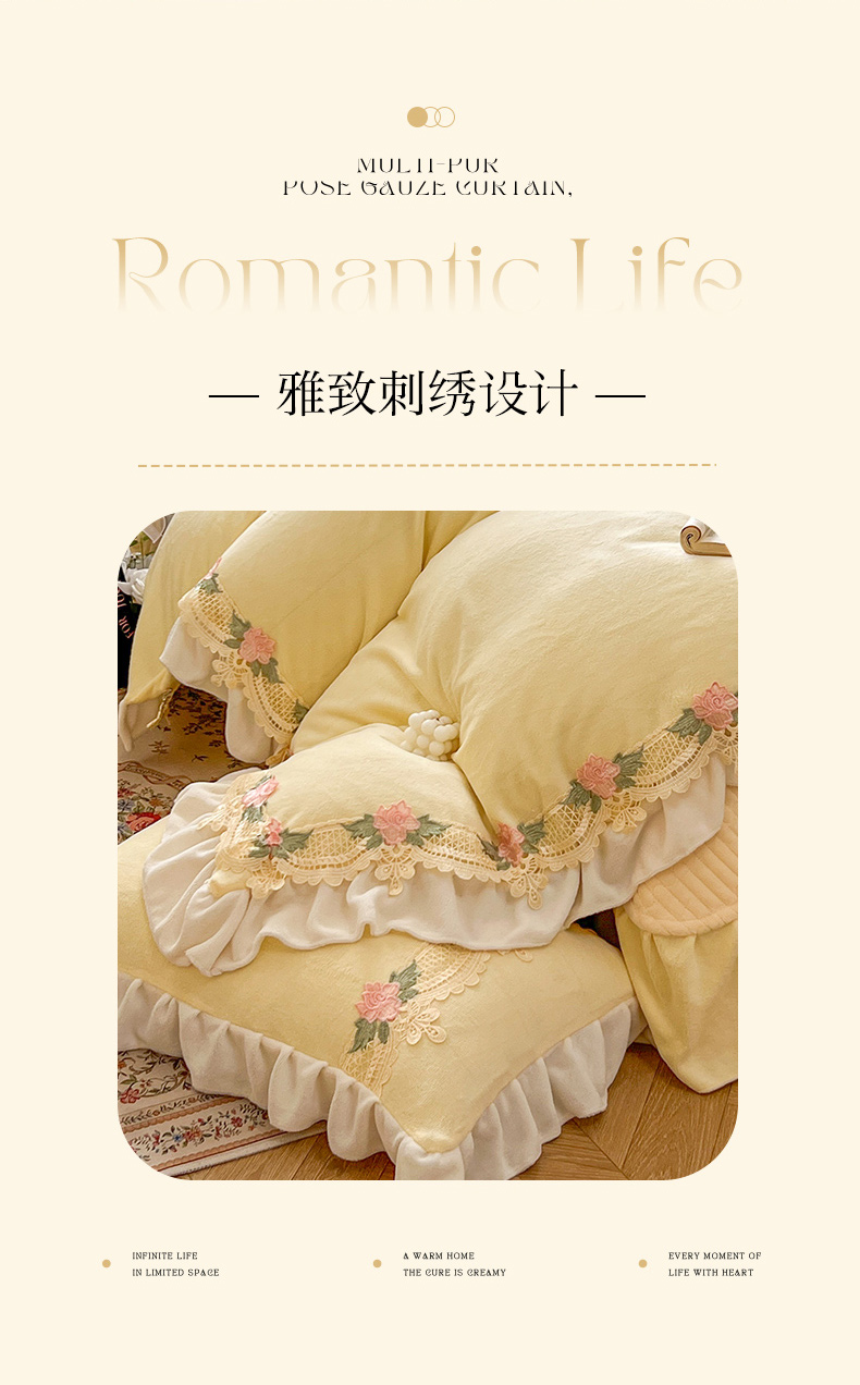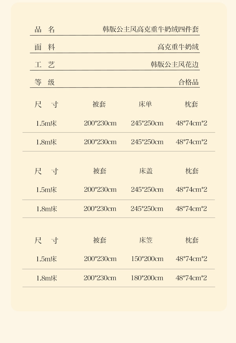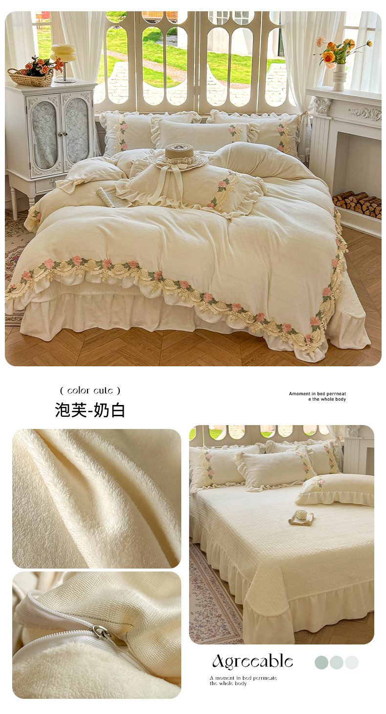 商品名称:(总)富米莱(原臻工厂) 2025新款热款高克重牛奶绒韩版公主风花边床盖床单四件套-泡芙