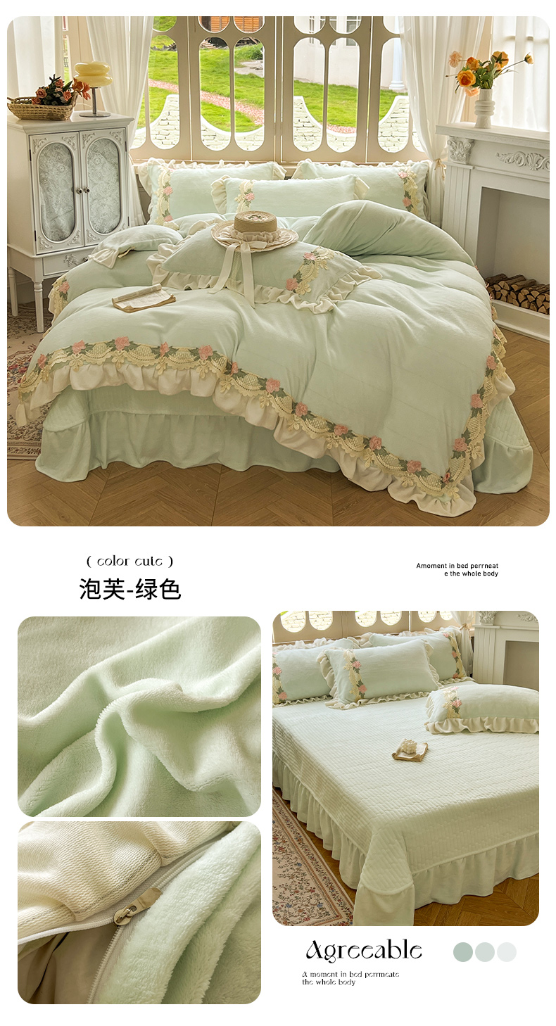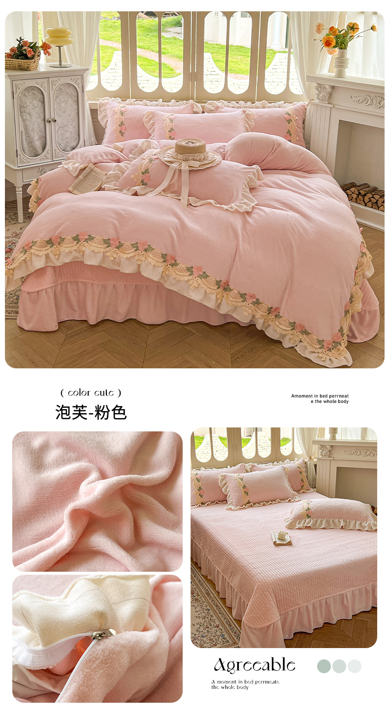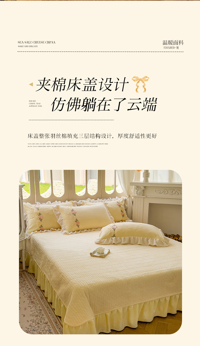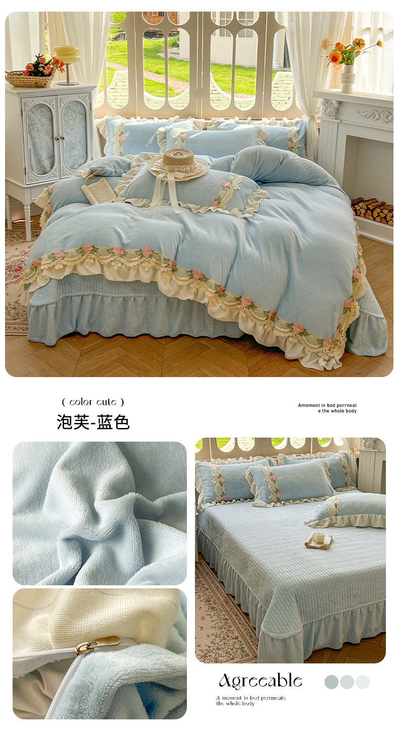 (总)富米莱(原臻工厂) 2025新款热款高克重牛奶绒韩版公主风花边床盖床单四件套-泡芙