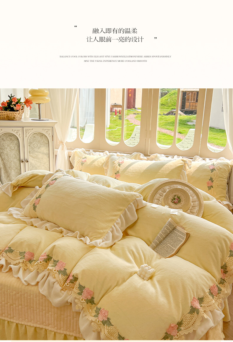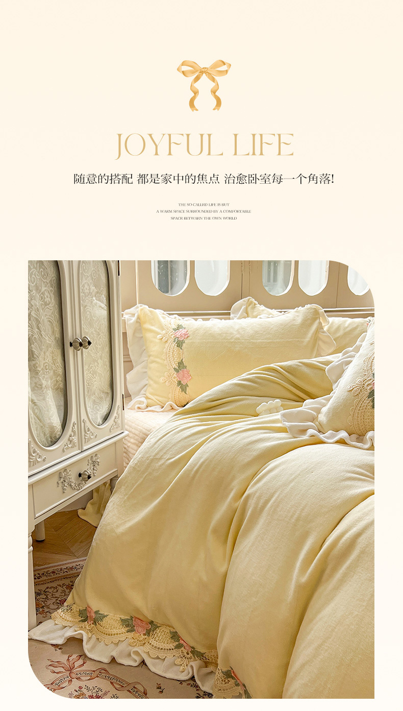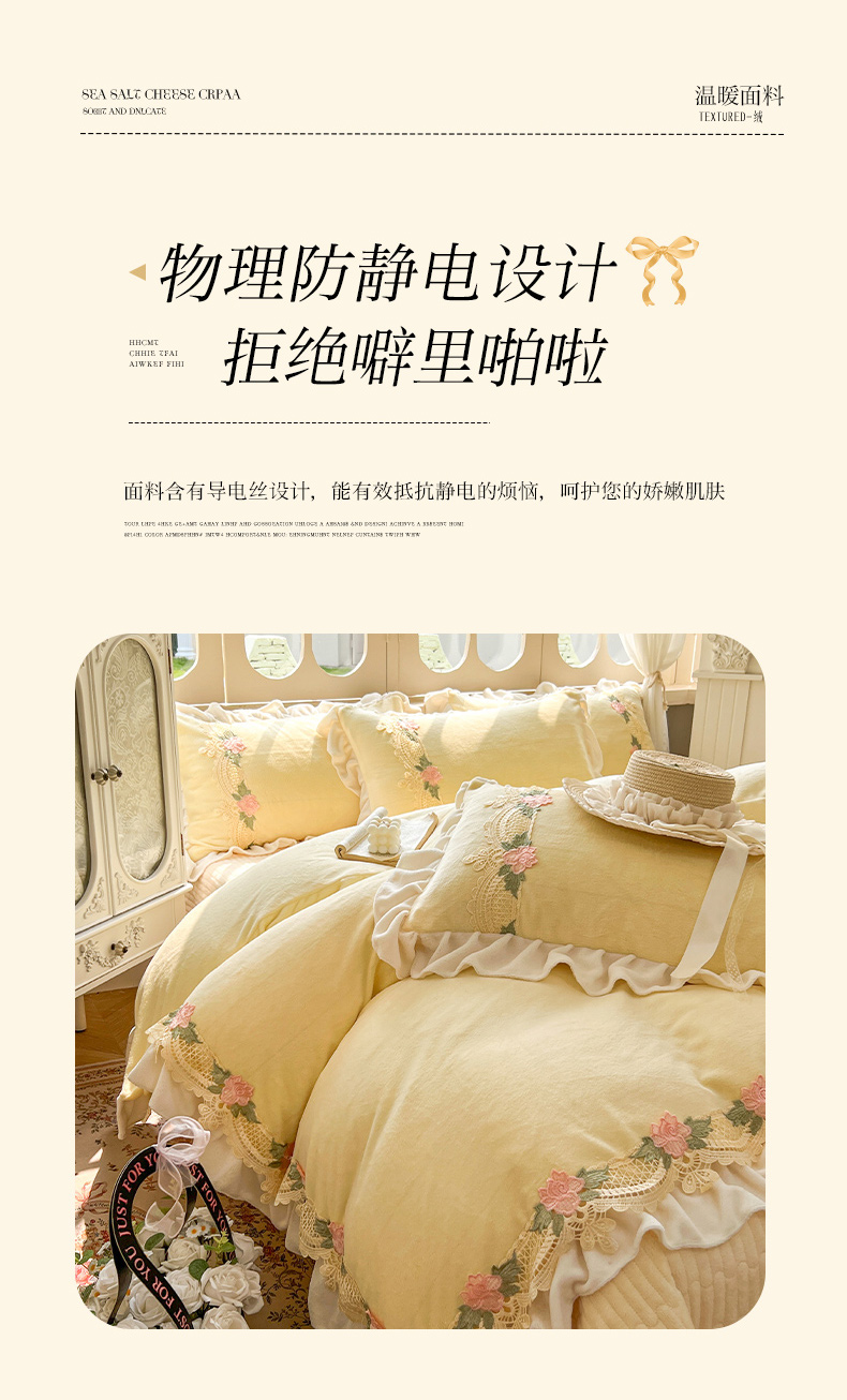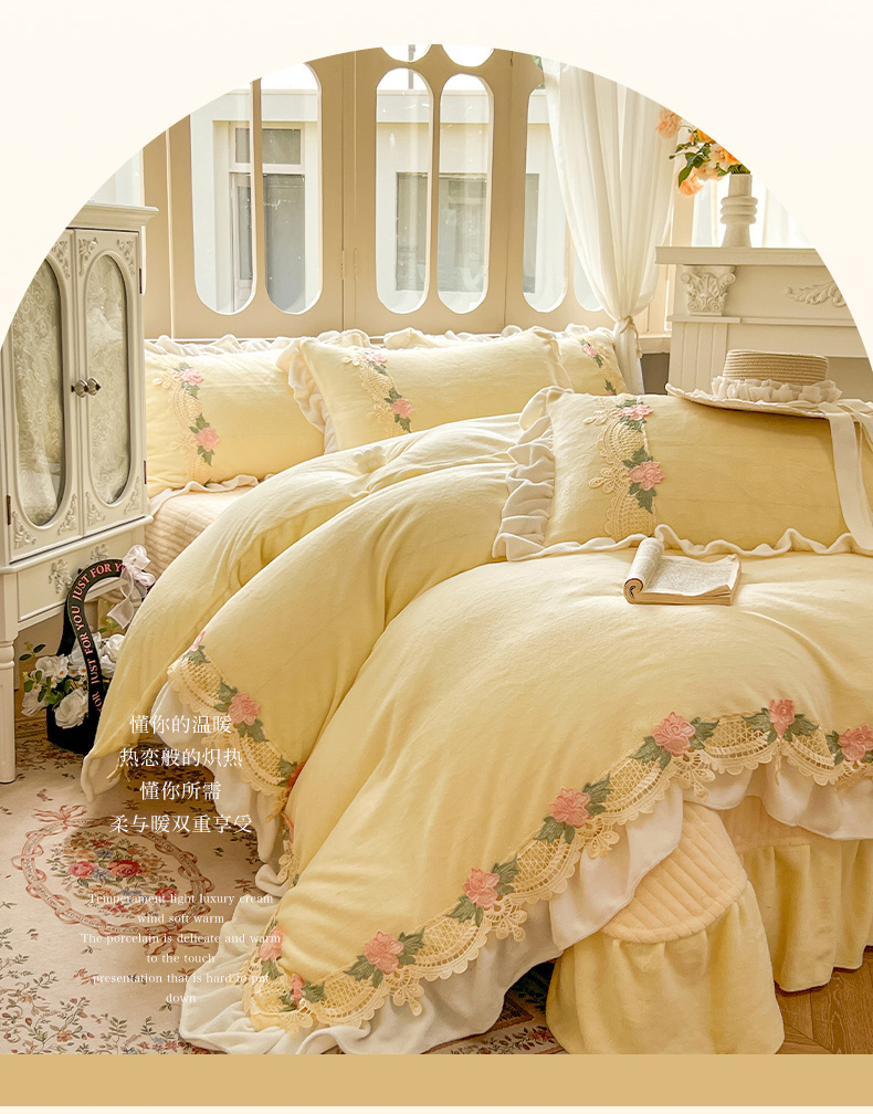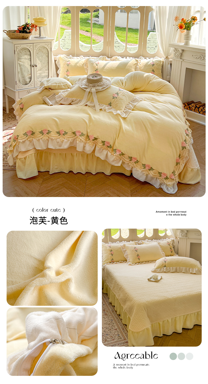 (总)富米莱(原臻工厂) 2025新款热款高克重牛奶绒韩版公主风花边床盖床单四件套-泡芙