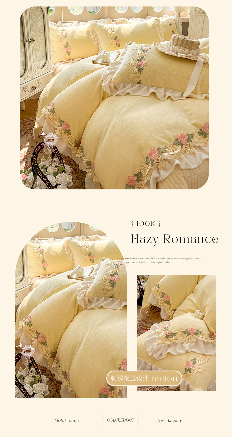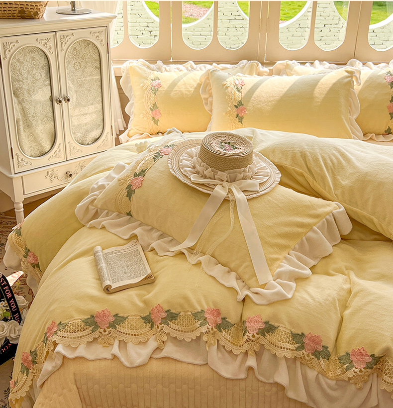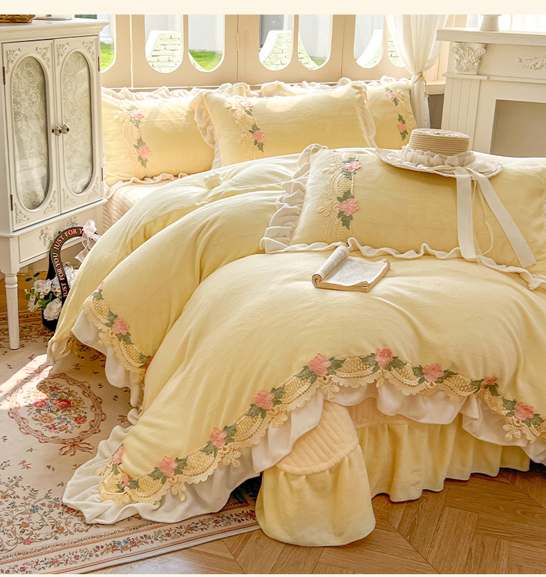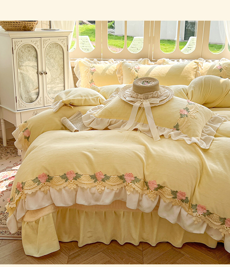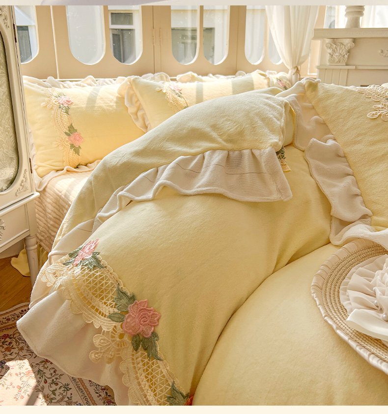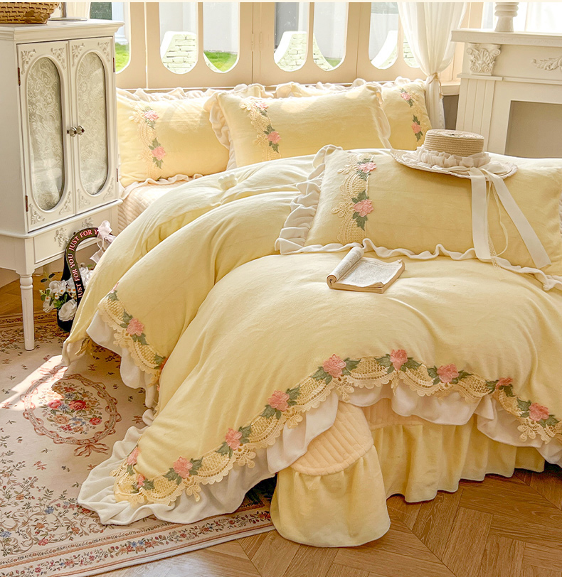 (总)富米莱(原臻工厂) 2025新款热款高克重牛奶绒韩版公主风花边床盖床单四件套-泡芙