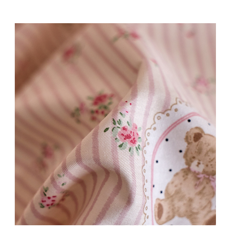 商品名称:清雅福 2025春夏新品全棉13372法式双层花边系列四件套 萌熊乐园