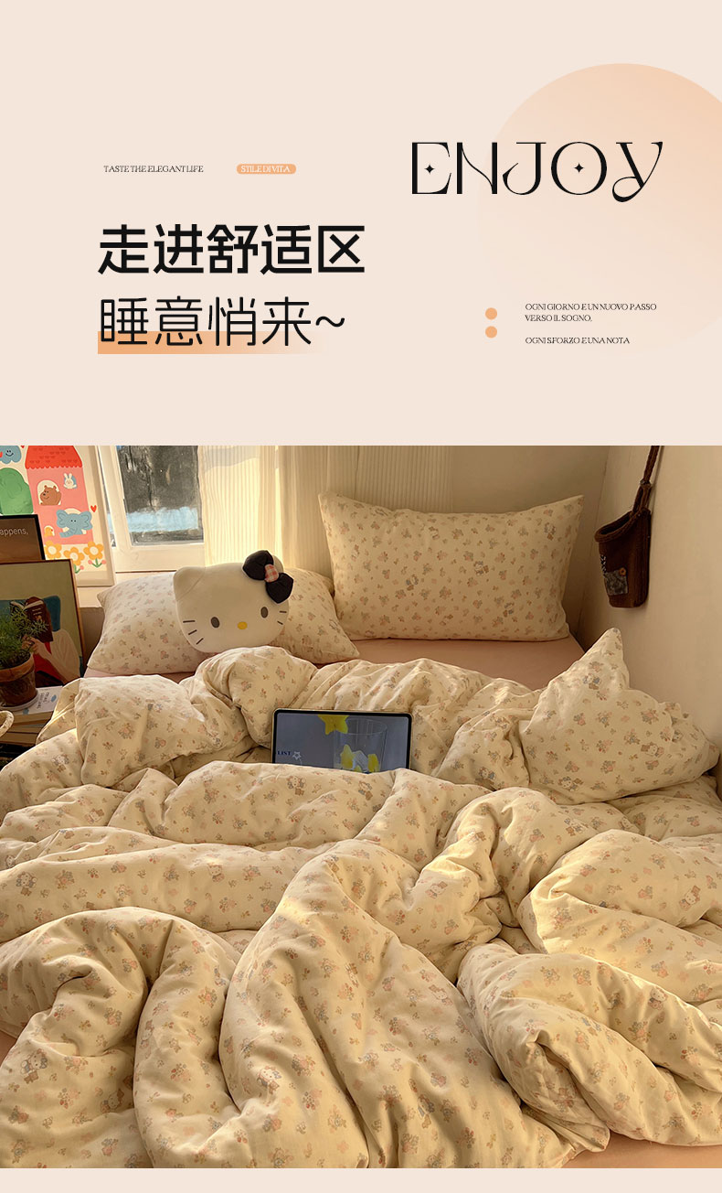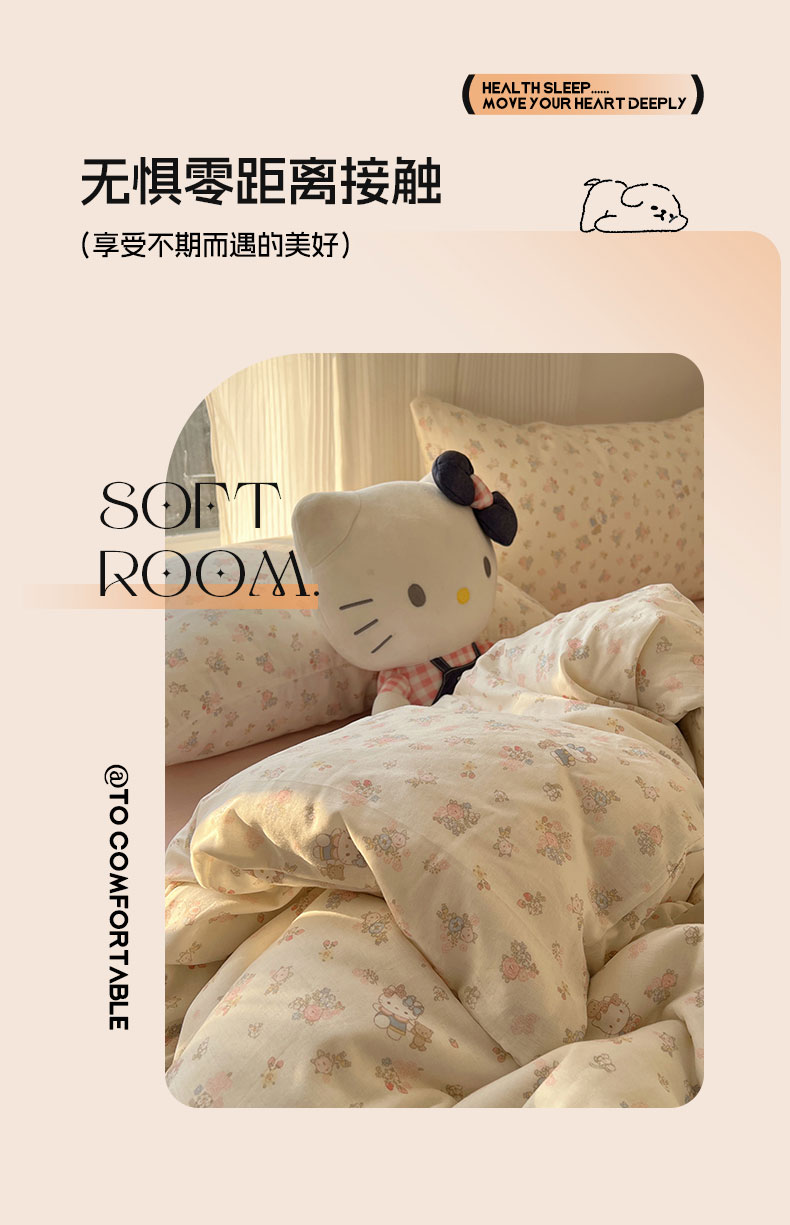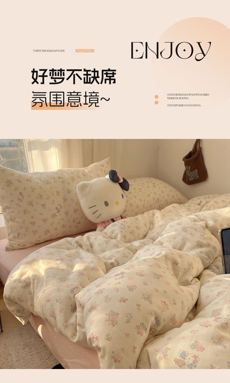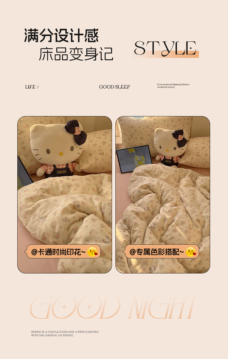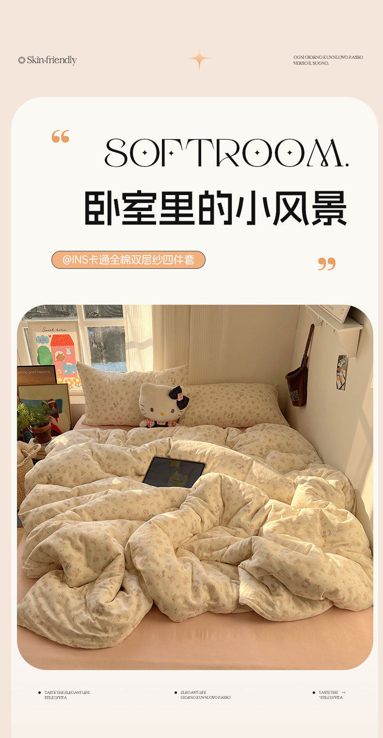 当前位置: 91家纺网 > 商品网购 > 床品套件 > 四件套 > 全棉普通四件套 > 六巷胡同 2026新款INS博主风卡通A类全棉双层纱四件套 双层纱-花圃萝莉猫