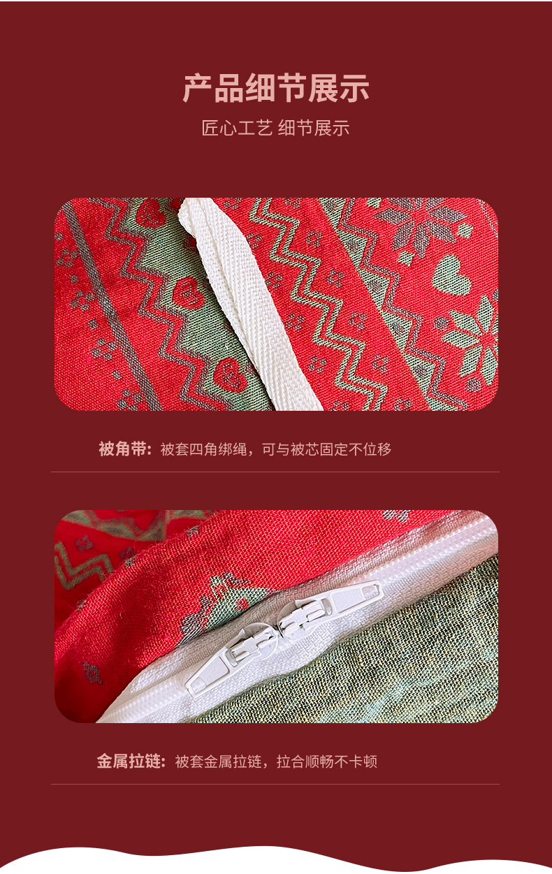 春皖家纺 2026新款全棉色织双层纱提花百福系列拉链款-单被套 红绝影