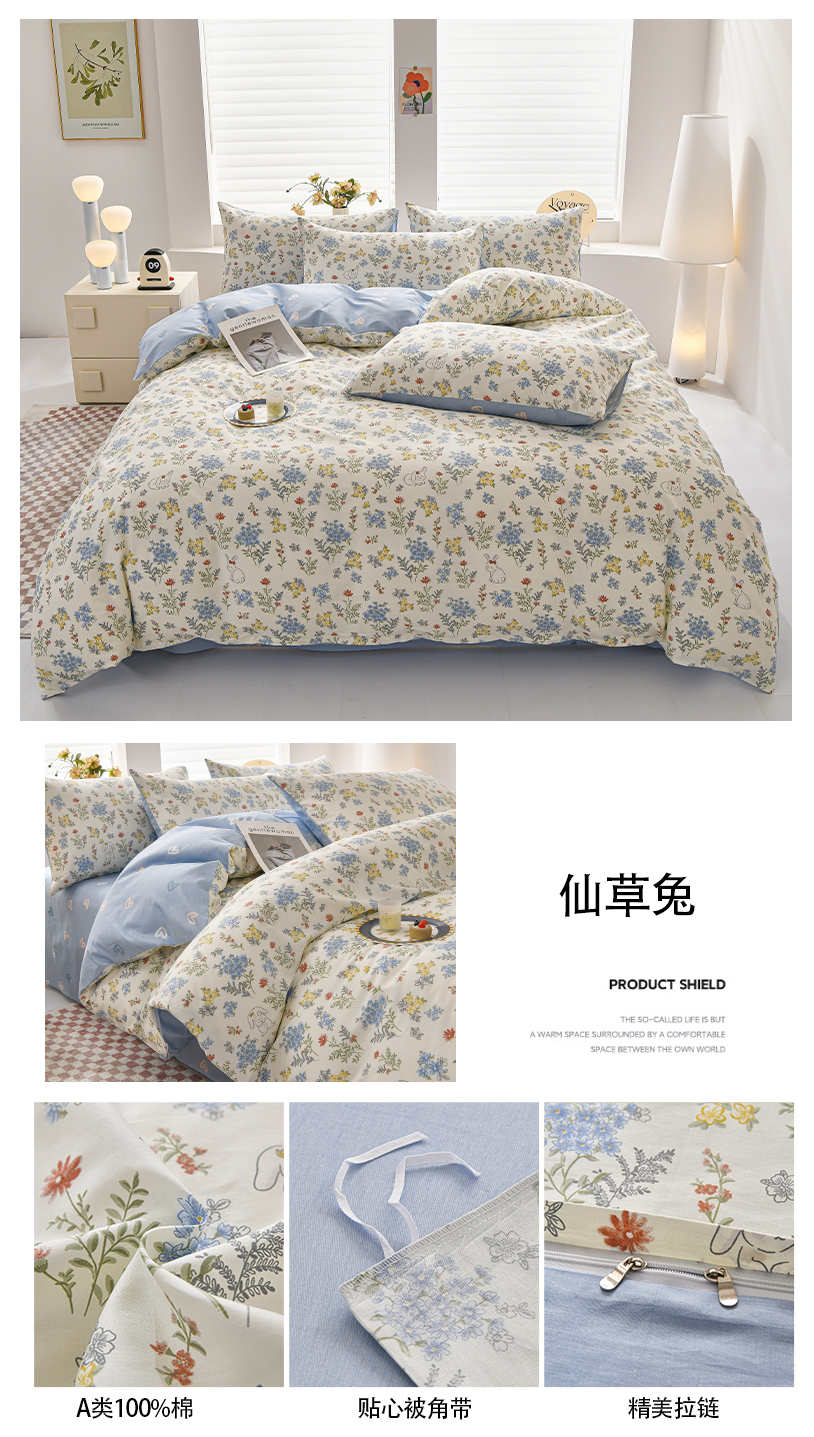 当前位置: 91家纺网 > 商品网购 > 床品套件 > 四件套 > 全棉普通四件套 > 宇彬家纺 2026直播新款13070A类全棉纯棉印花床单床笠款四件套和单被套喷气清新简约(缩水足可定做) 熊和兔