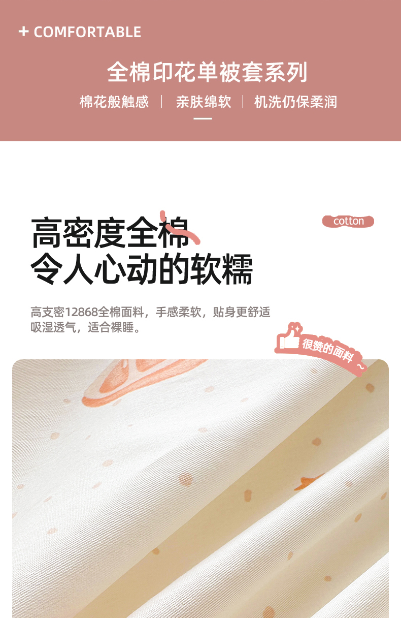 商品名称:绵庭家纺 2026新款12868全棉纯棉印花系列被套单件单品被套单被套-第一批 甜桔小兔
