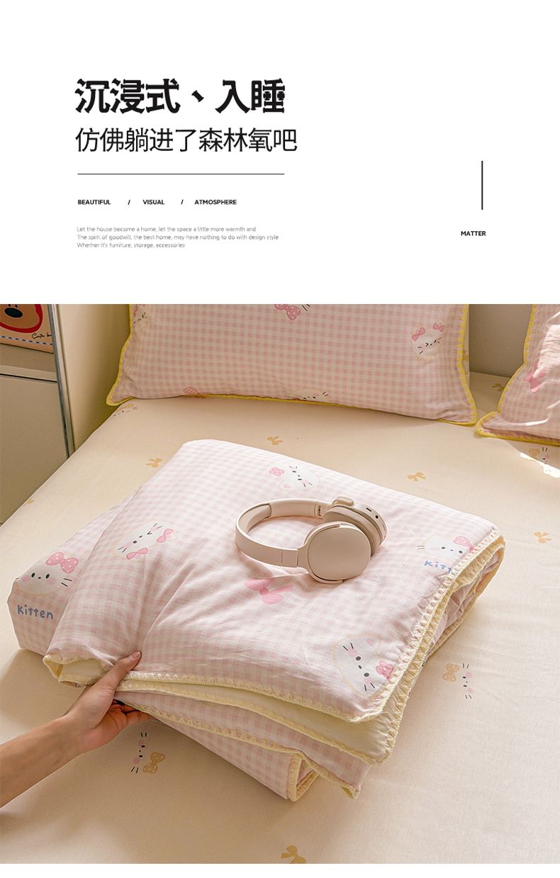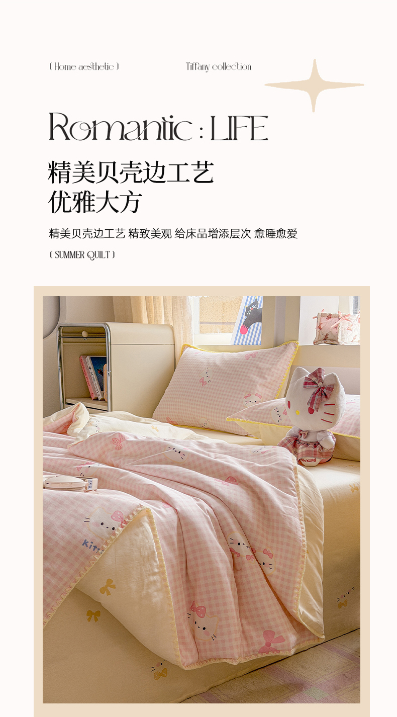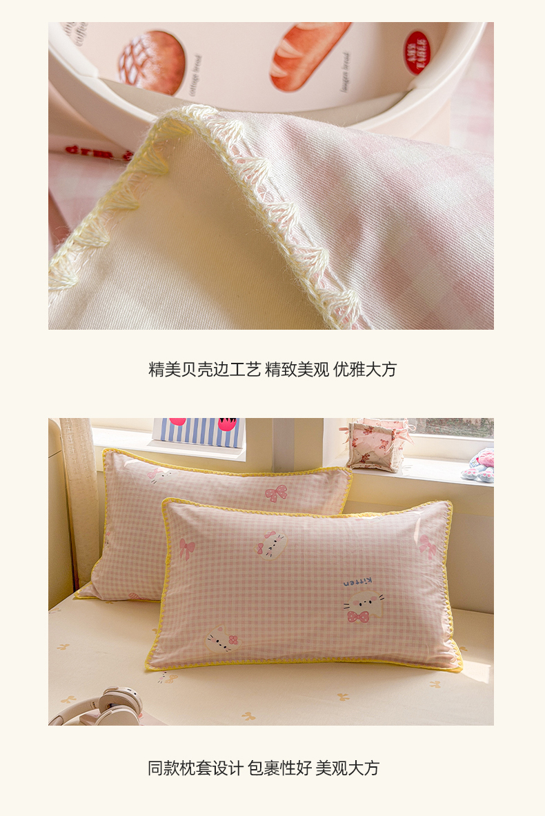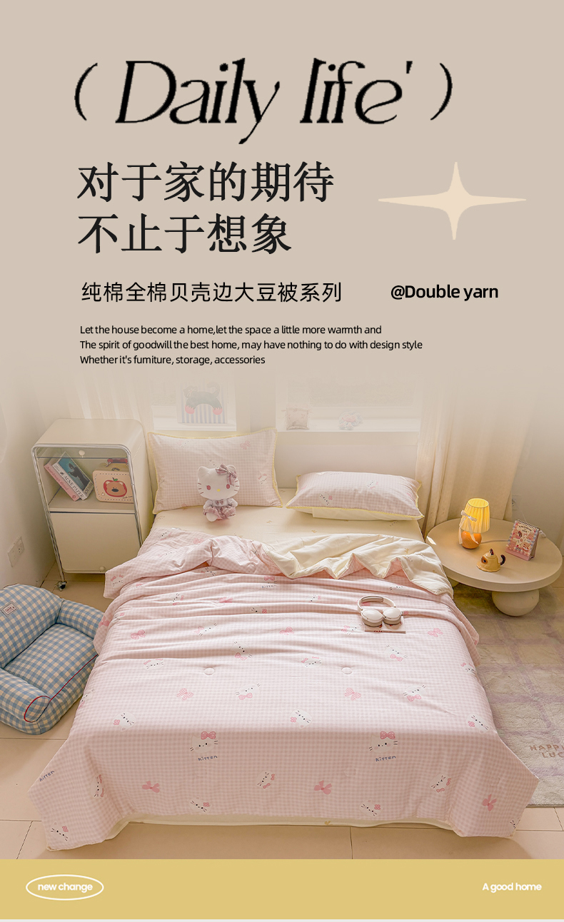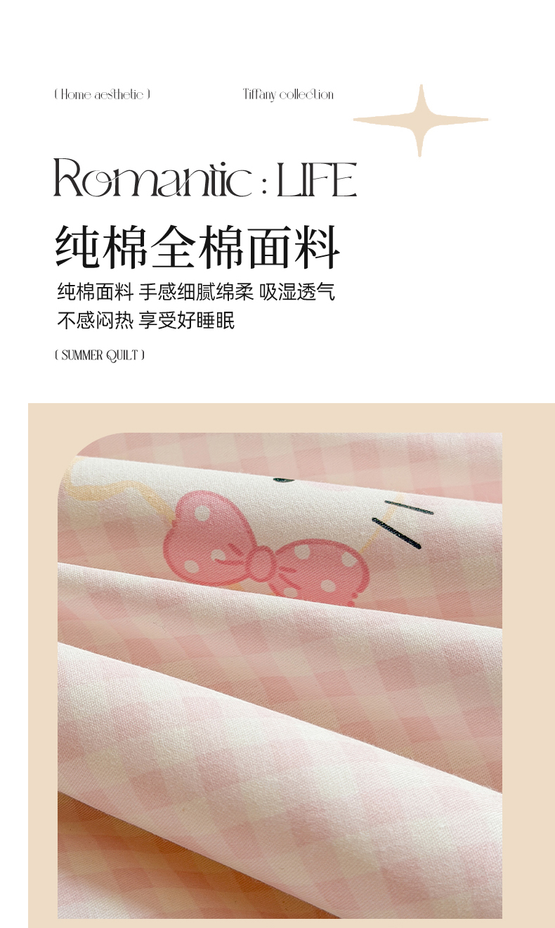 当前位置: 91家纺网 > 商品网购 > 床品套件 > 四件套 > 全棉普通四件套 > 简宜家居(朝初家纺) 2026新款全棉花卉卡通系列贝壳边夏被四件套 粉格日记