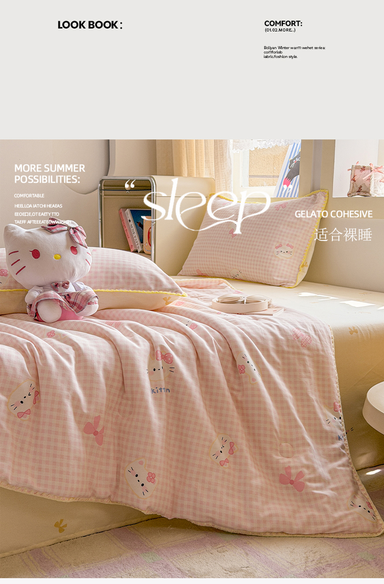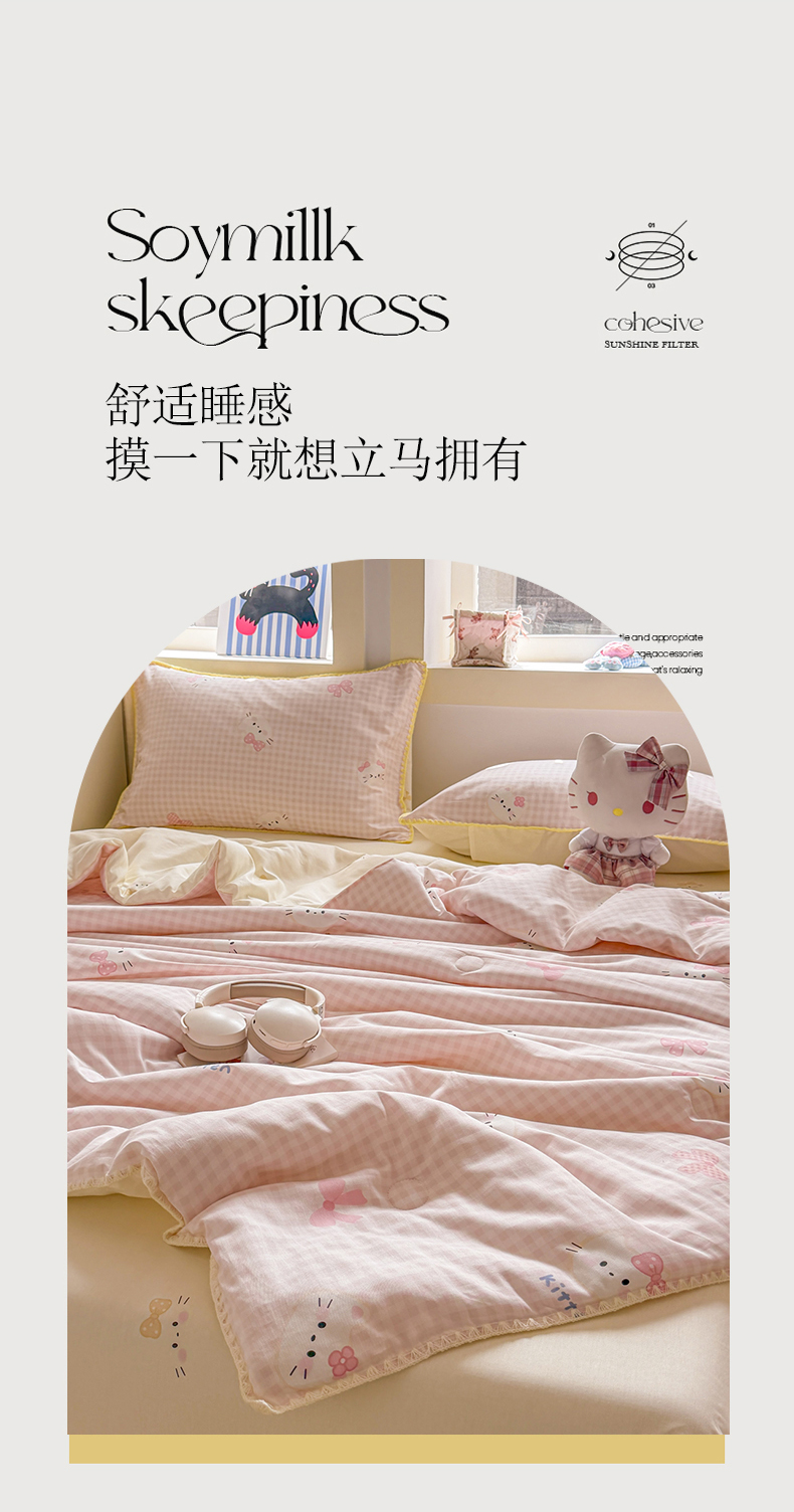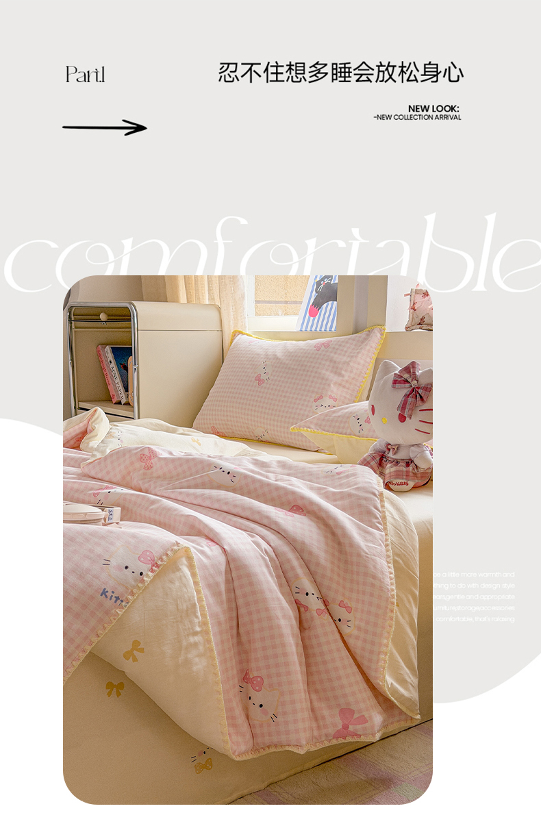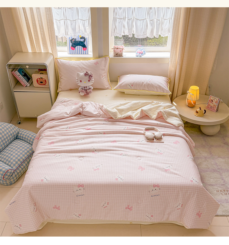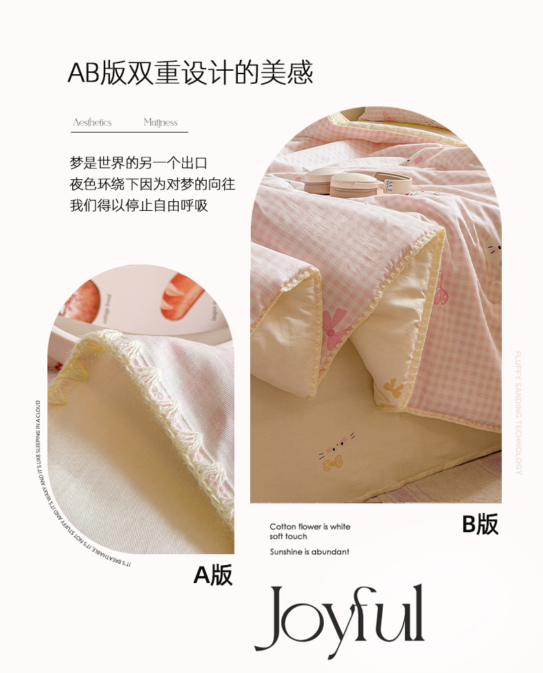 当前位置: 91家纺网 > 商品网购 > 床品套件 > 四件套 > 全棉普通四件套 > 简宜家居(朝初家纺) 2026新款全棉花卉卡通系列贝壳边夏被四件套 粉格日记