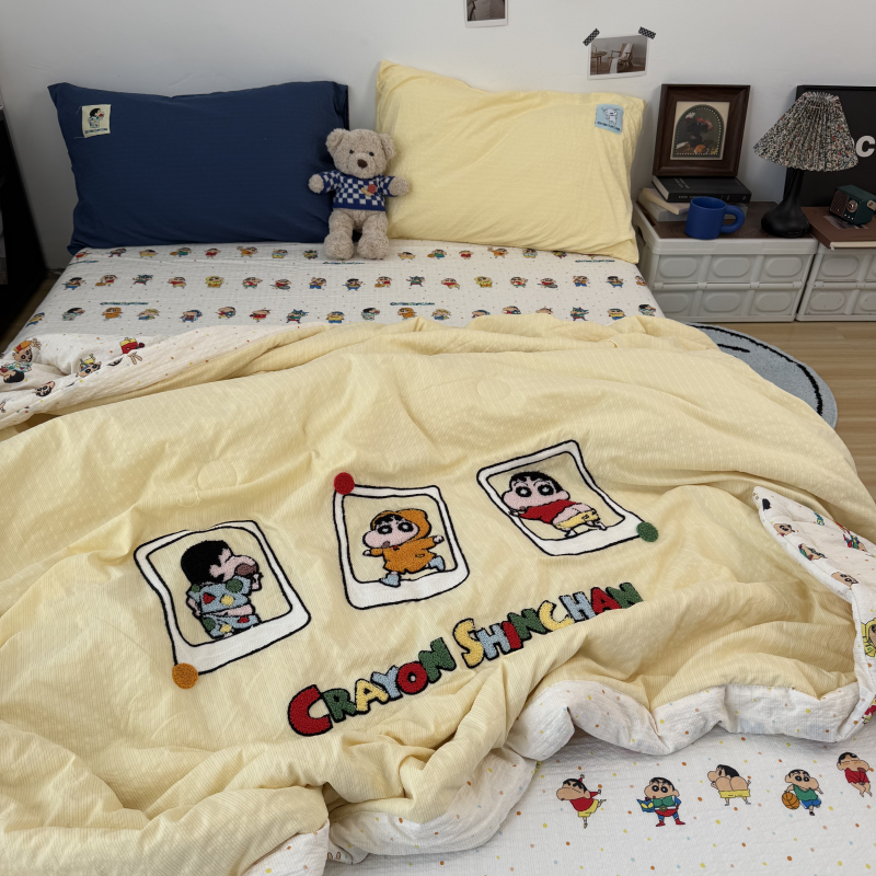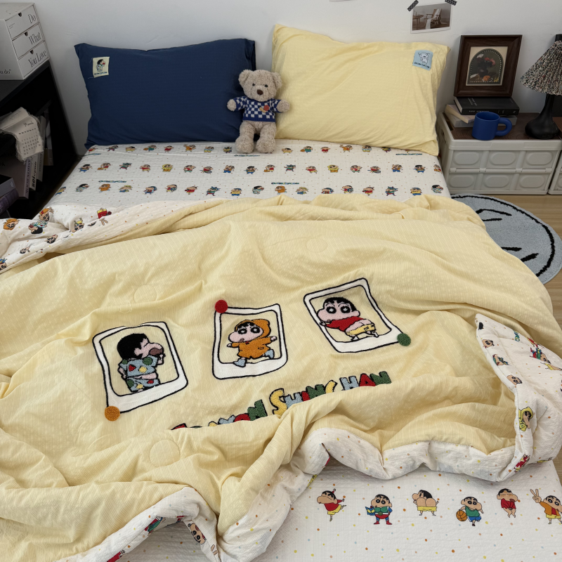 当前位置: 91家纺网 > 商品网购 > 被子 > 夏被 > 三元色 2026新款正版蜡笔小新泡芙双层纱夏被夏凉被 动感超人
