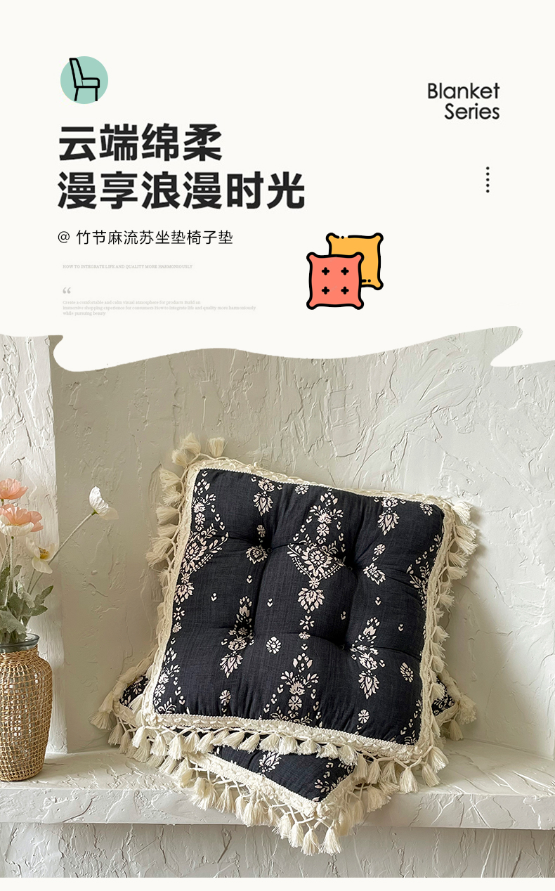 当前位置: 91家纺网 > 商品网购 > 居家布艺 > 坐垫/椅垫/沙发垫 > 椅垫 > 座享家 2026新款竹节麻流苏坐垫椅子垫 明绿