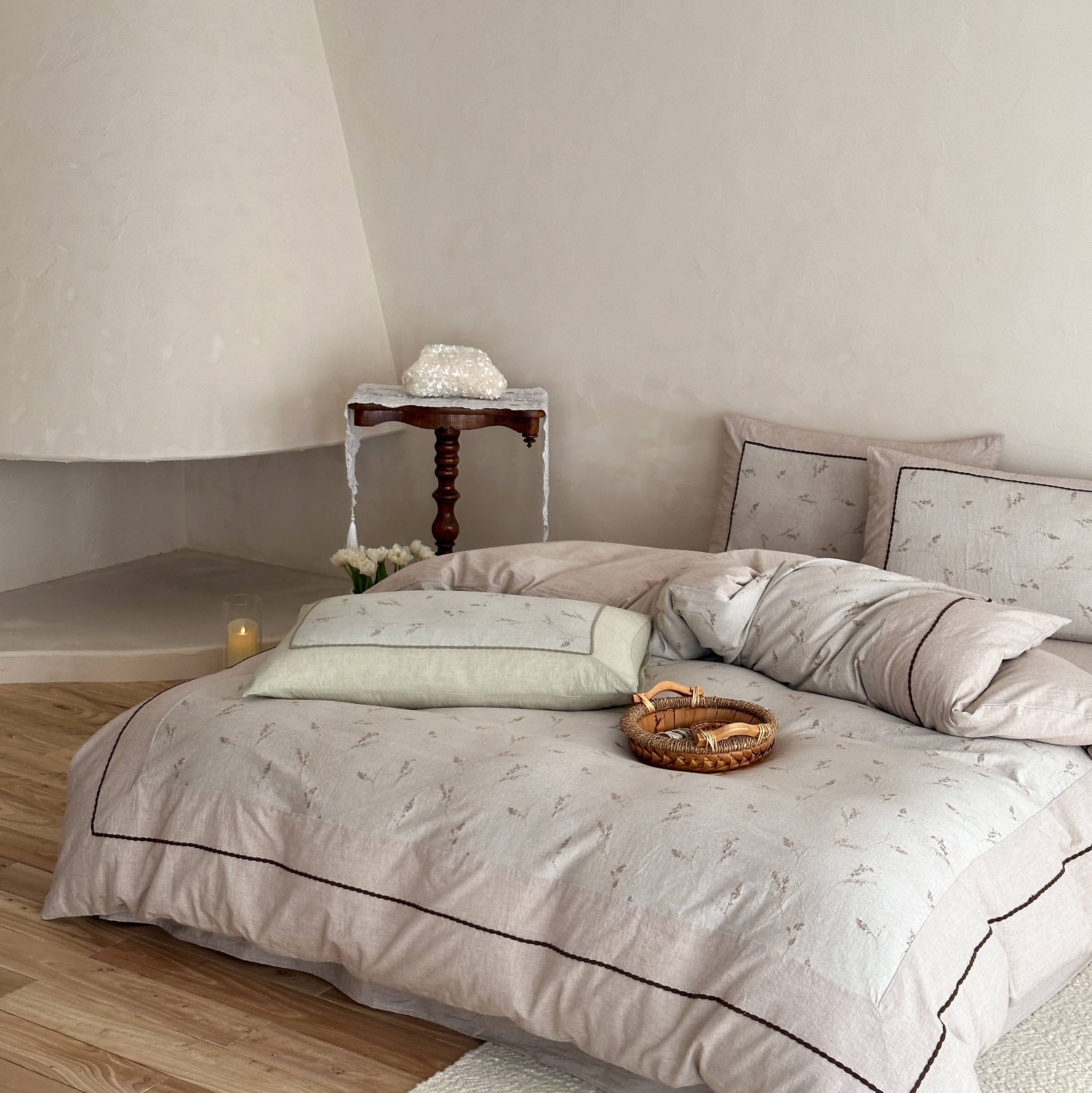当前位置: 91家纺网 > 商品网购 > 床品套件 > 四件套 > 全棉普通四件套 > 旷野 2026新款软糯亲肤简约提花四件套-木禾浅序系列 木禾浅序-青茉