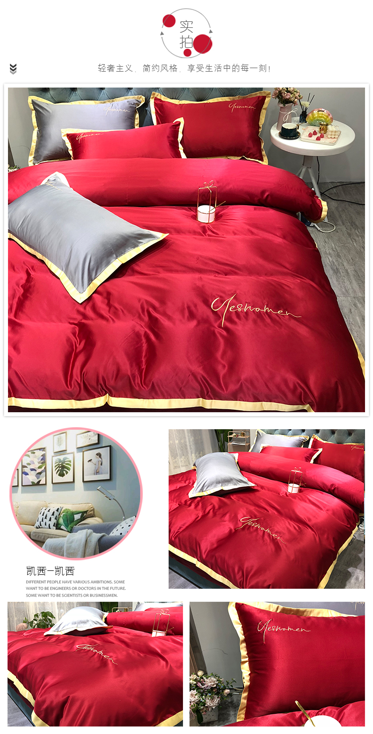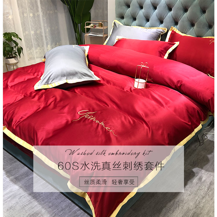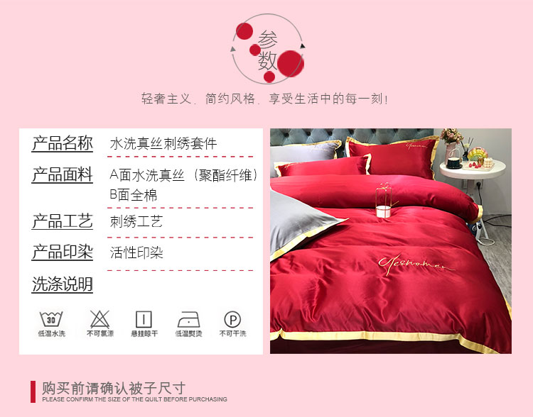 商品名称:安妮 2020新款水洗真丝凯茜四件套(实拍图)酒红