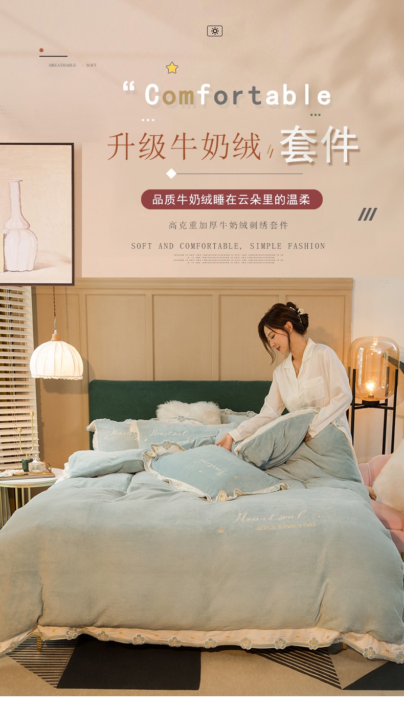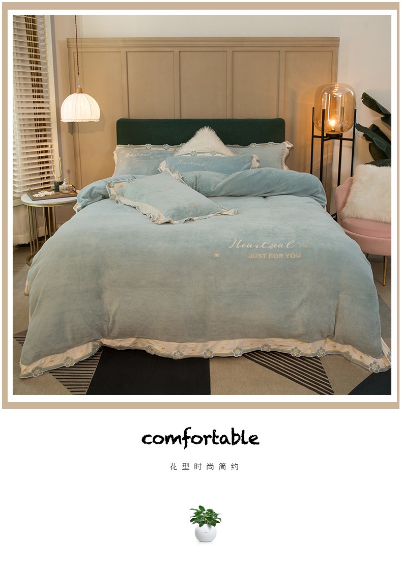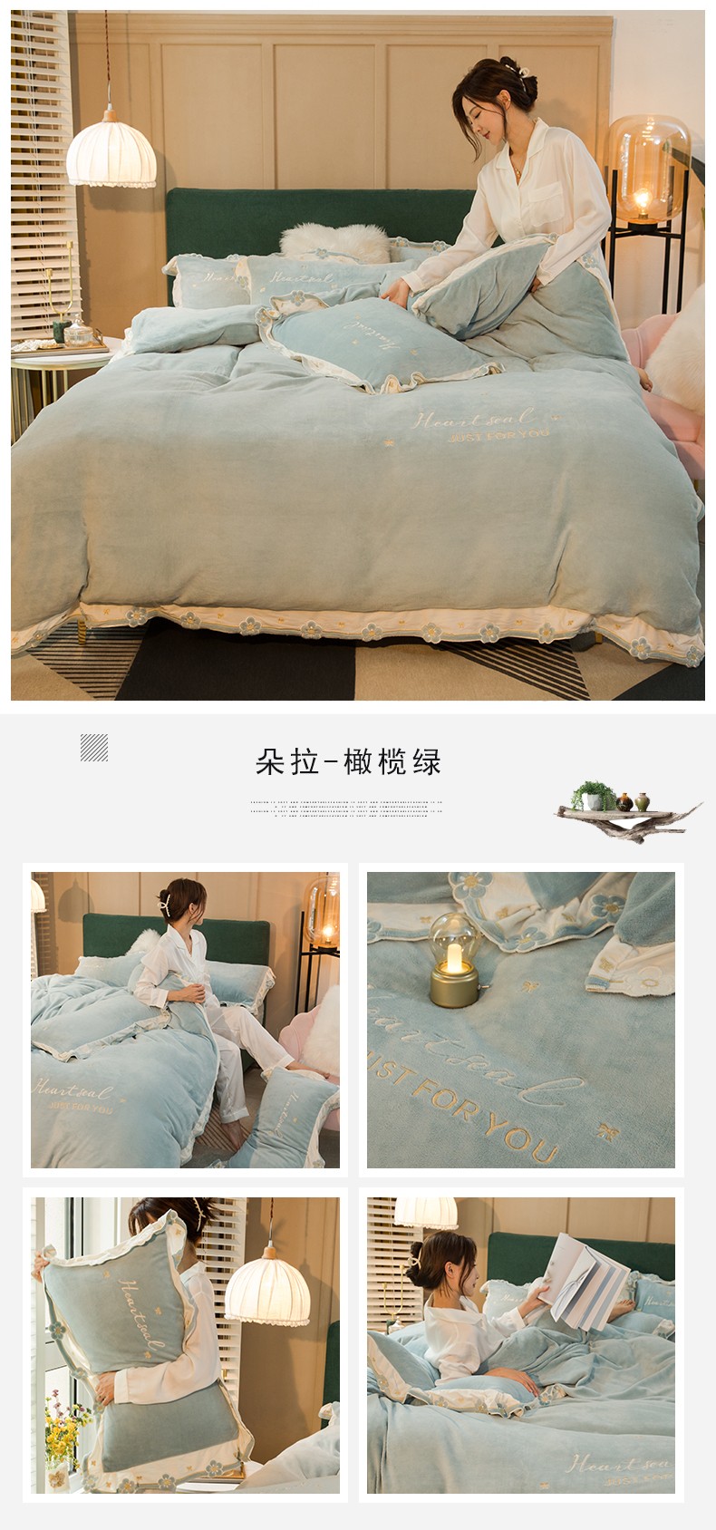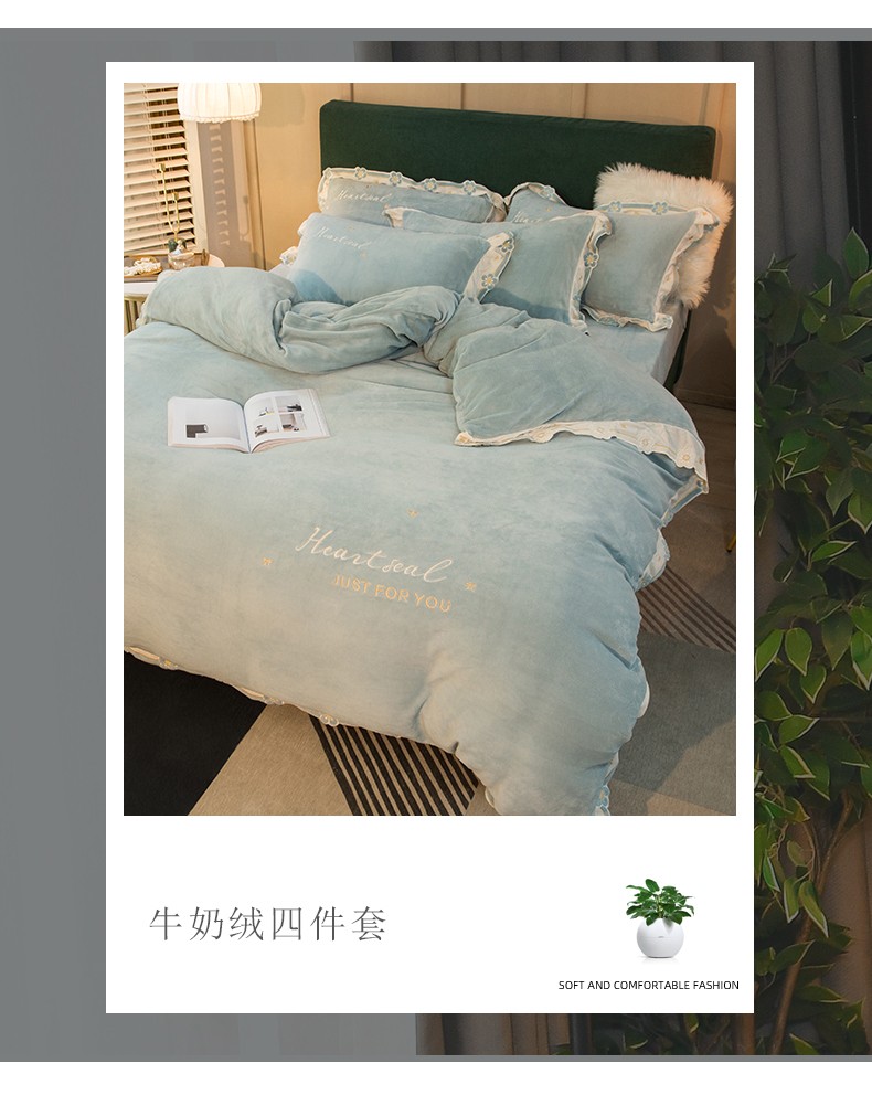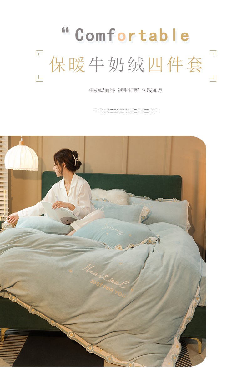 商品名称:安妮家居2022新款牛奶绒刺绣四件套-朵拉 橄榄绿