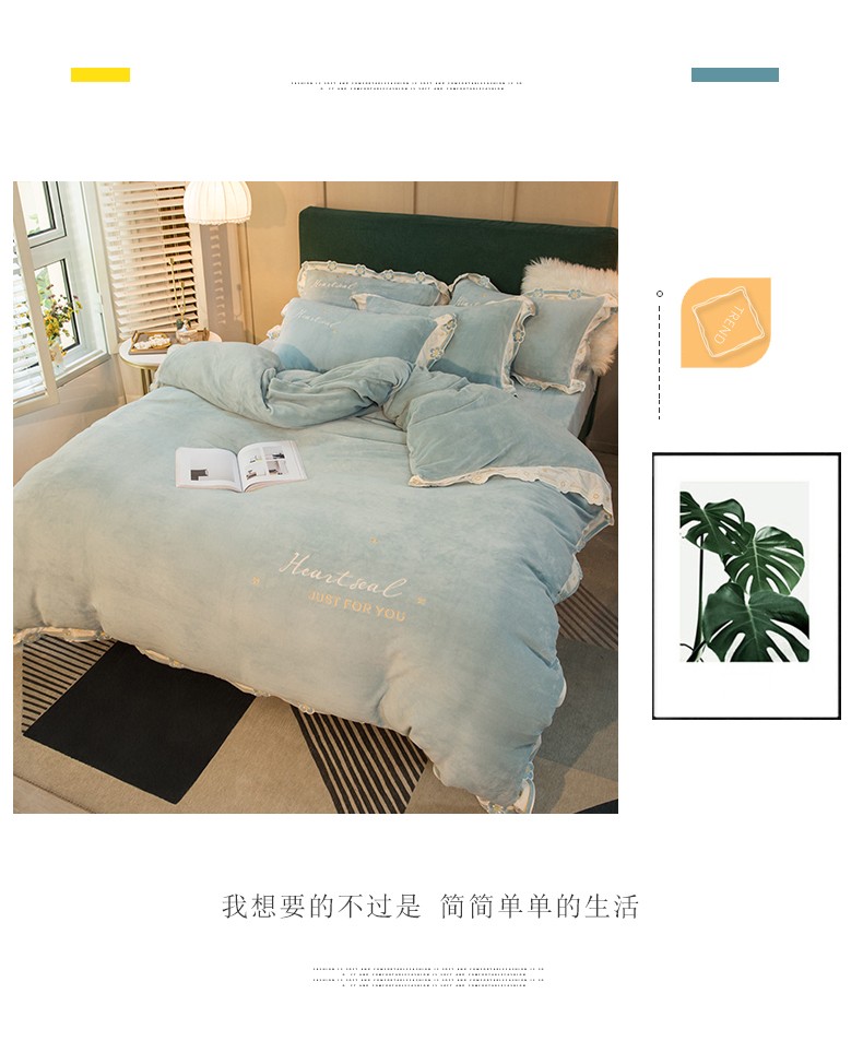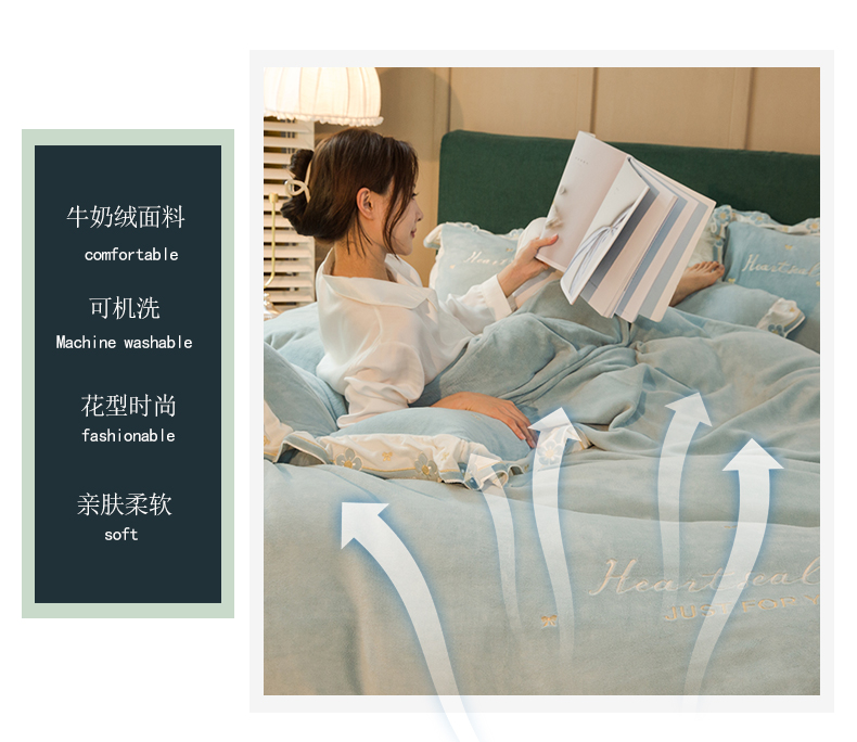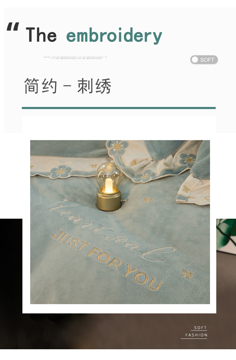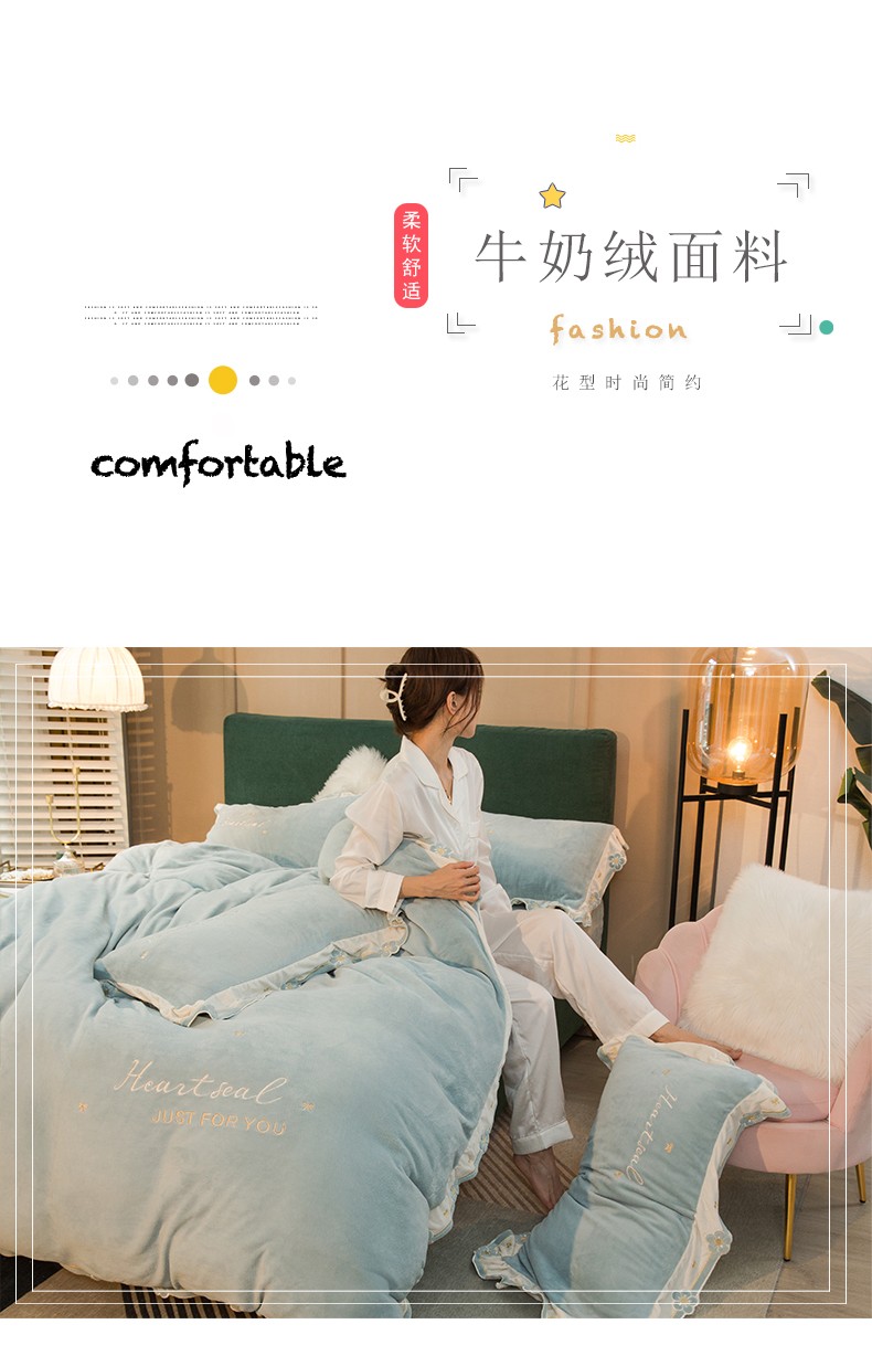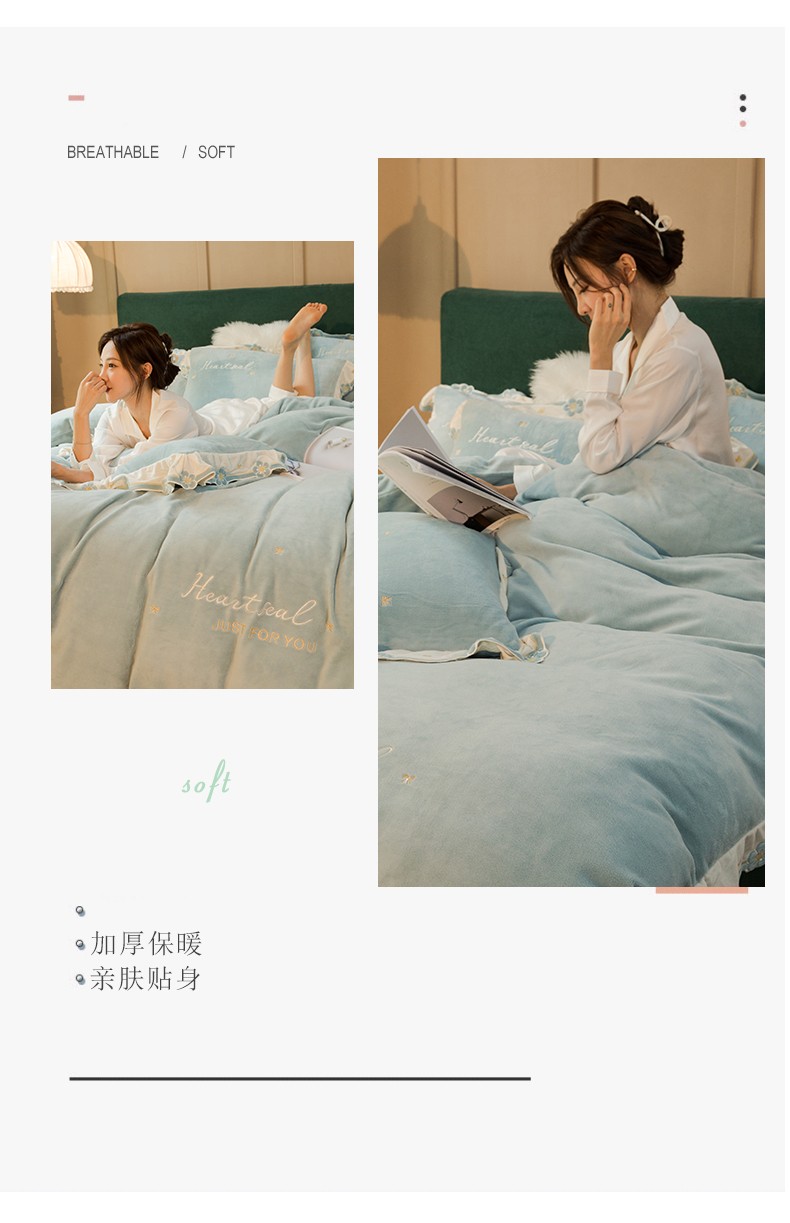 商品名称:安妮家居2022新款牛奶绒刺绣四件套-朵拉 橄榄绿