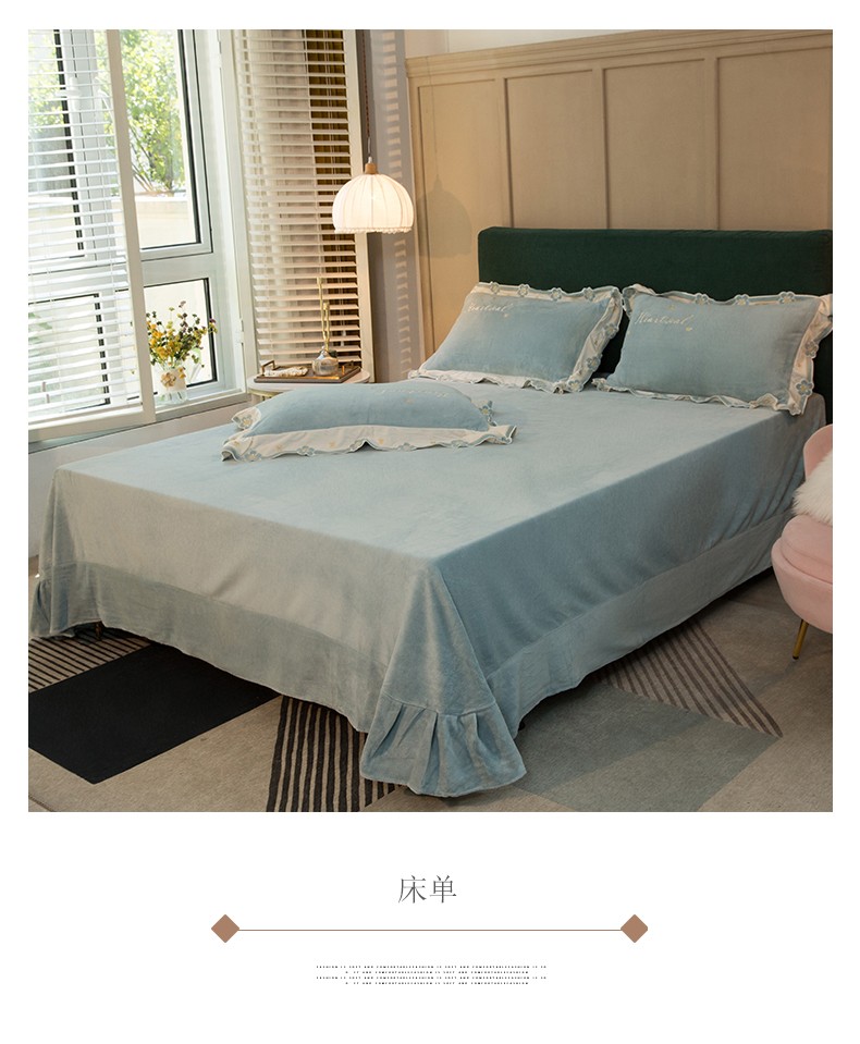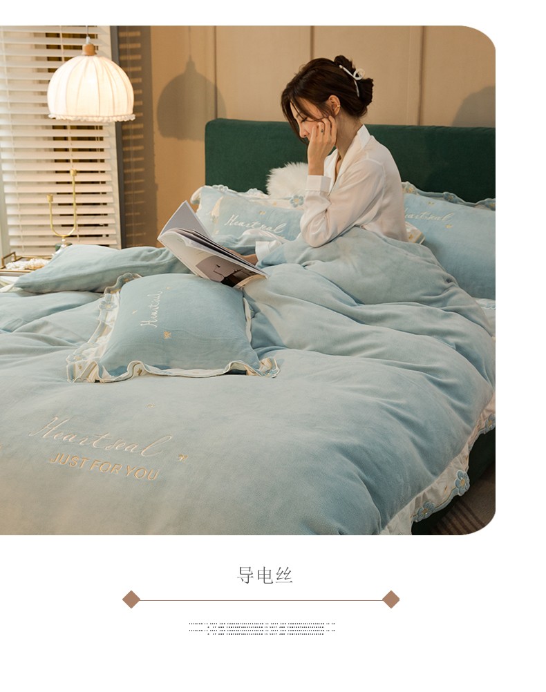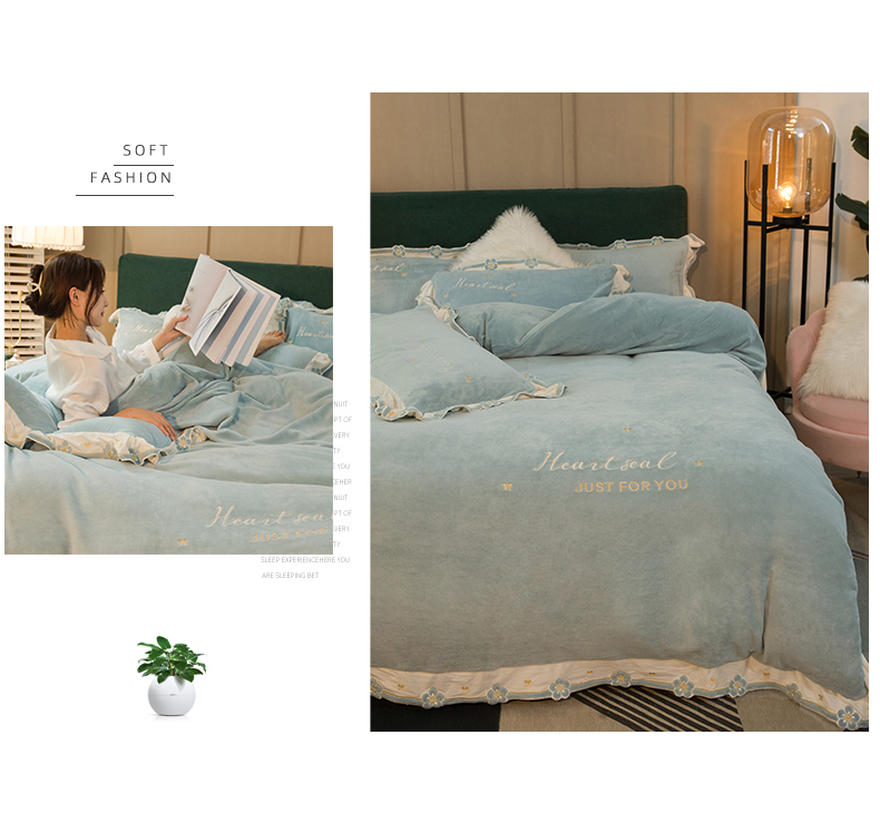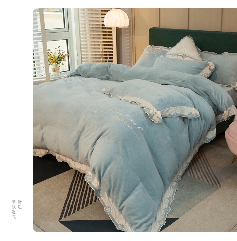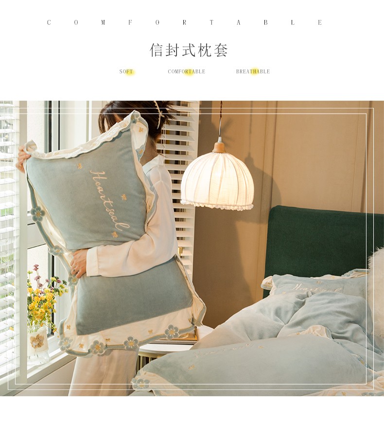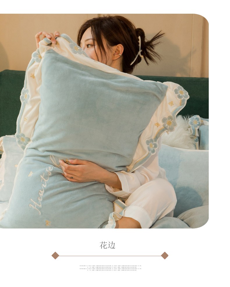 商品名称:安妮家居2022新款牛奶绒刺绣四件套-朵拉 橄榄绿